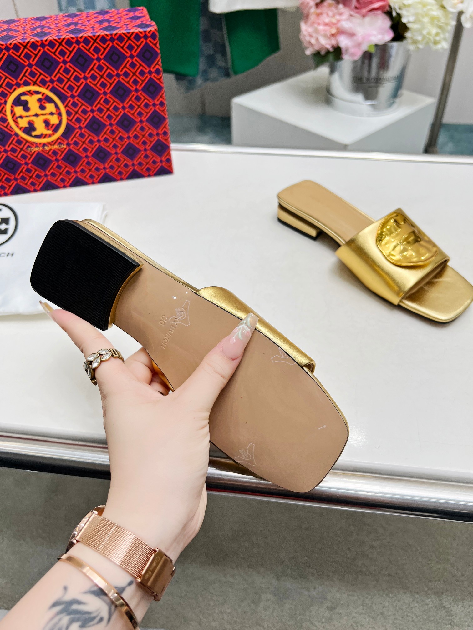 This shoes is AAAAA 1:1 quality (superb). Materials used are identical to the original ones. Tory Burch trademark marks are indistinguishable to the authentic. Photos take by actual shoes, what you receive will be 100% same with our photos.