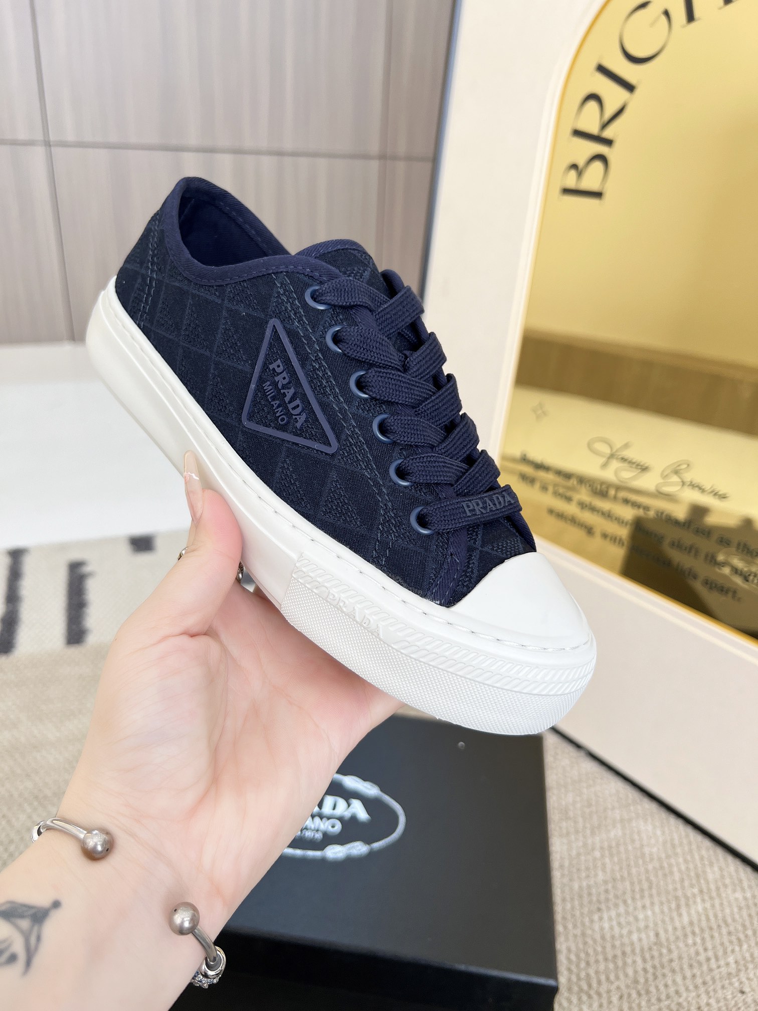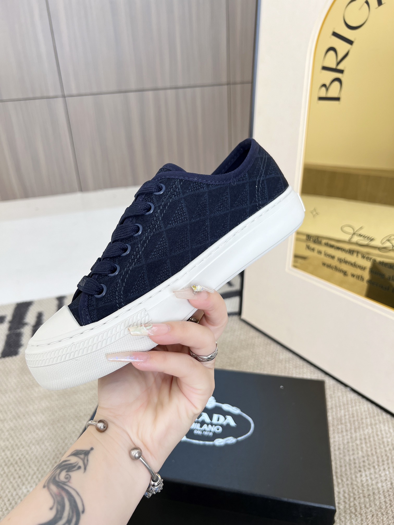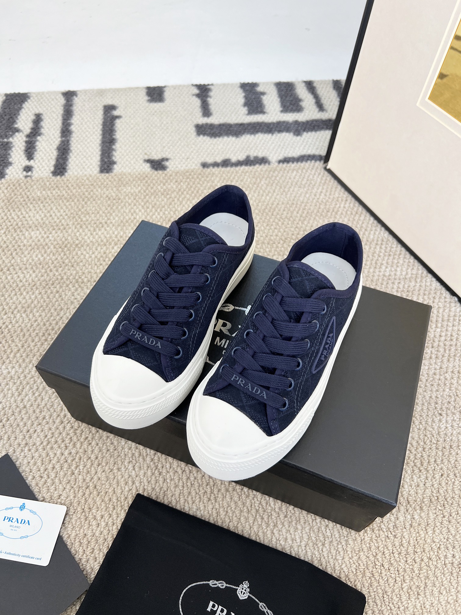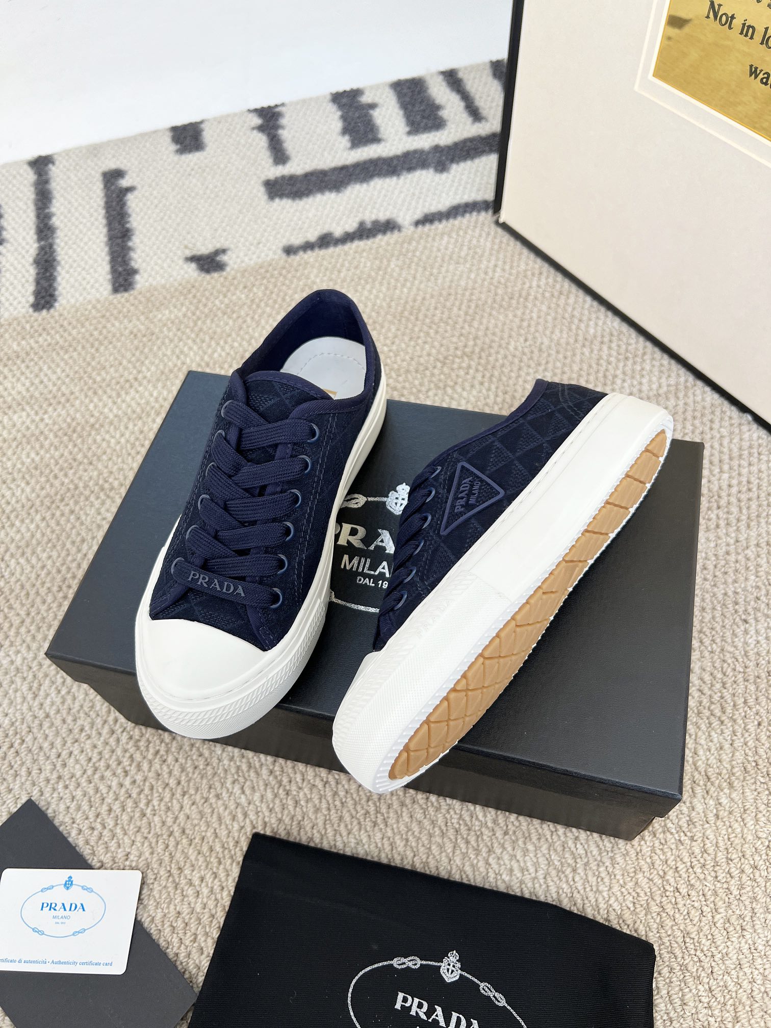 This shoes is AAAAA 1:1 quality (superb). Materials used are identical to the original ones. Prada trademark marks are indistinguishable to the authentic. Photos take by actual shoes, what you receive will be 100% same with our photos.