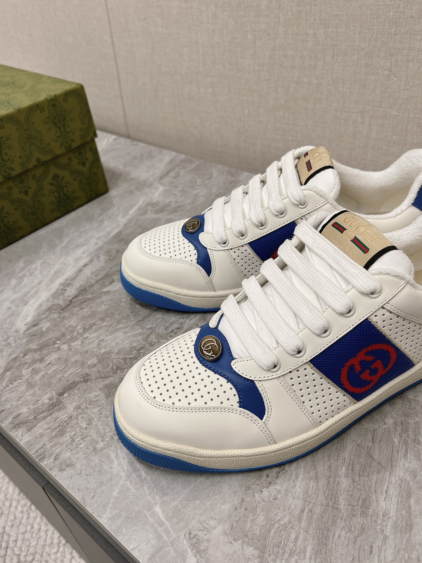 This shoes is AAAAA 1:1 quality (superb). Materials used are identical to the original ones. Gucci trademark marks are indistinguishable to the authentic. Photos take by actual shoes, what you receive will be 100% same with our photos.