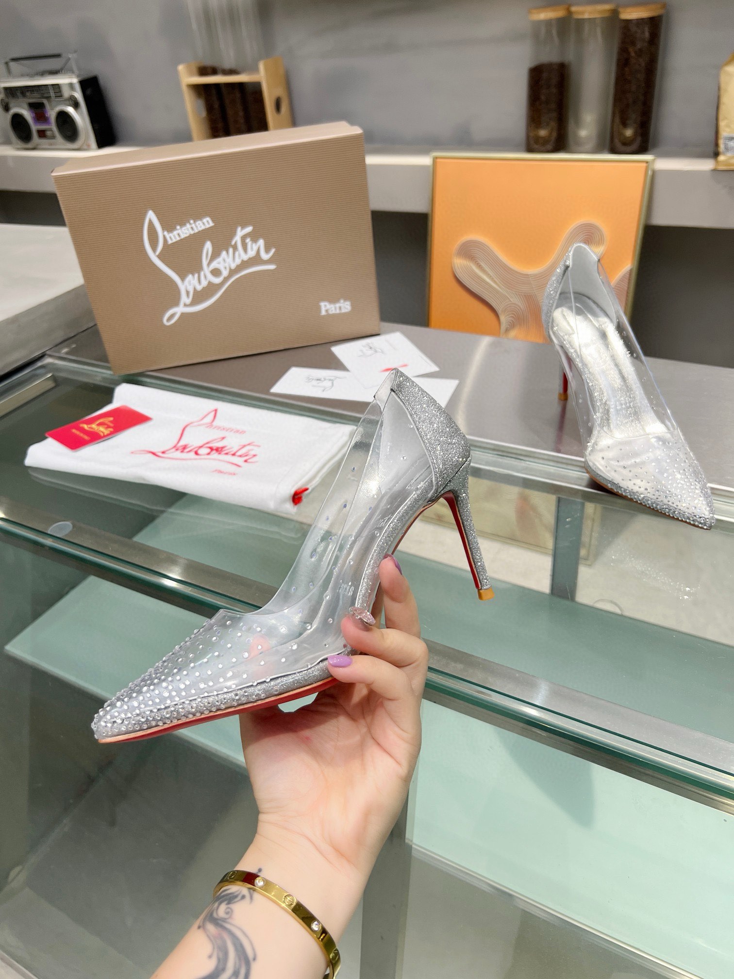 NO:1424995. The shoes is from Christian Louboutin designer.