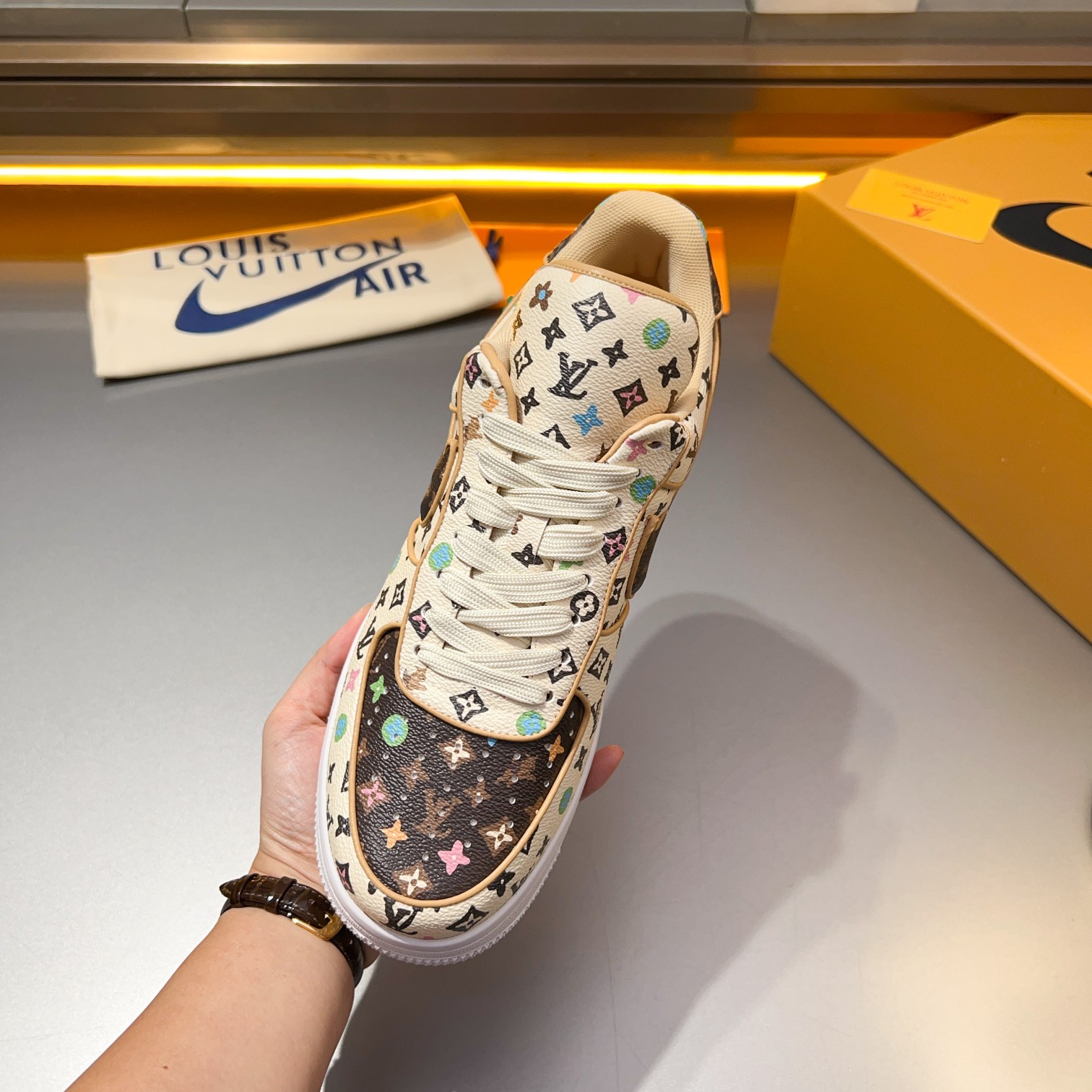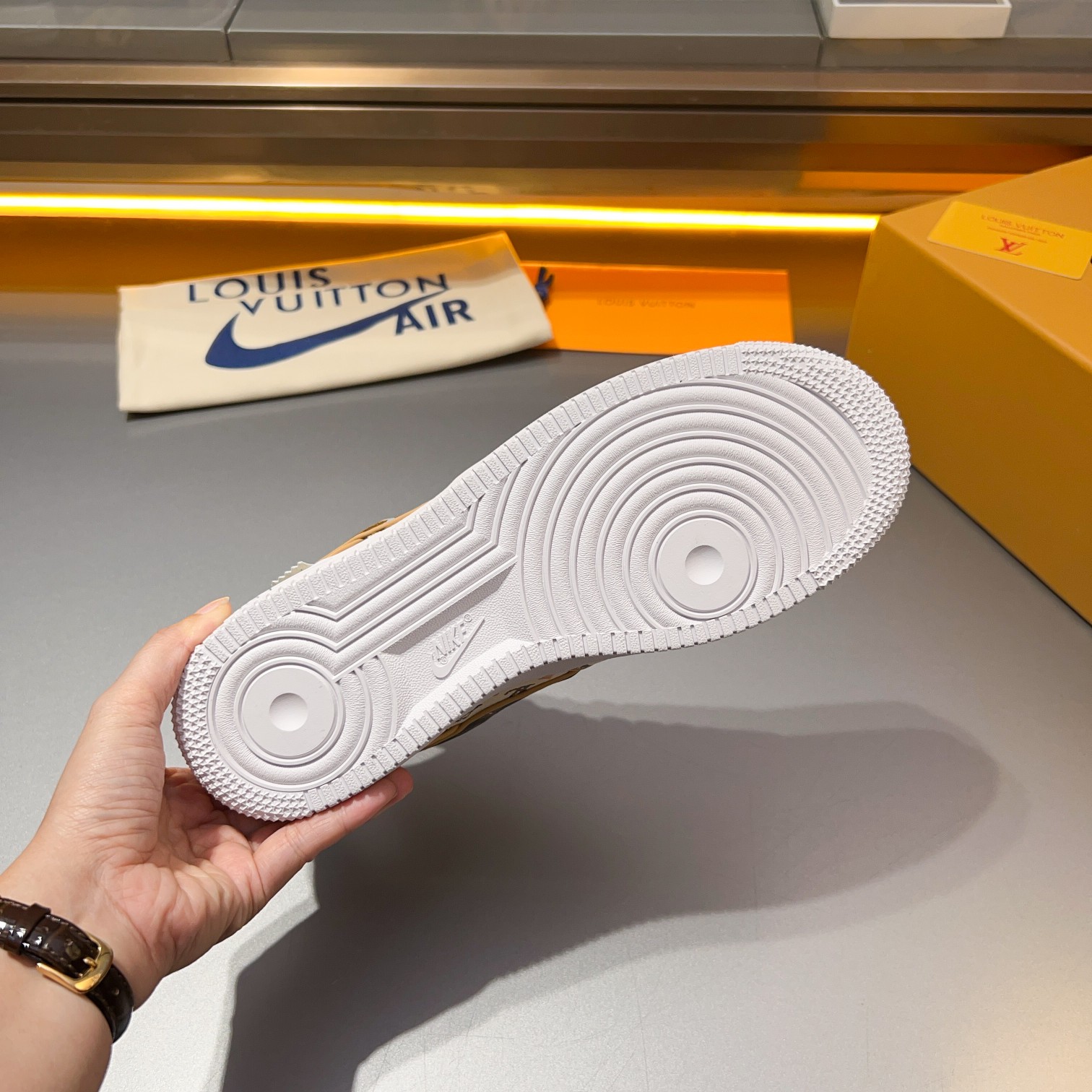 This shoes is AAAAA 1:1 quality (superb). Materials used are identical to the original ones. Louis Vuitton trademark marks are indistinguishable to the authentic. Photos take by actual shoes, what you receive will be 100% same with our photos.