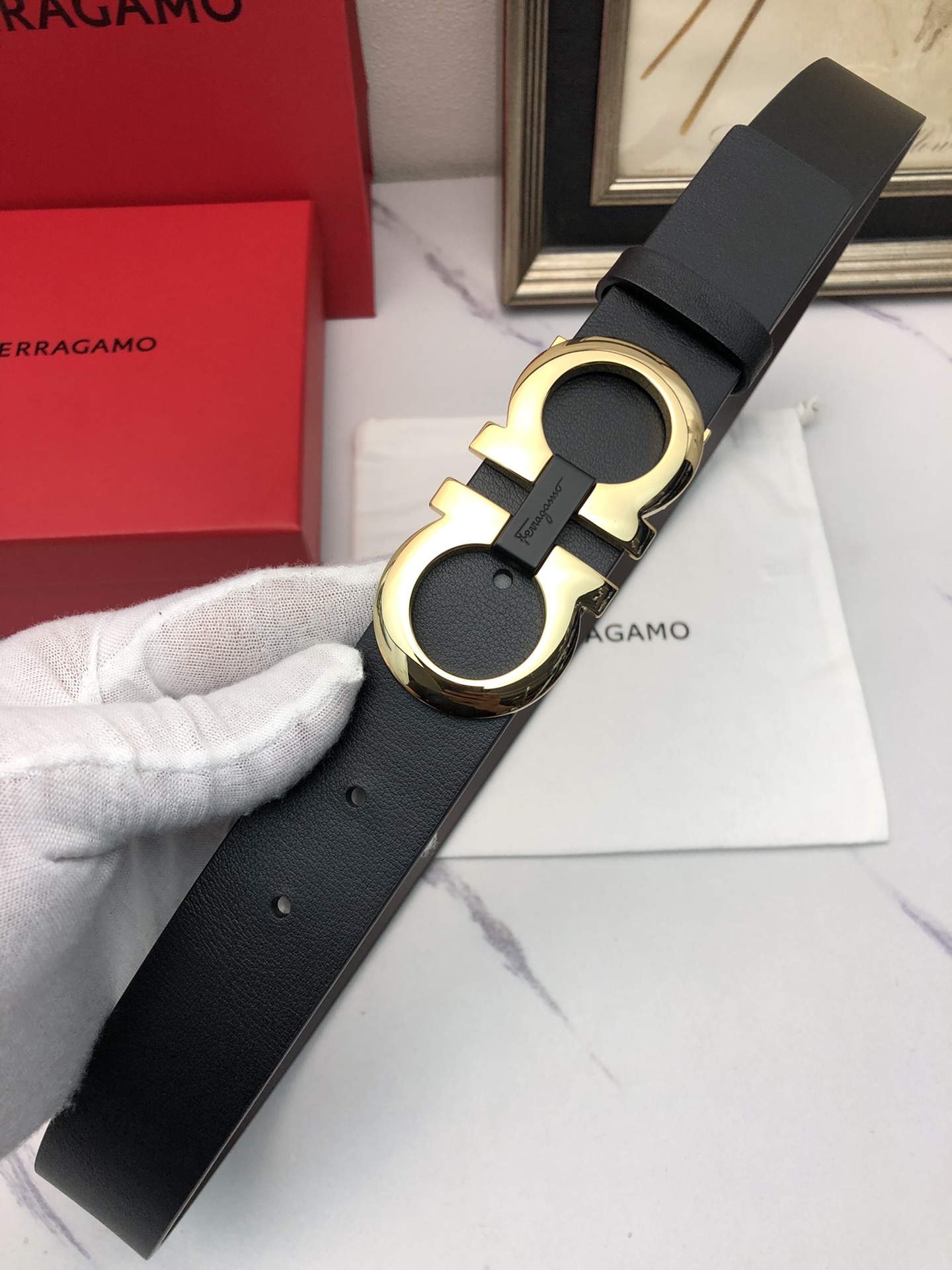 This belt is AAAAA 1:1 quality (superb). Materials used are identical to the original ones. Salvatore Ferragamo trademark marks are indistinguishable to the authentic. Photos take by actual belt, what you receive will be 100% same with our photos.