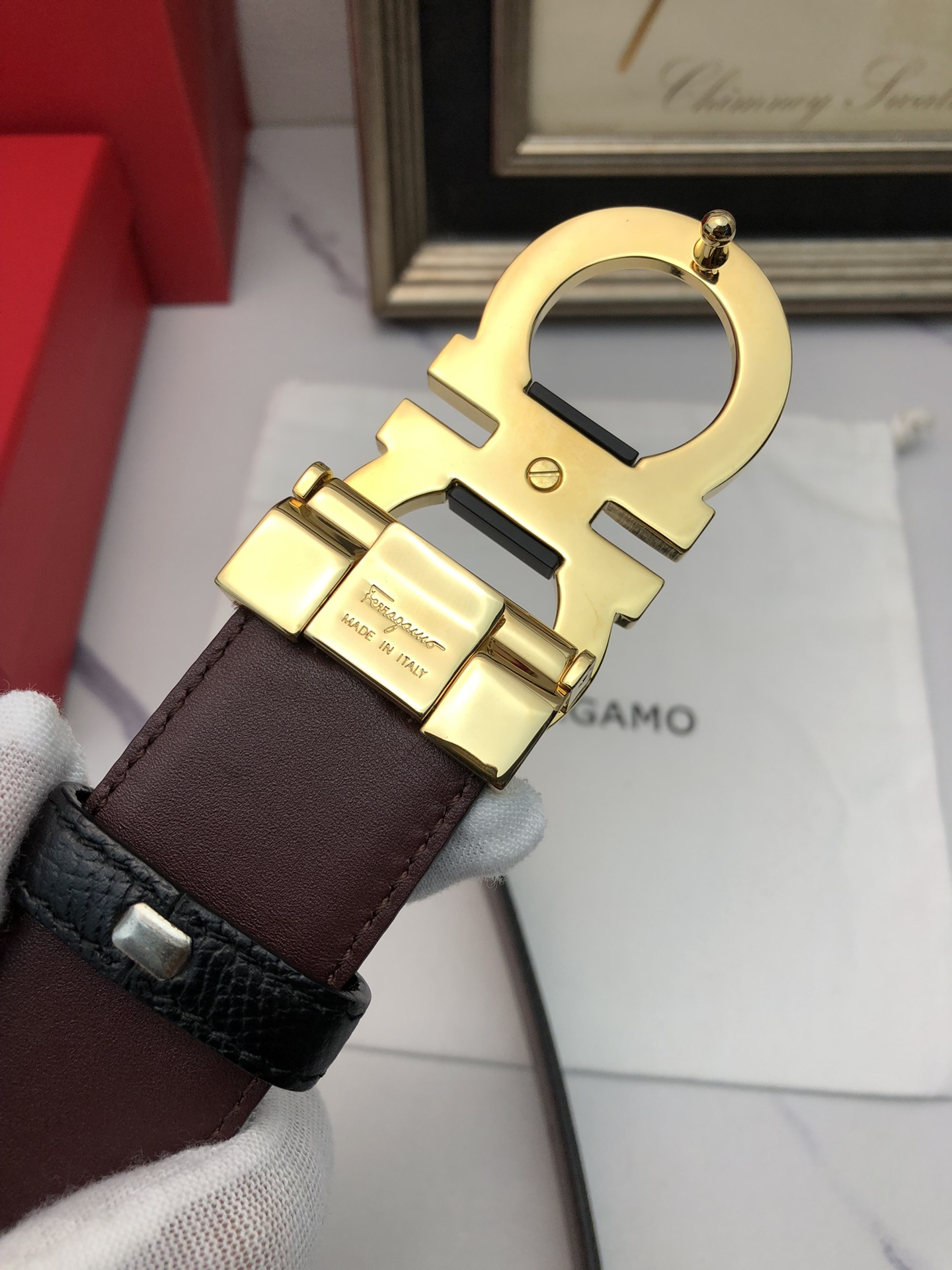 This belt is AAAAA 1:1 quality (superb). Materials used are identical to the original ones. Salvatore Ferragamo trademark marks are indistinguishable to the authentic. Photos take by actual belt, what you receive will be 100% same with our photos.