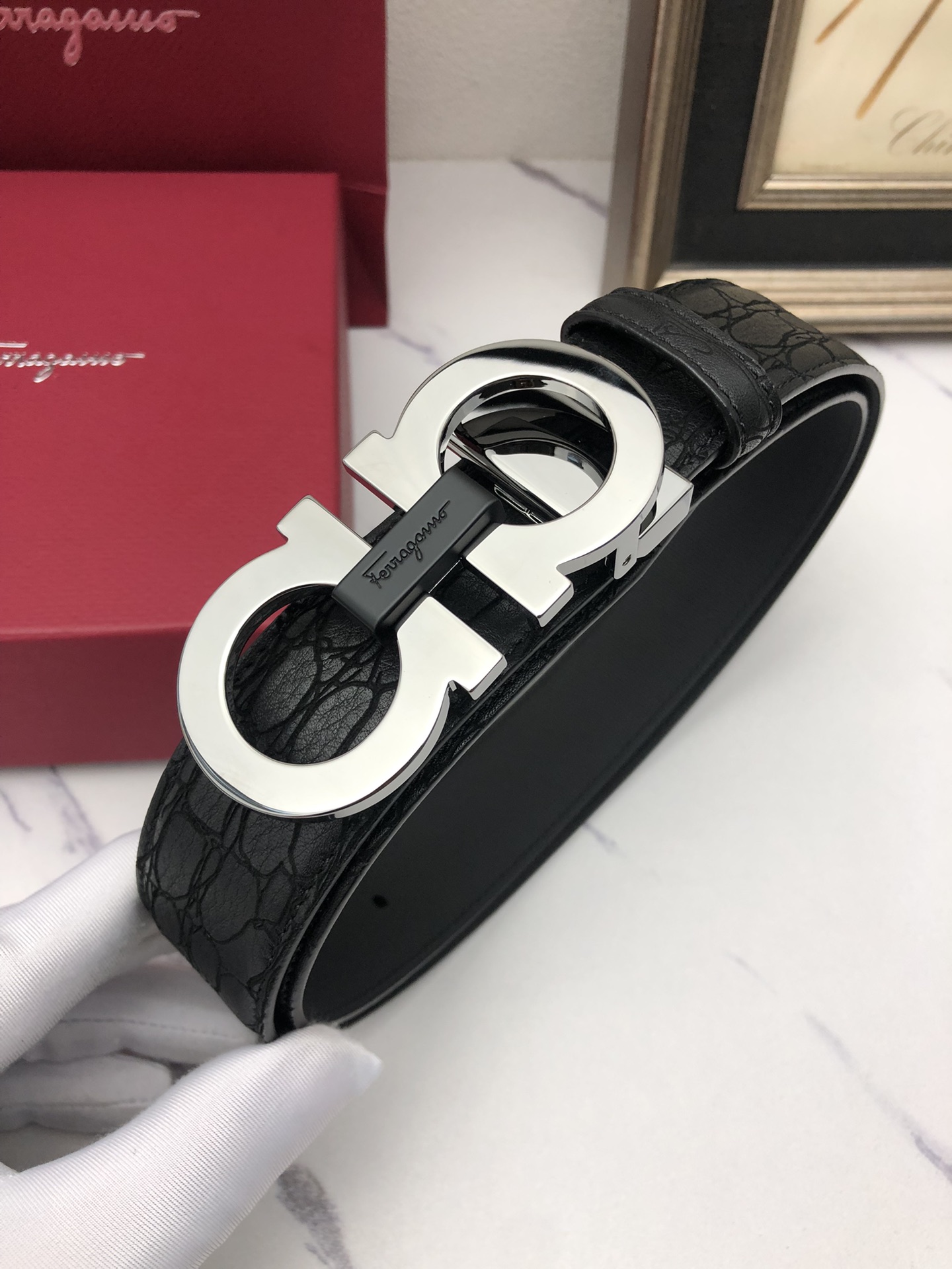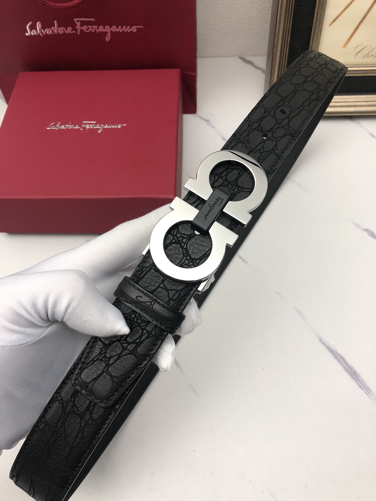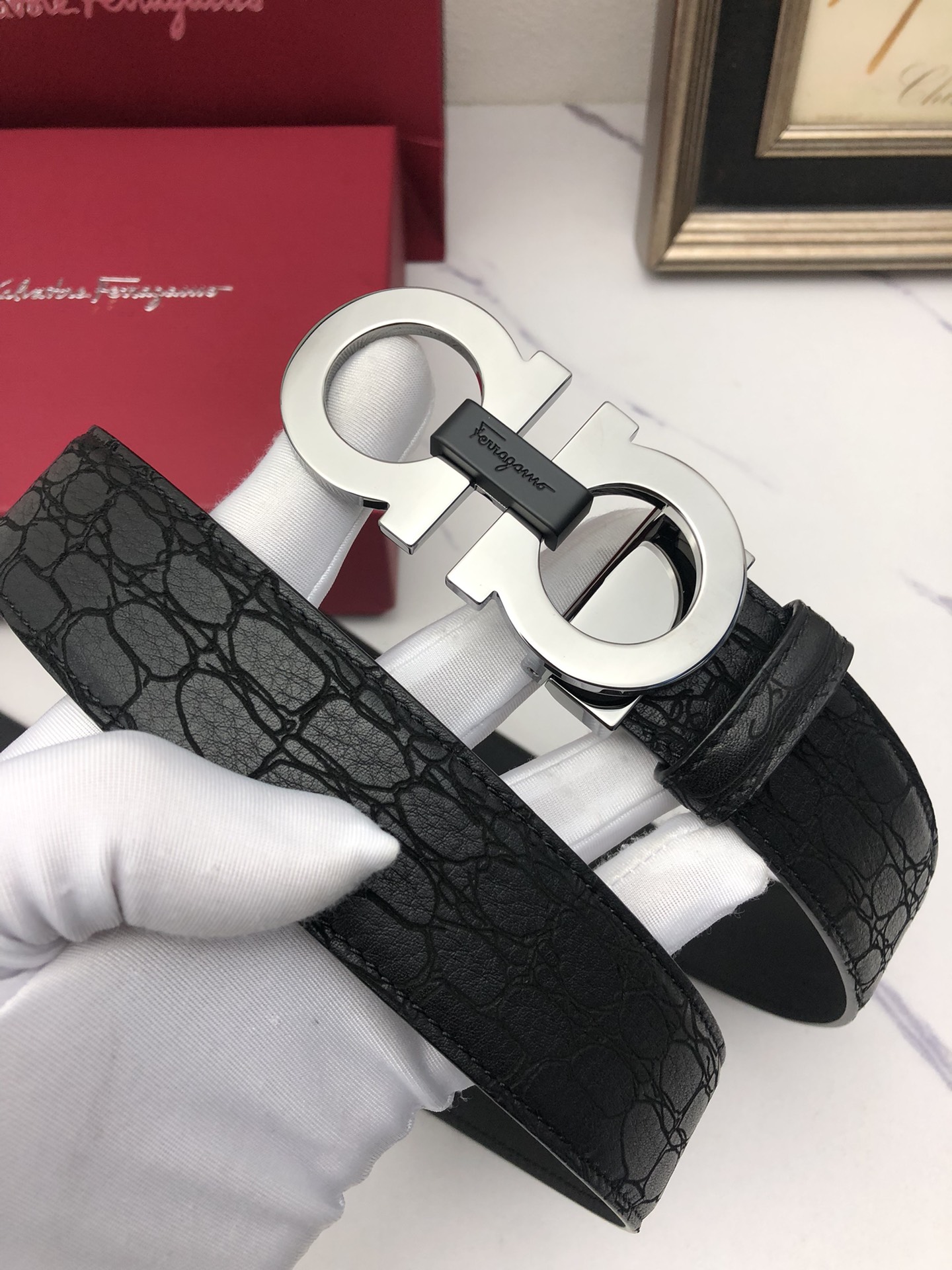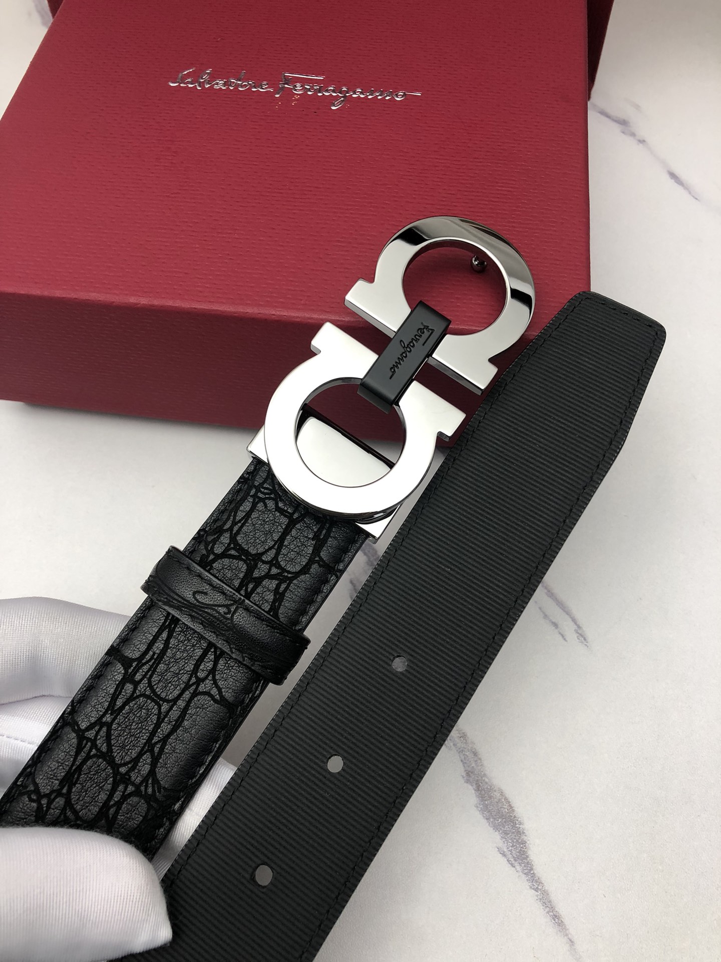 This belt is AAAAA 1:1 quality (superb). Materials used are identical to the original ones. Salvatore Ferragamo trademark marks are indistinguishable to the authentic. Photos take by actual belt, what you receive will be 100% same with our photos.