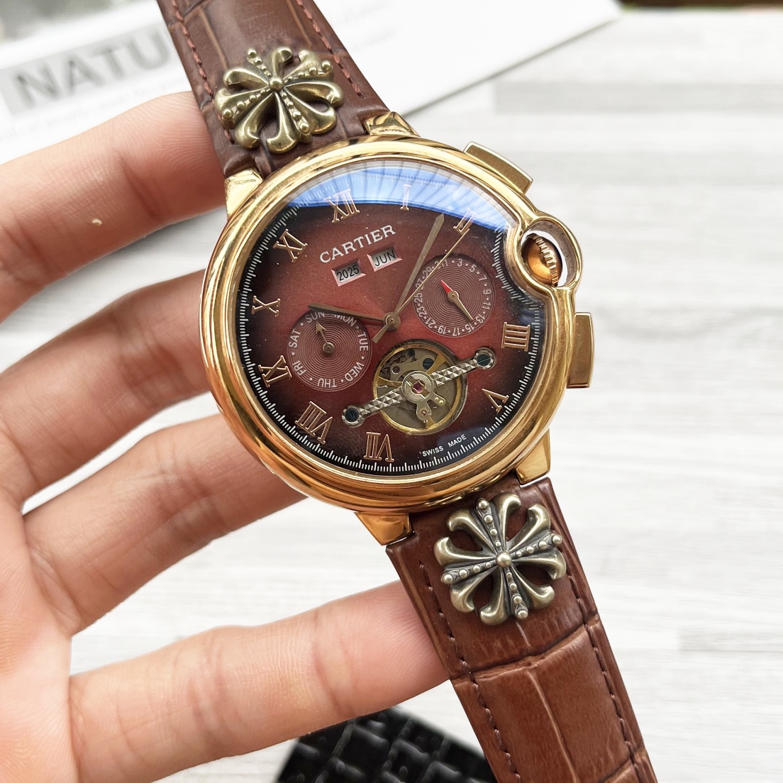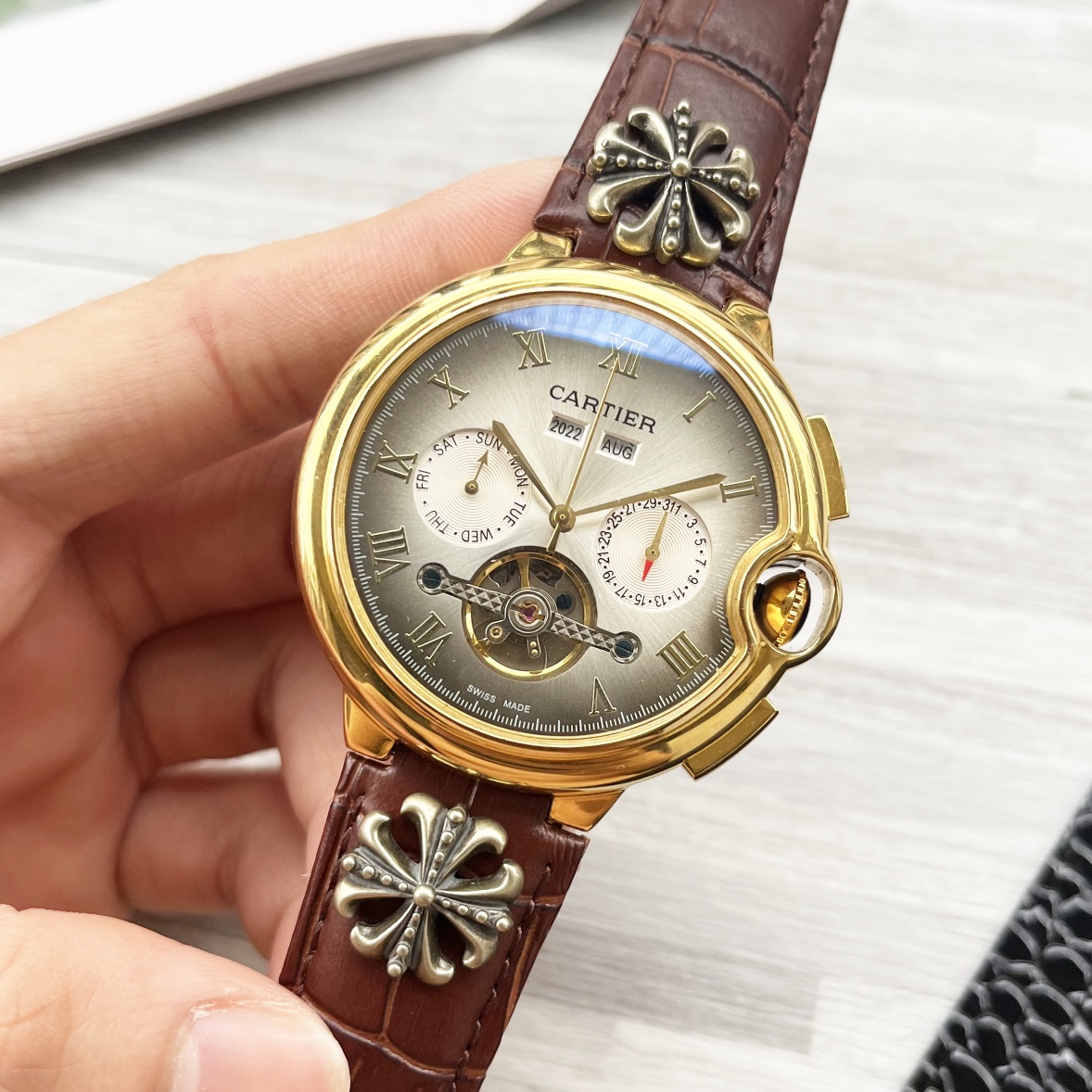 This watches is AAAAA 1:1 quality (superb). Materials used are identical to the original ones. Cartier trademark marks are indistinguishable to the authentic. Photos take by actual watches, what you receive will be 100% same with our photos.