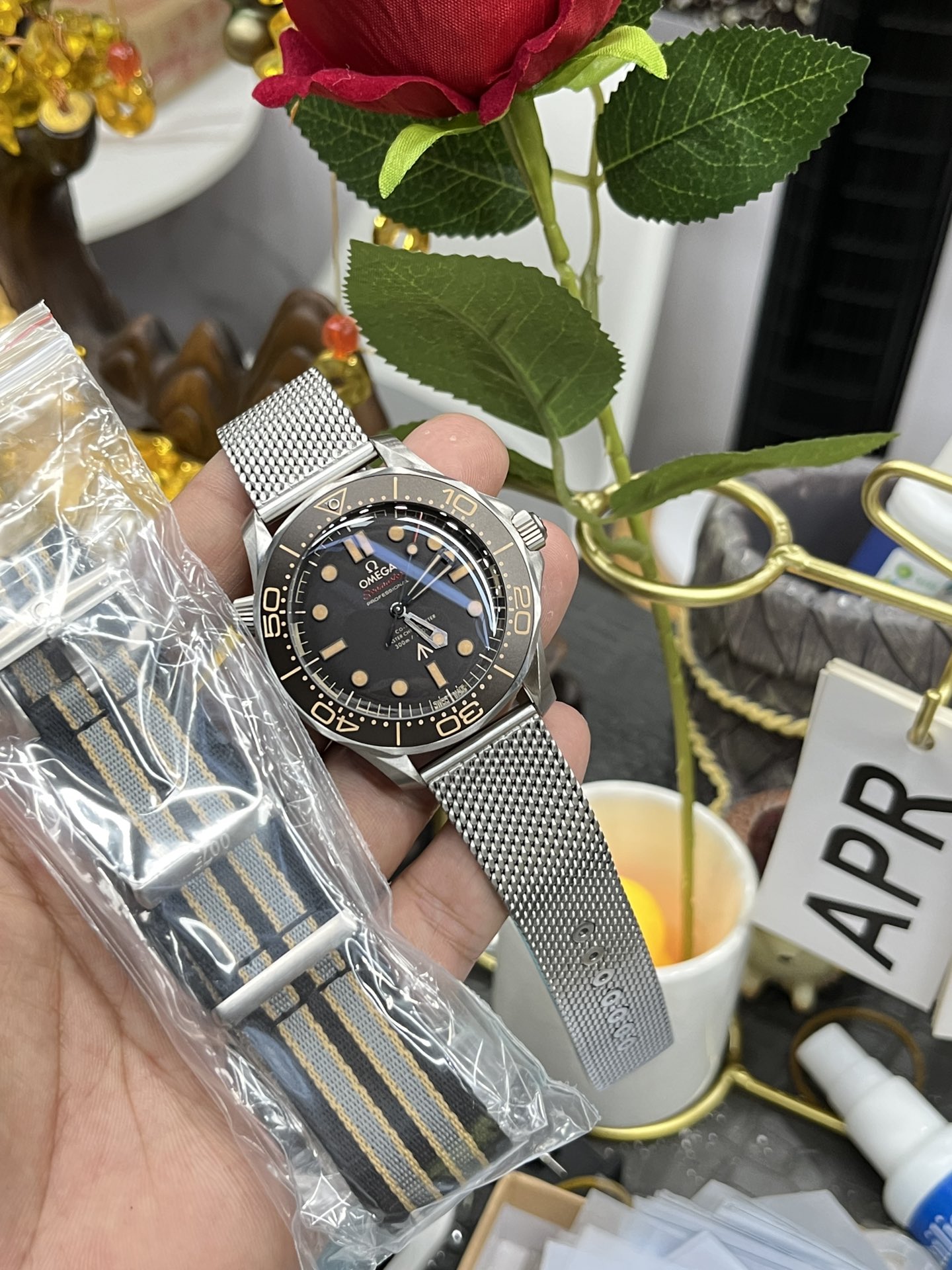 This watches is AAAAA 1:1 quality (superb). Materials used are identical to the original ones. Omega trademark marks are indistinguishable to the authentic. Photos take by actual watches, what you receive will be 100% same with our photos.