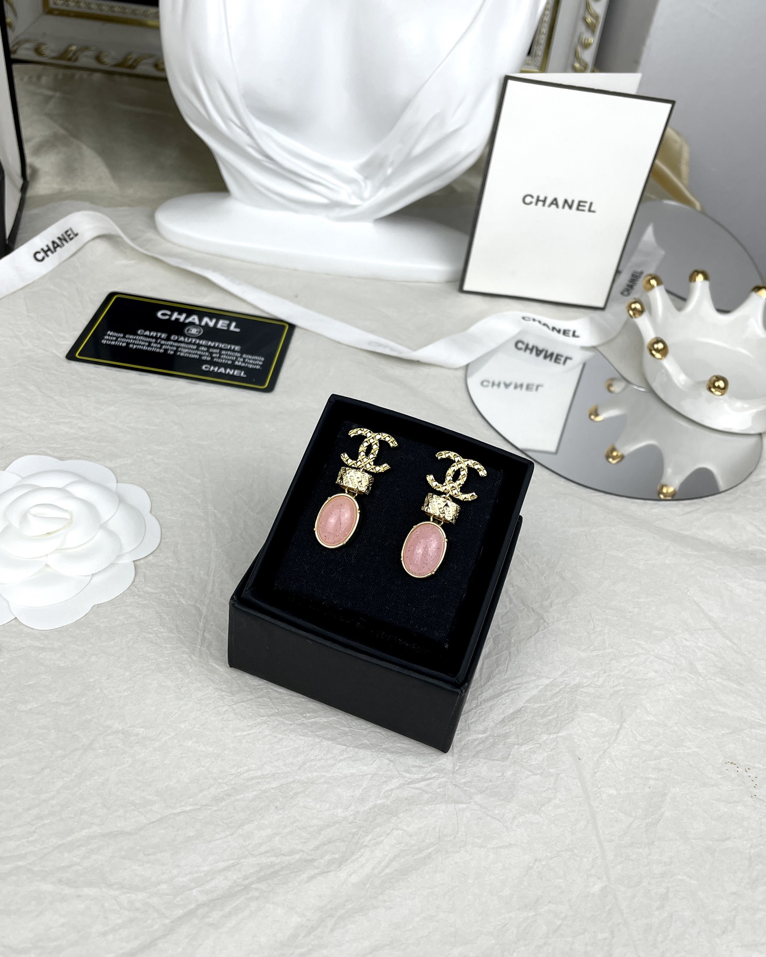 This jewelry is AAAAA 1:1 quality (superb). Materials used are identical to the original ones. Chanel trademark marks are indistinguishable to the authentic. Photos take by actual jewelry, what you receive will be 100% same with our photos.