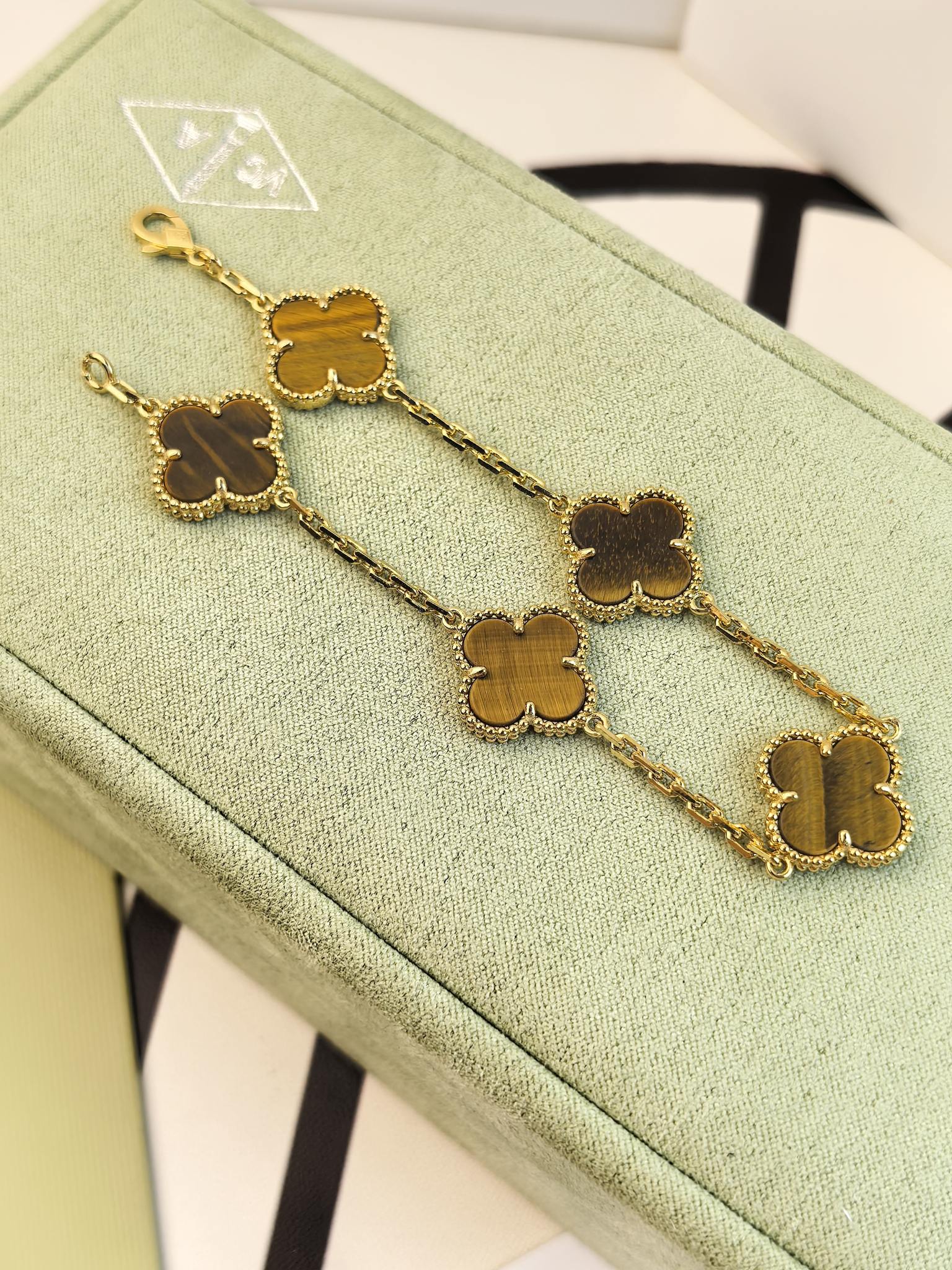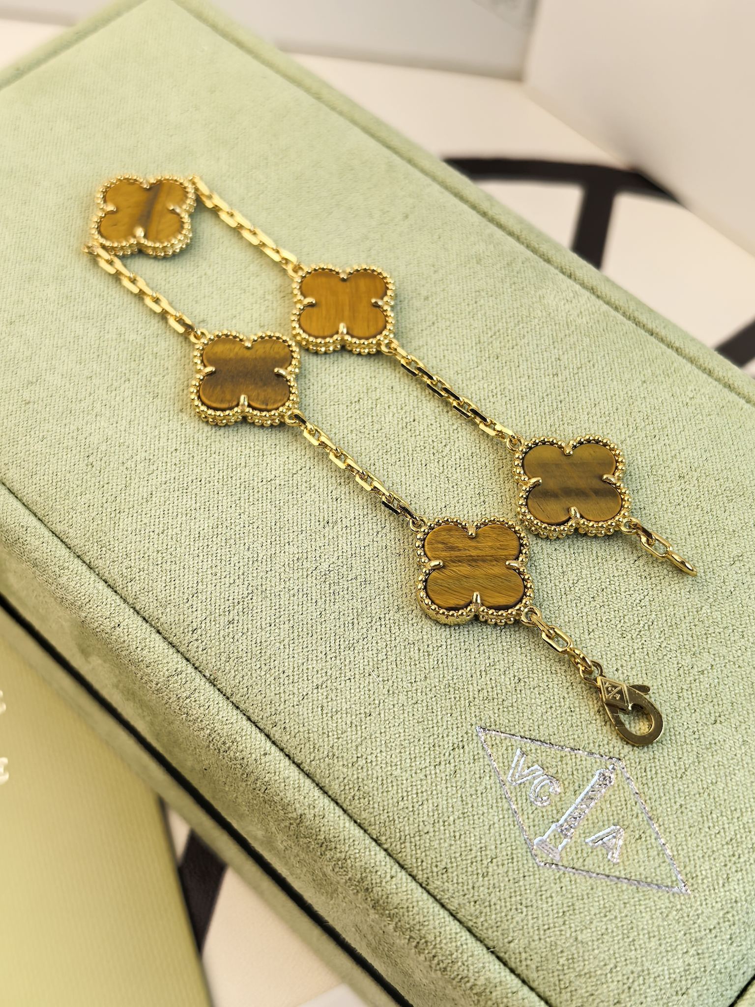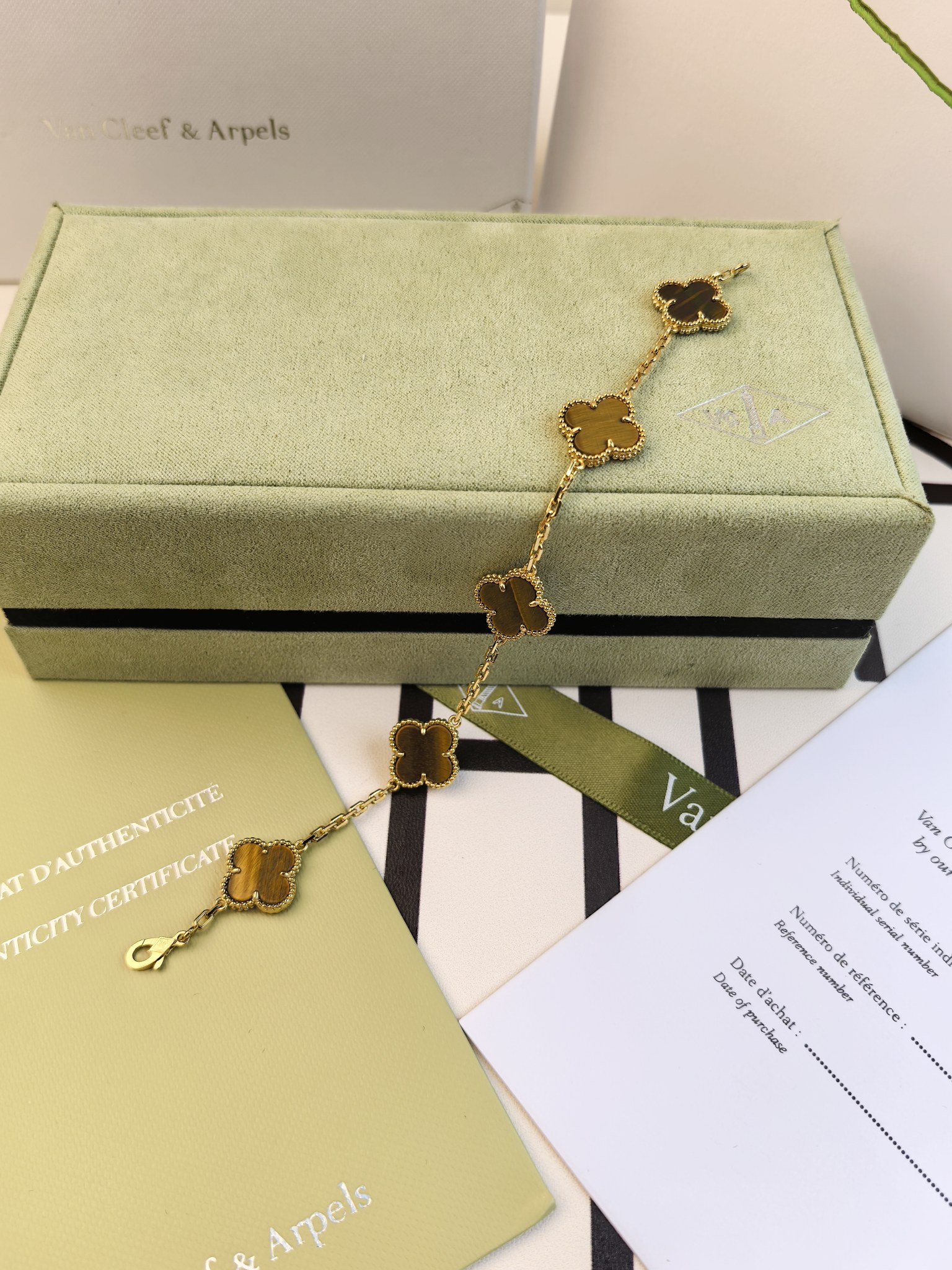 This jewelry is AAAAA 1:1 quality (superb). Materials used are identical to the original ones. Van Cleef & Arpels trademark marks are indistinguishable to the authentic. Photos take by actual jewelry, what you receive will be 100% same with our photos.
