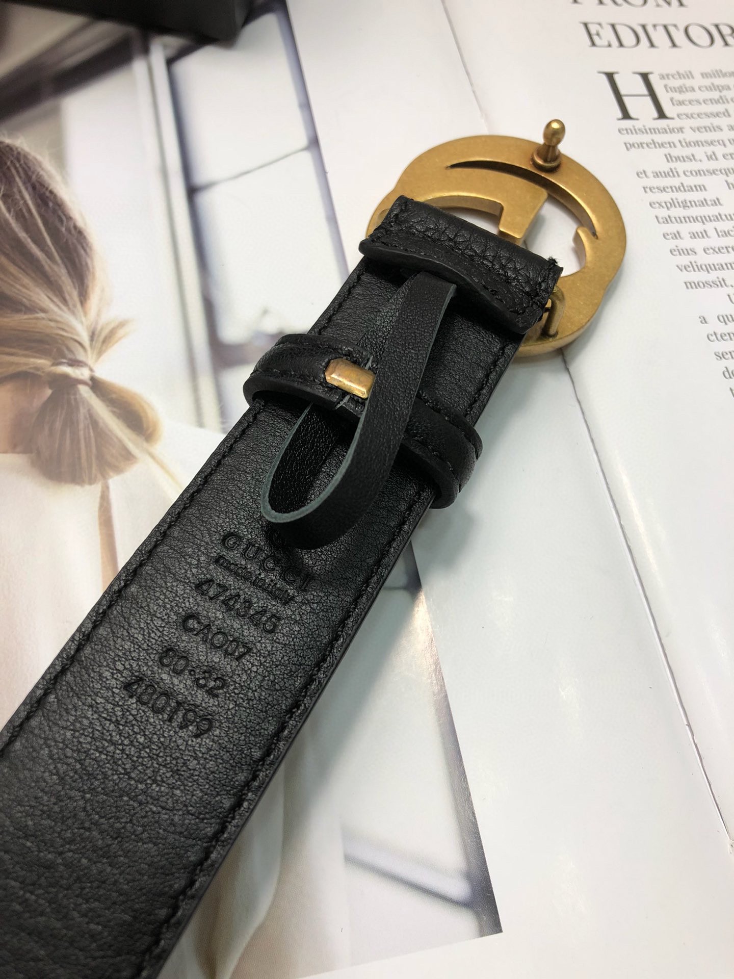 NO:1628774. The belt is from Gucci designer.