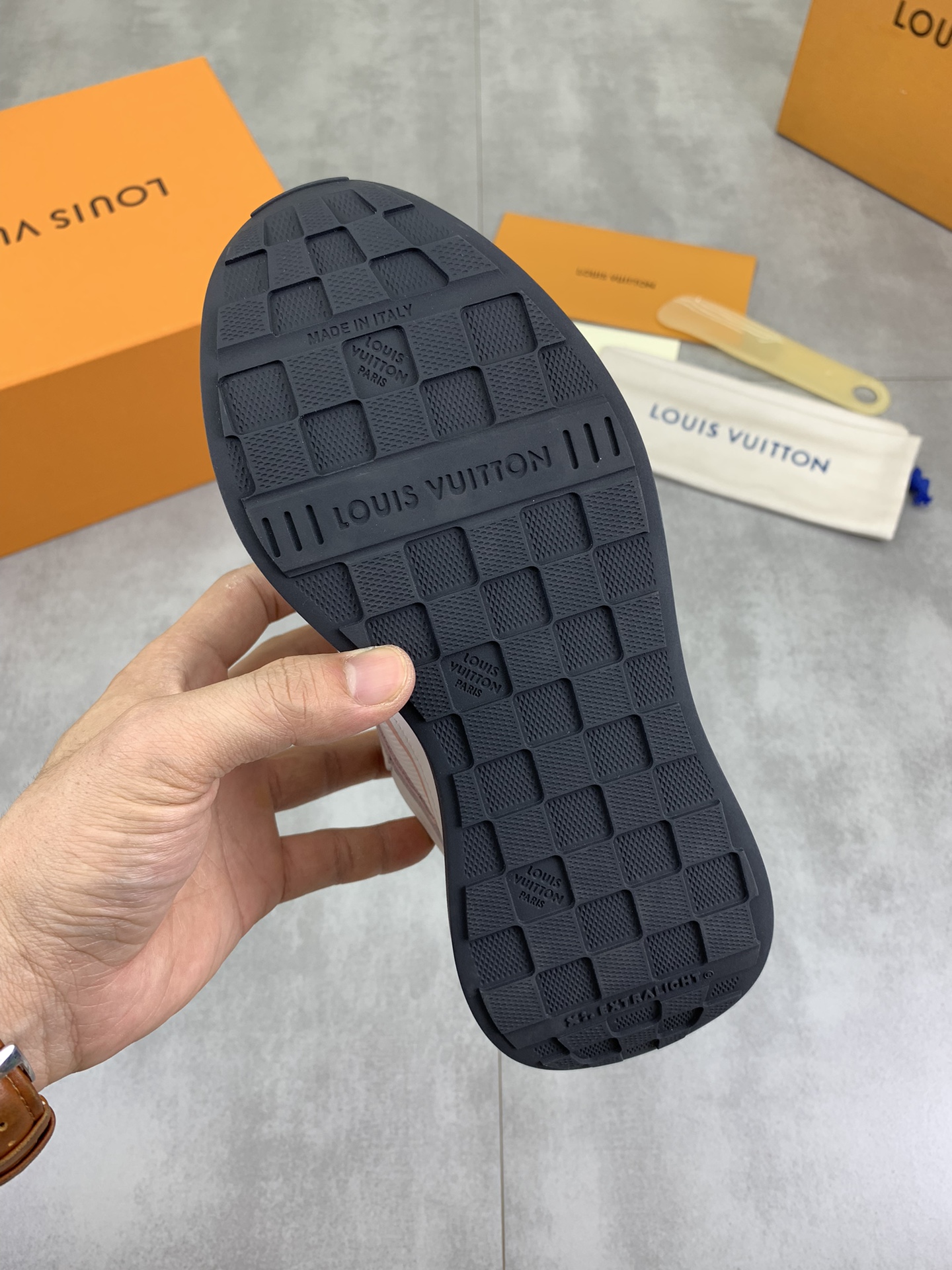 This shoes is AAAAA 1:1 quality (superb). Materials used are identical to the original ones. Louis Vuitton trademark marks are indistinguishable to the authentic. Photos take by actual shoes, what you receive will be 100% same with our photos.