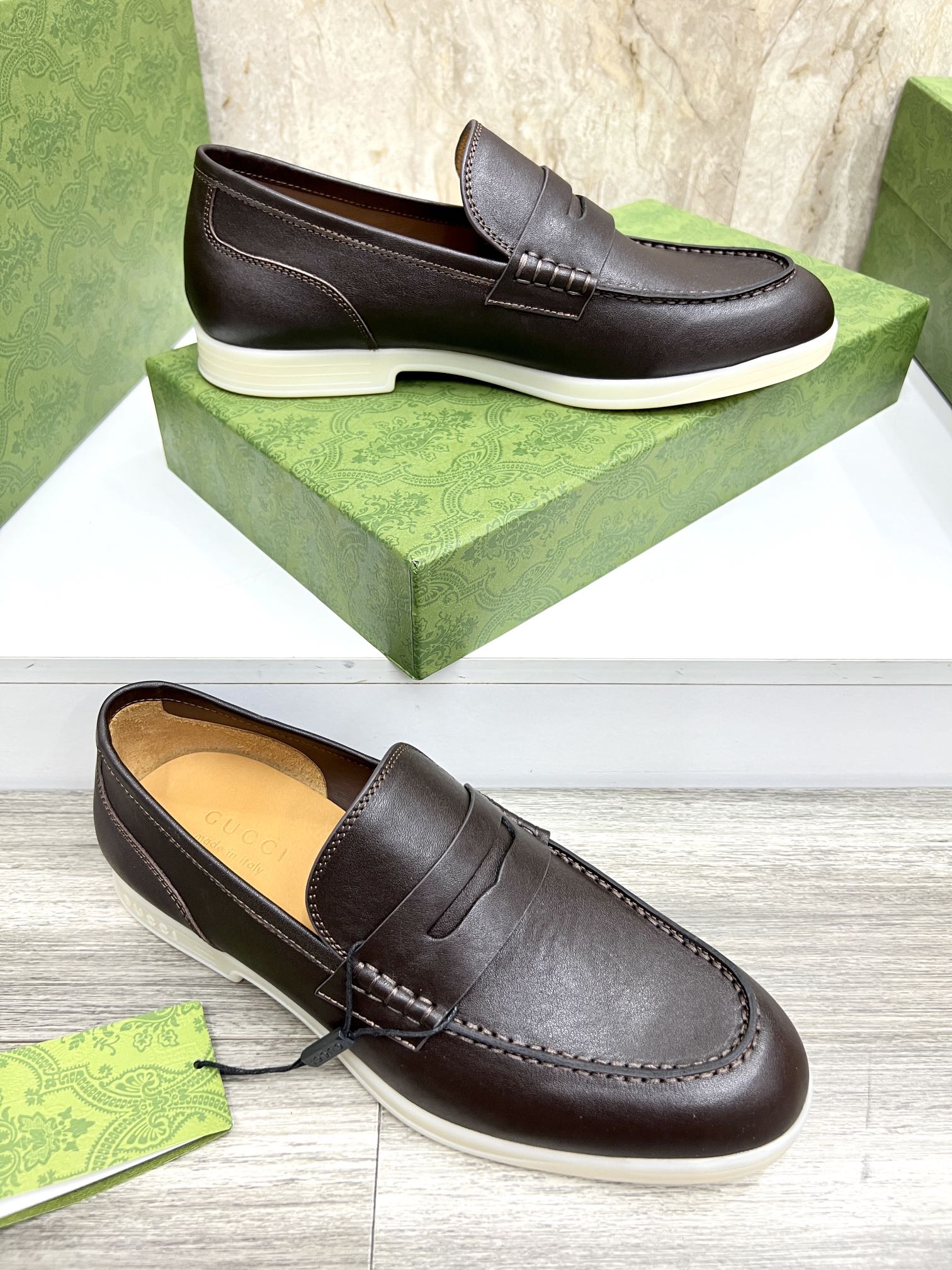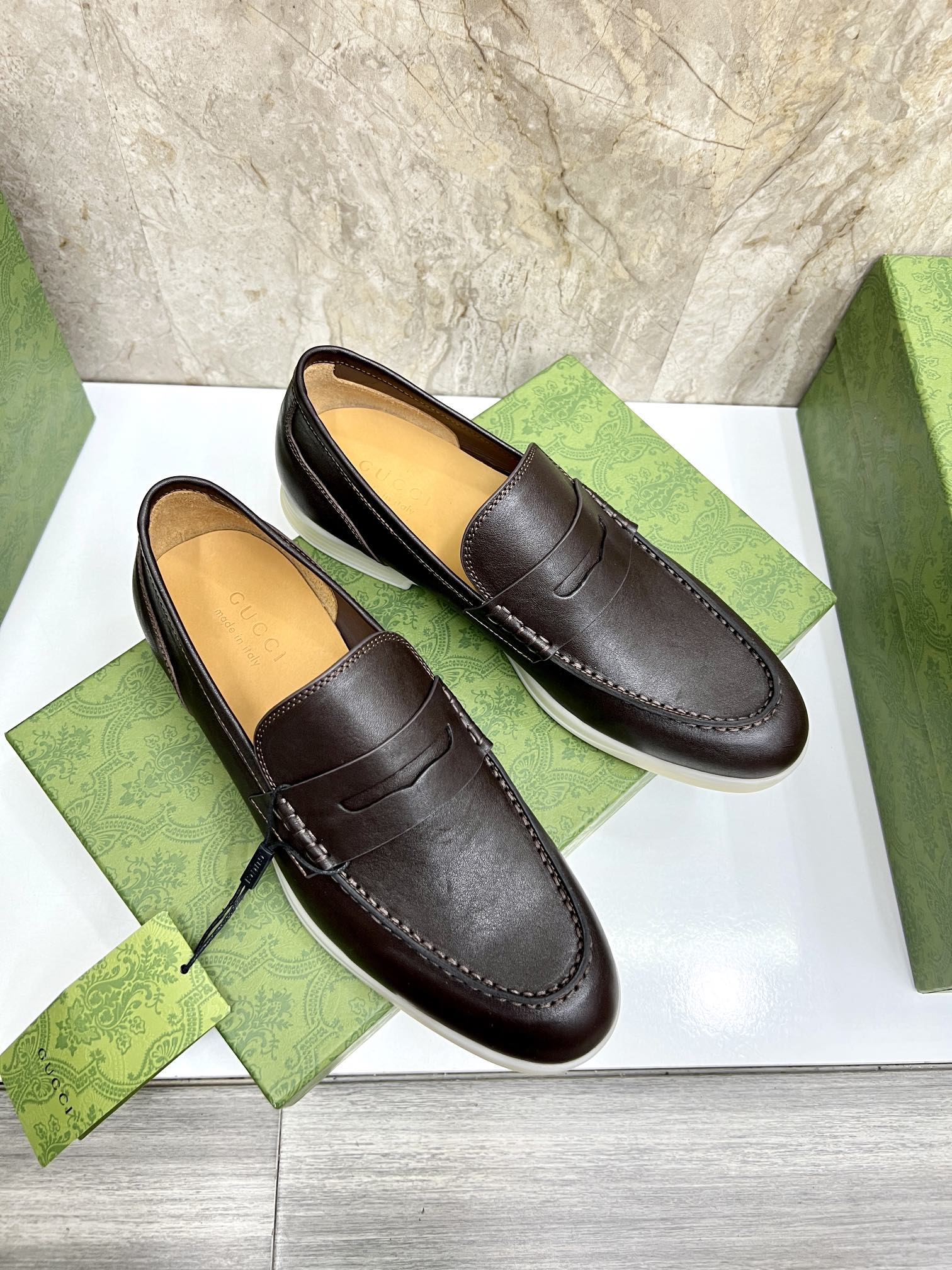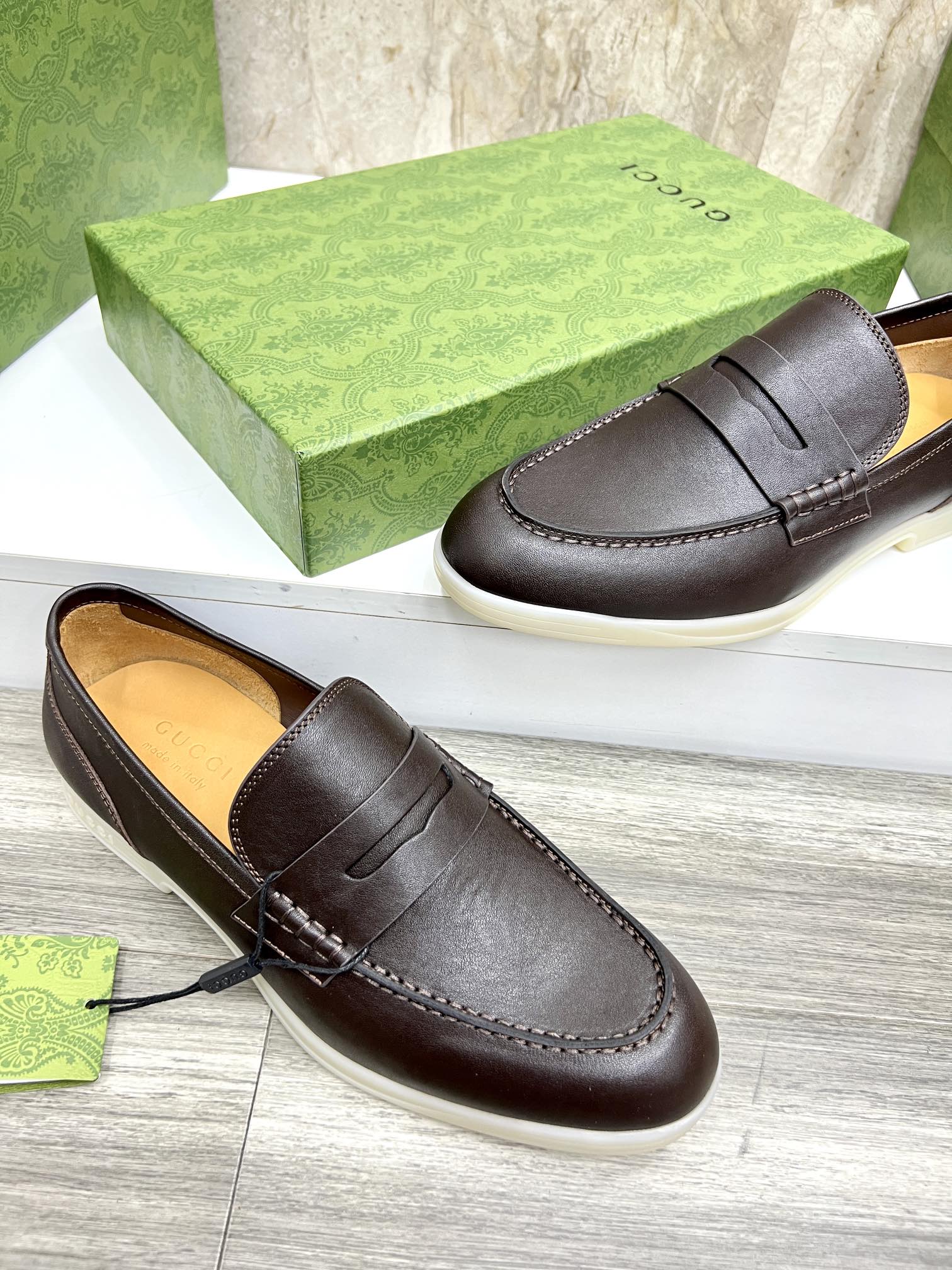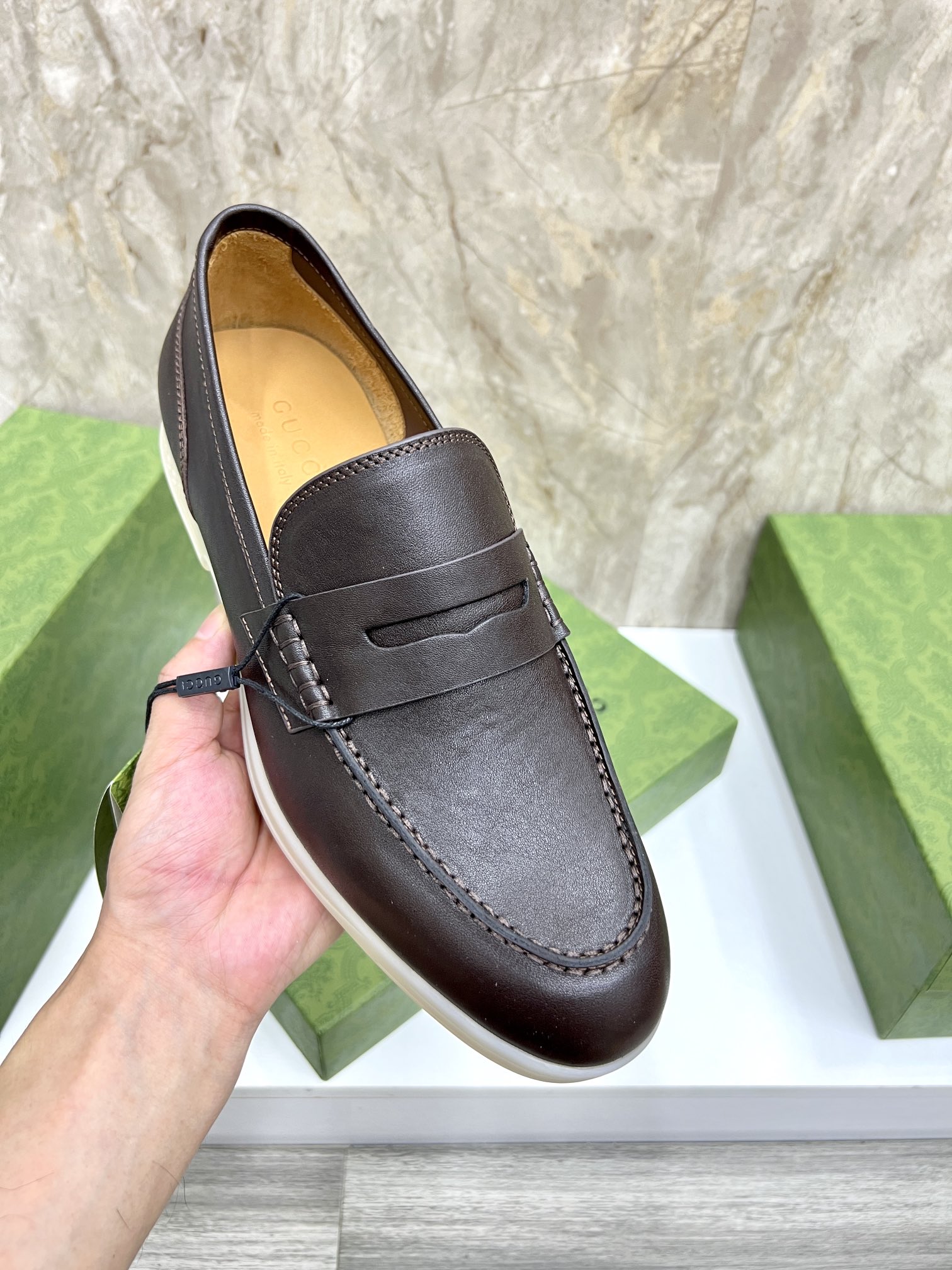 This shoes is AAAAA 1:1 quality (superb). Materials used are identical to the original ones. Gucci trademark marks are indistinguishable to the authentic. Photos take by actual shoes, what you receive will be 100% same with our photos.