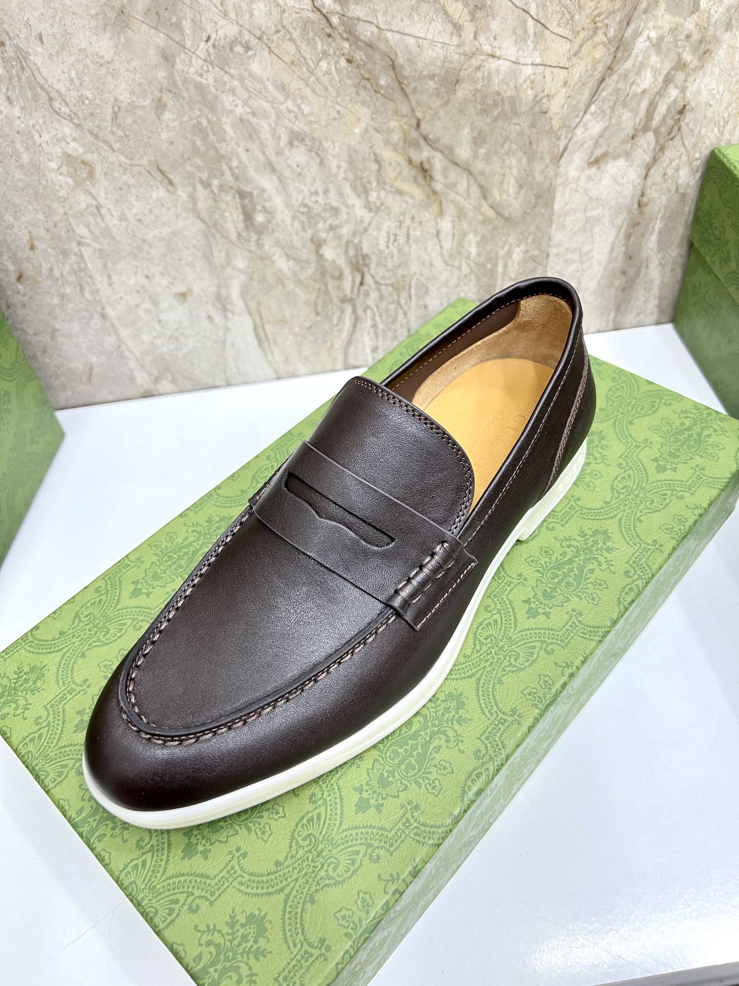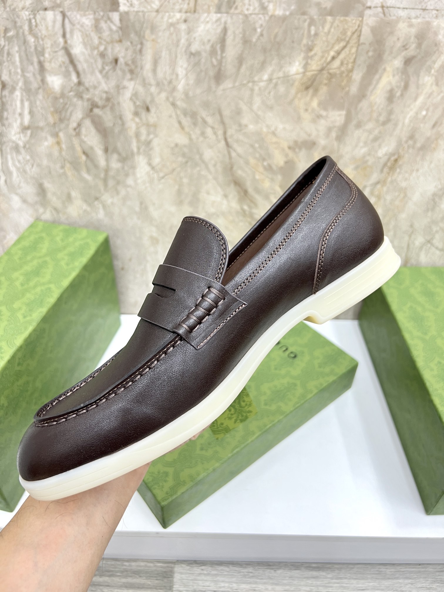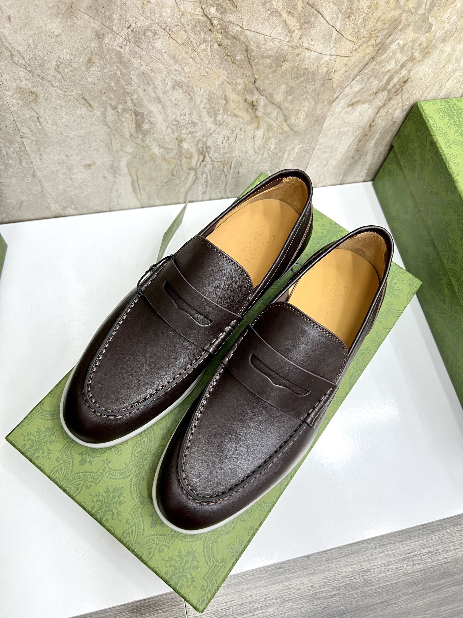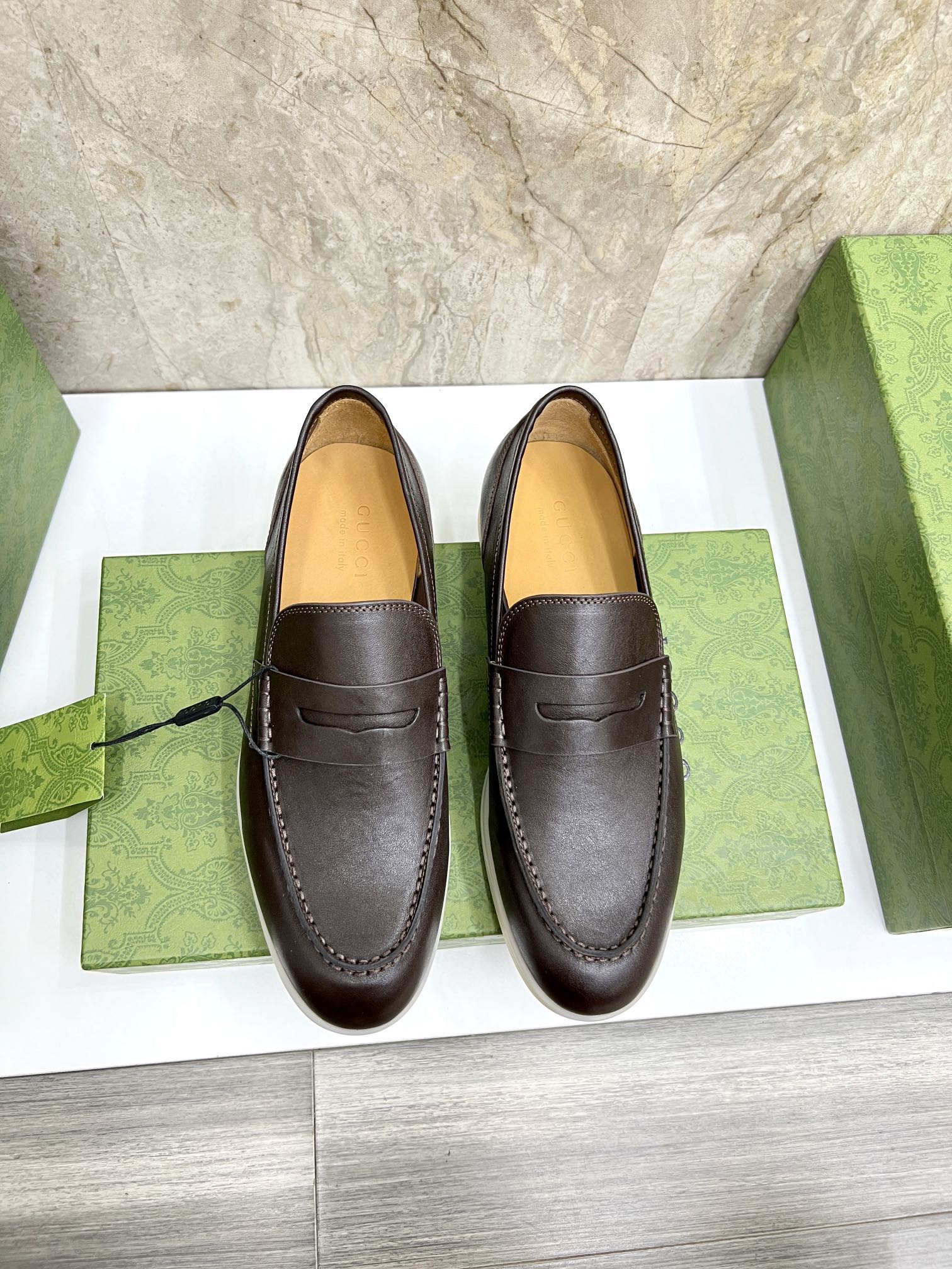 This shoes is AAAAA 1:1 quality (superb). Materials used are identical to the original ones. Gucci trademark marks are indistinguishable to the authentic. Photos take by actual shoes, what you receive will be 100% same with our photos.