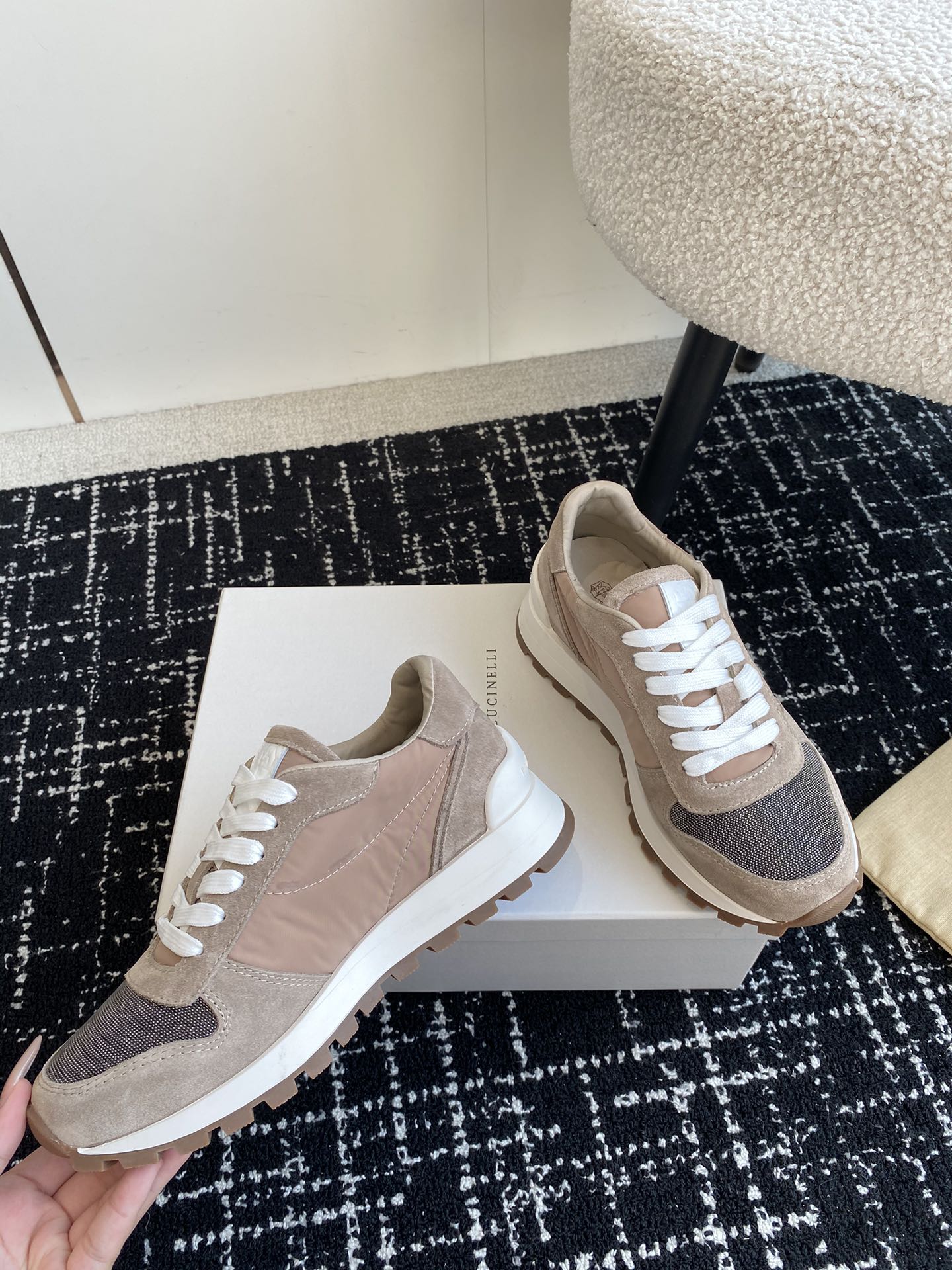 This shoes is AAAAA 1:1 quality (superb). Materials used are identical to the original ones. Brunello Cucinelli trademark marks are indistinguishable to the authentic. Photos take by actual shoes, what you receive will be 100% same with our photos.