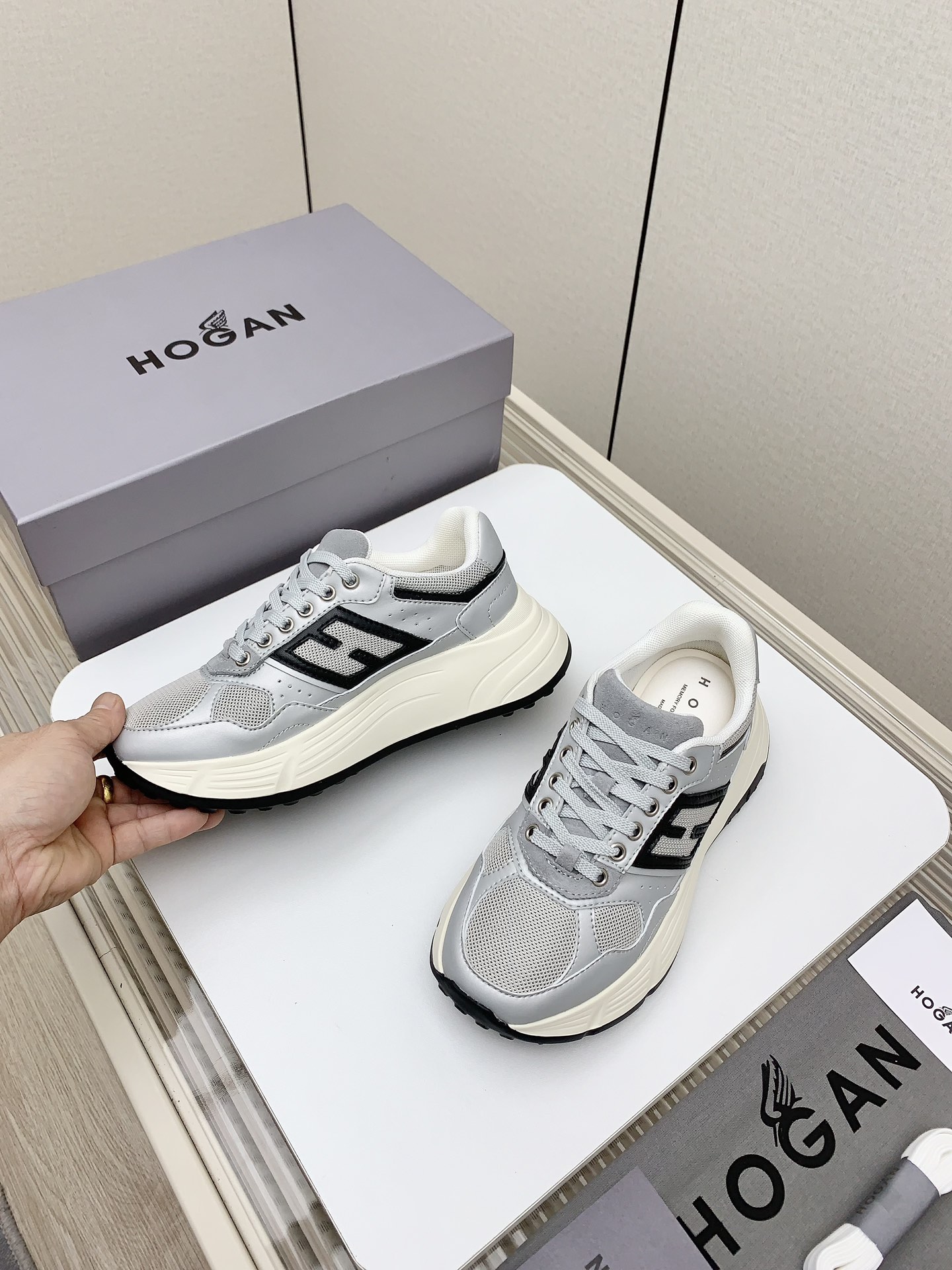 This shoes is AAAAA 1:1 quality (superb). Materials used are identical to the original ones. Hogan trademark marks are indistinguishable to the authentic. Photos take by actual shoes, what you receive will be 100% same with our photos.