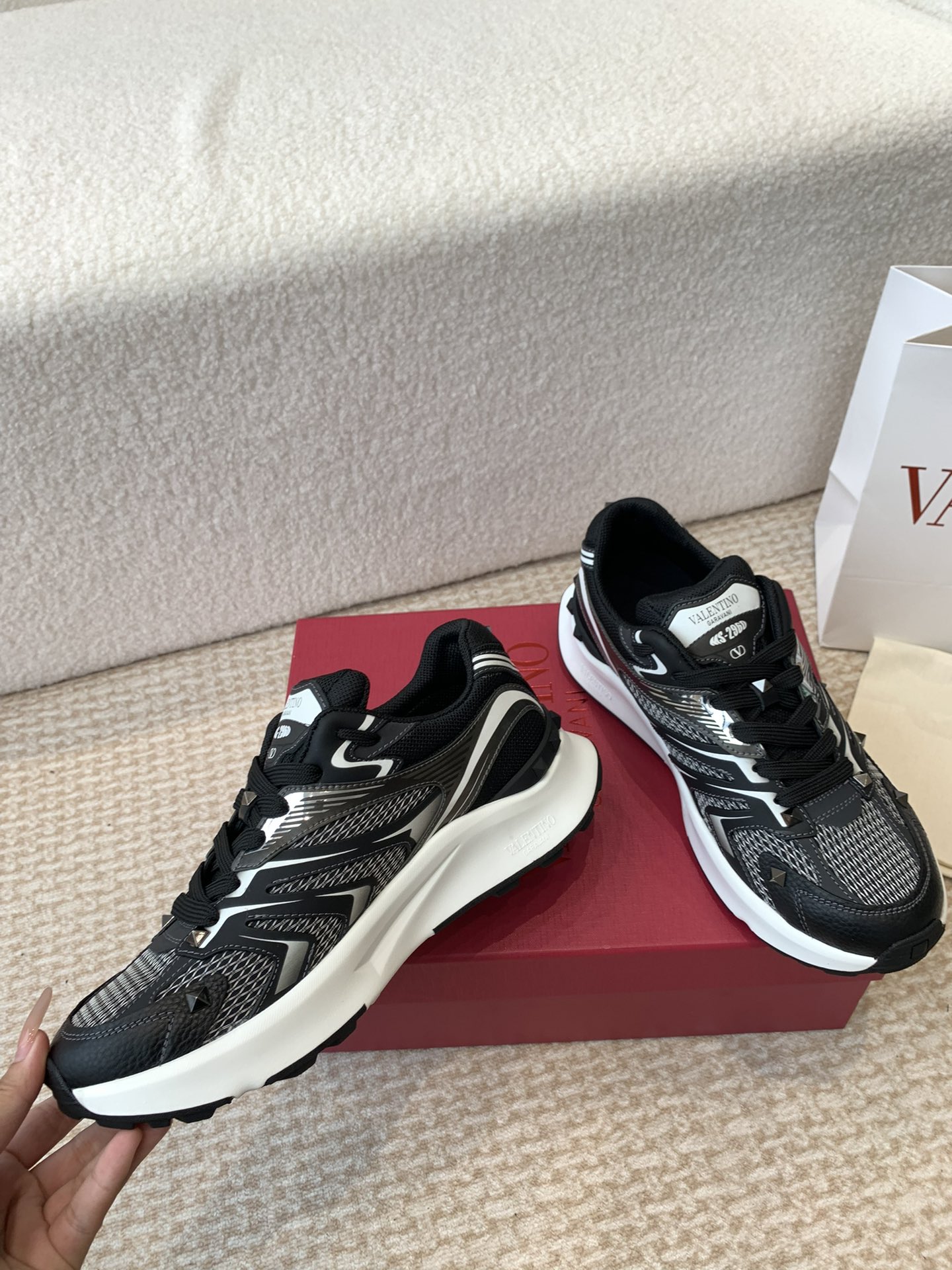 This shoes is AAAAA 1:1 quality (superb). Materials used are identical to the original ones. Valentino trademark marks are indistinguishable to the authentic. Photos take by actual shoes, what you receive will be 100% same with our photos.