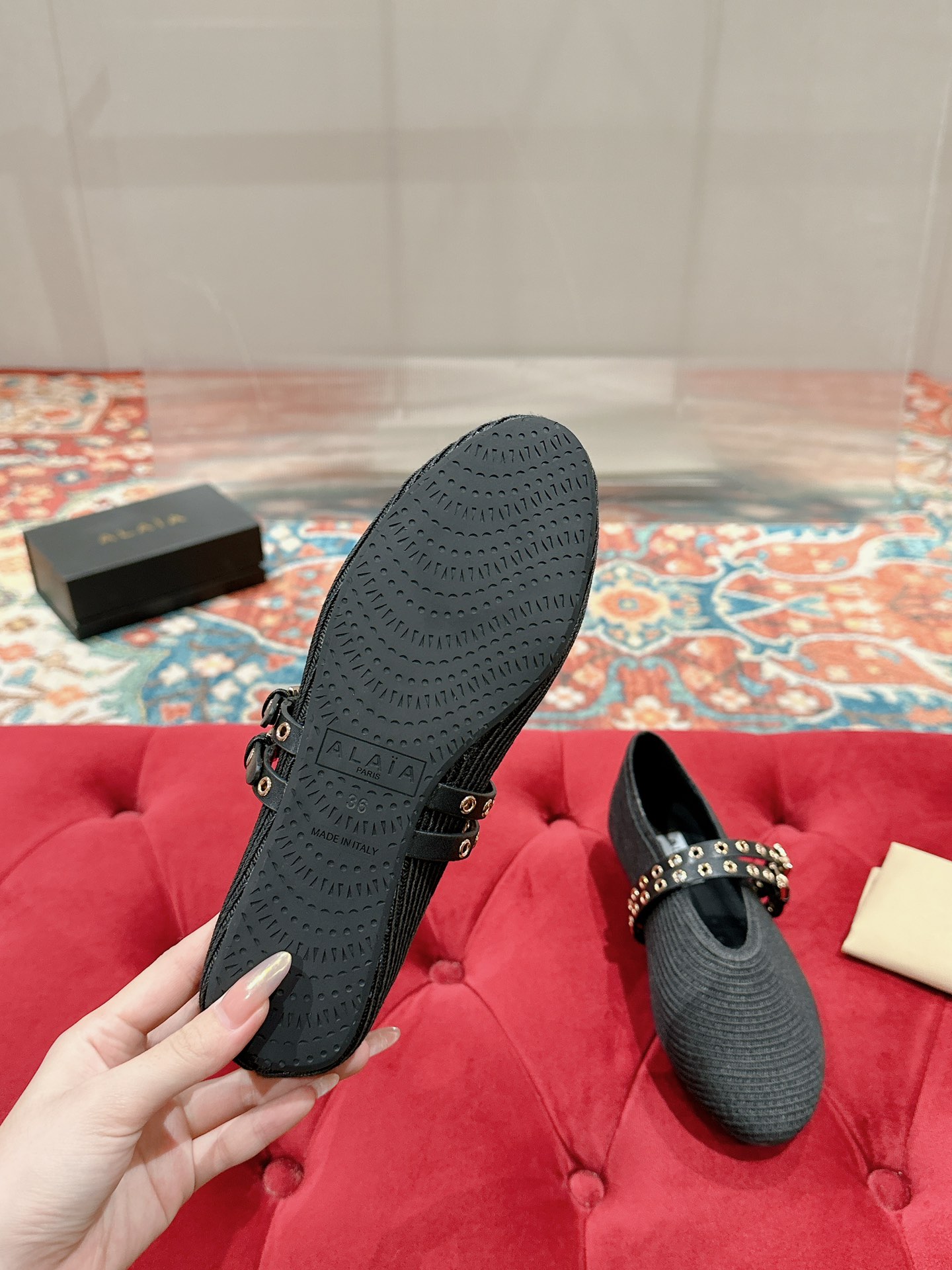 This shoes is AAAAA 1:1 quality (superb). Materials used are identical to the original ones. Alaia trademark marks are indistinguishable to the authentic. Photos take by actual shoes, what you receive will be 100% same with our photos.