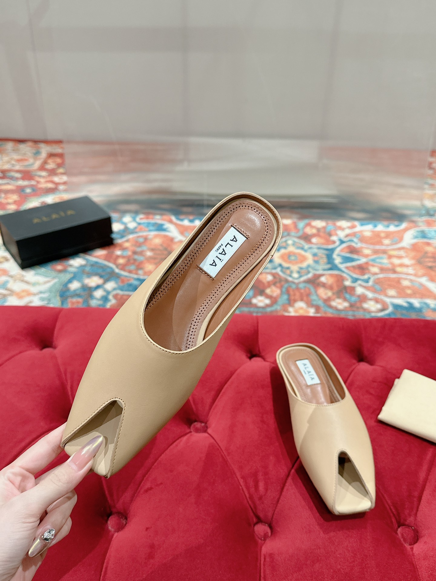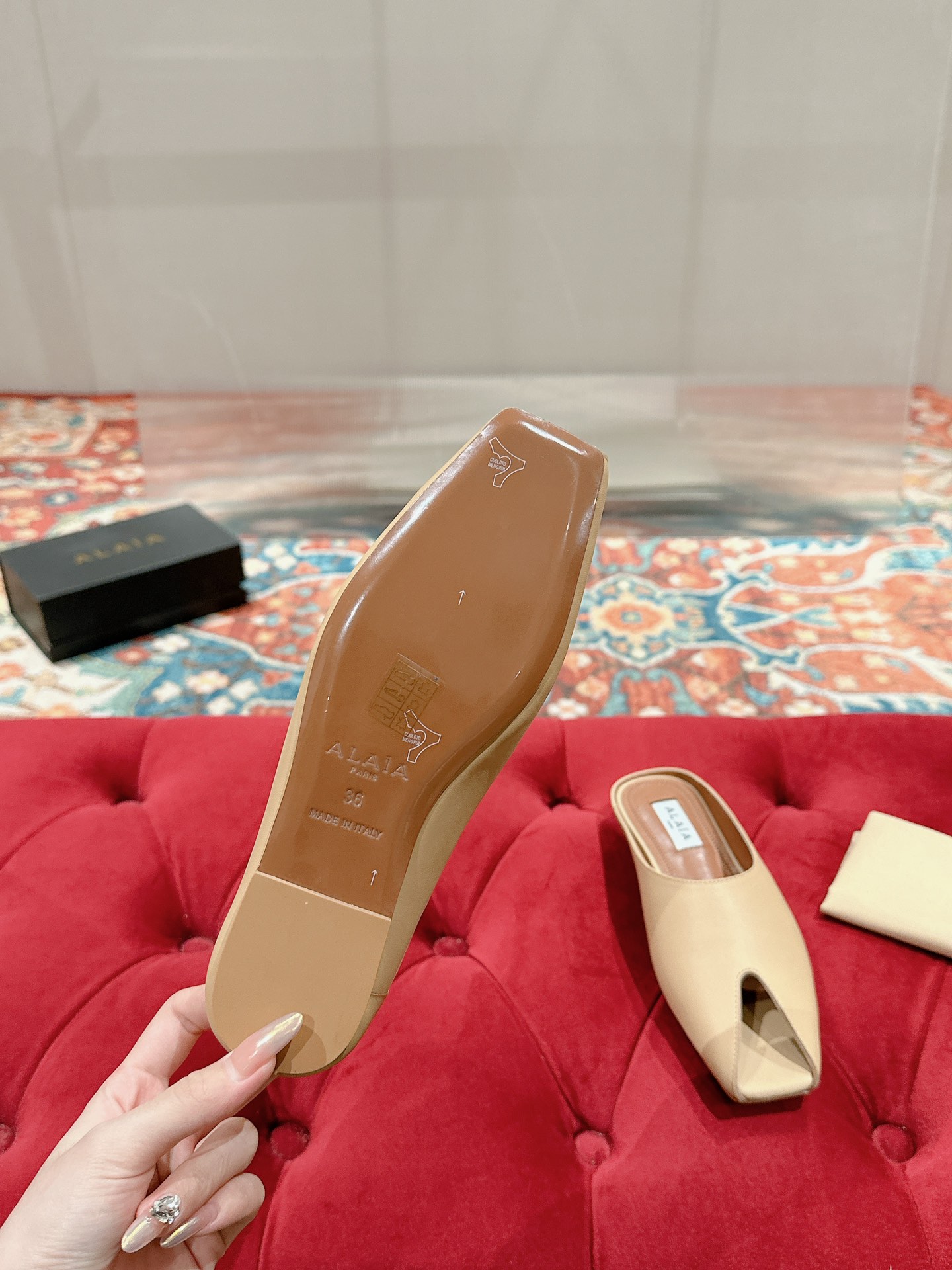 This shoes is AAAAA 1:1 quality (superb). Materials used are identical to the original ones. Alaia trademark marks are indistinguishable to the authentic. Photos take by actual shoes, what you receive will be 100% same with our photos.