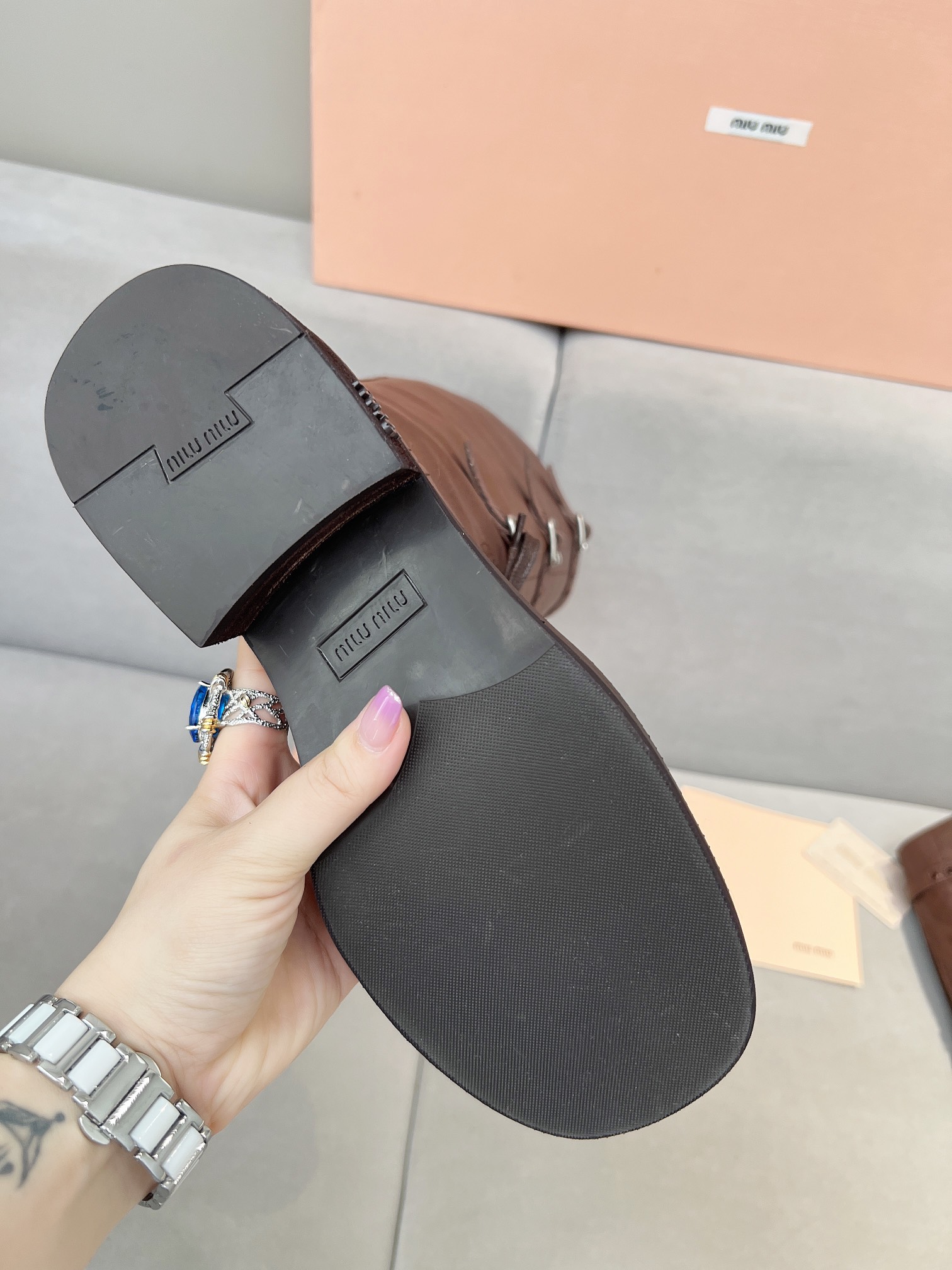 This shoes is AAAAA 1:1 quality (superb). Materials used are identical to the original ones. Miu Miu trademark marks are indistinguishable to the authentic. Photos take by actual shoes, what you receive will be 100% same with our photos.