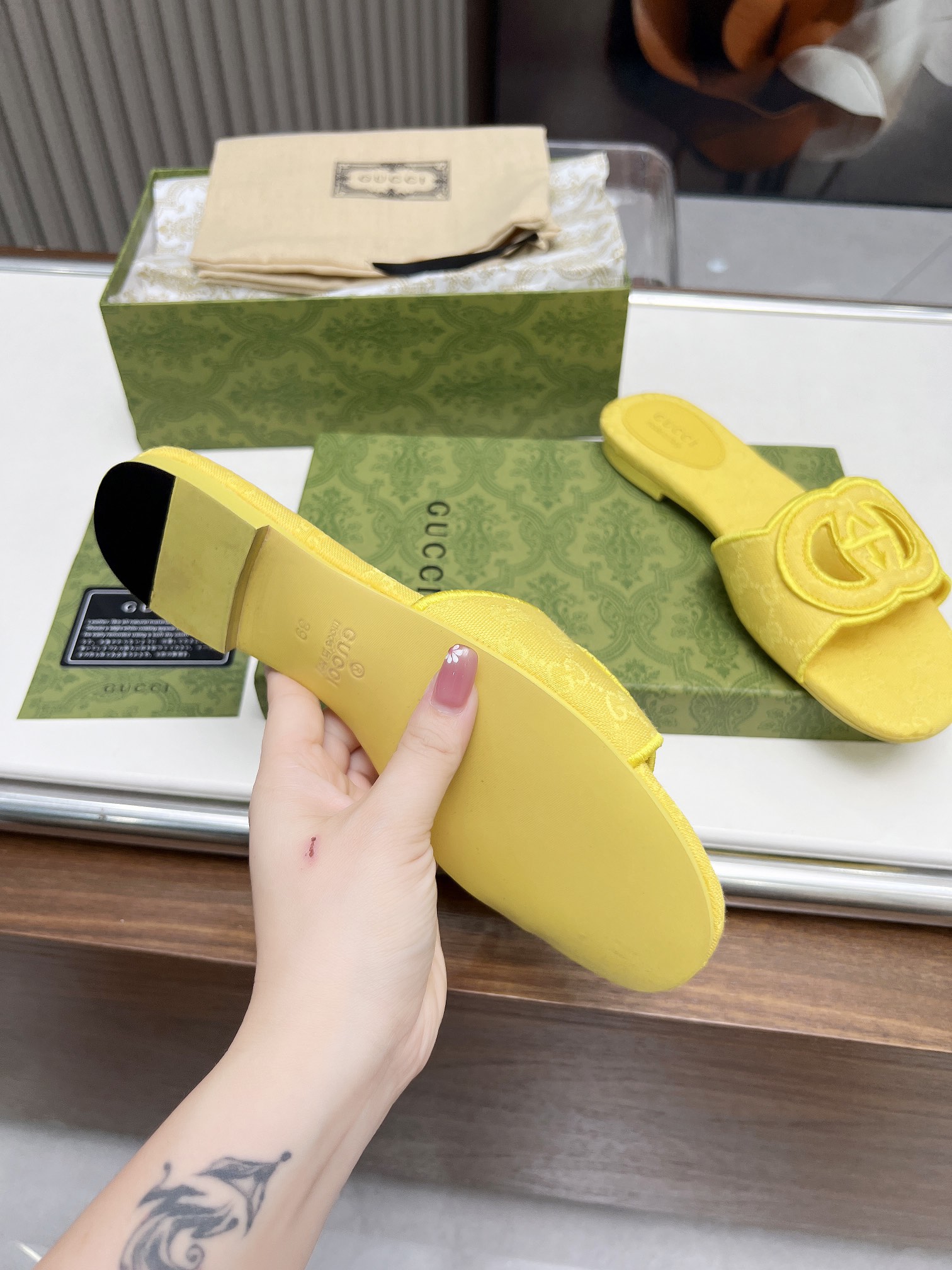 This shoes is AAAAA 1:1 quality (superb). Materials used are identical to the original ones. Gucci trademark marks are indistinguishable to the authentic. Photos take by actual shoes, what you receive will be 100% same with our photos.