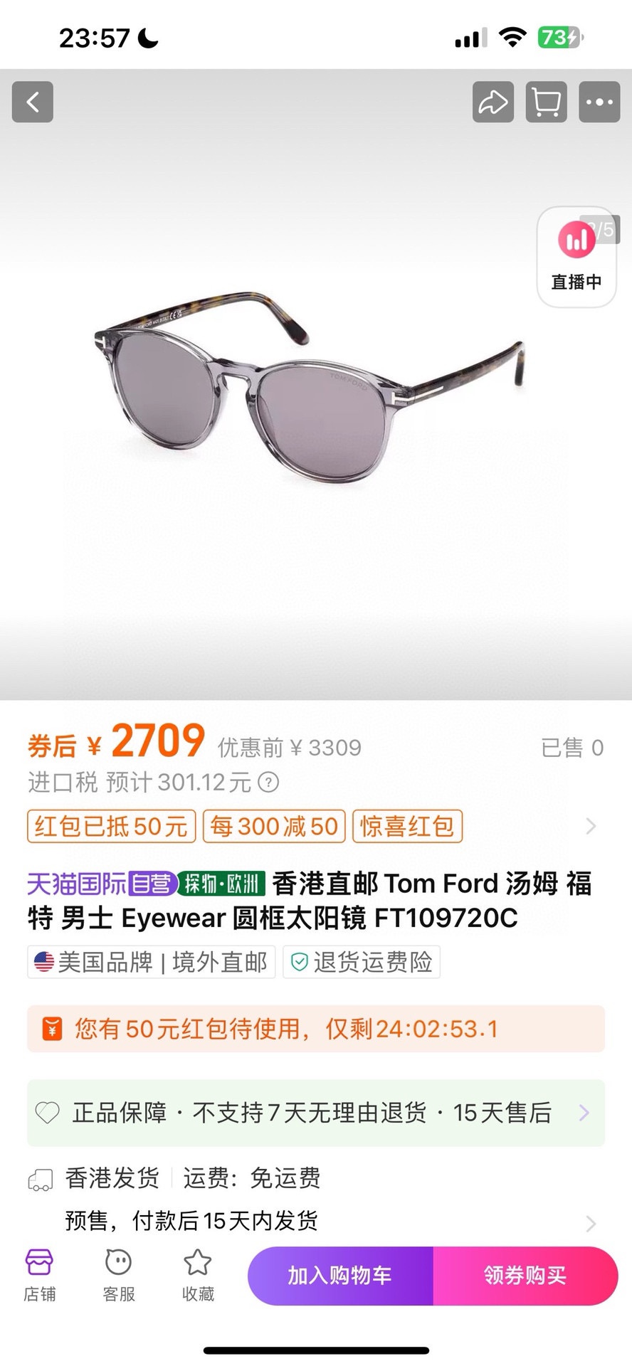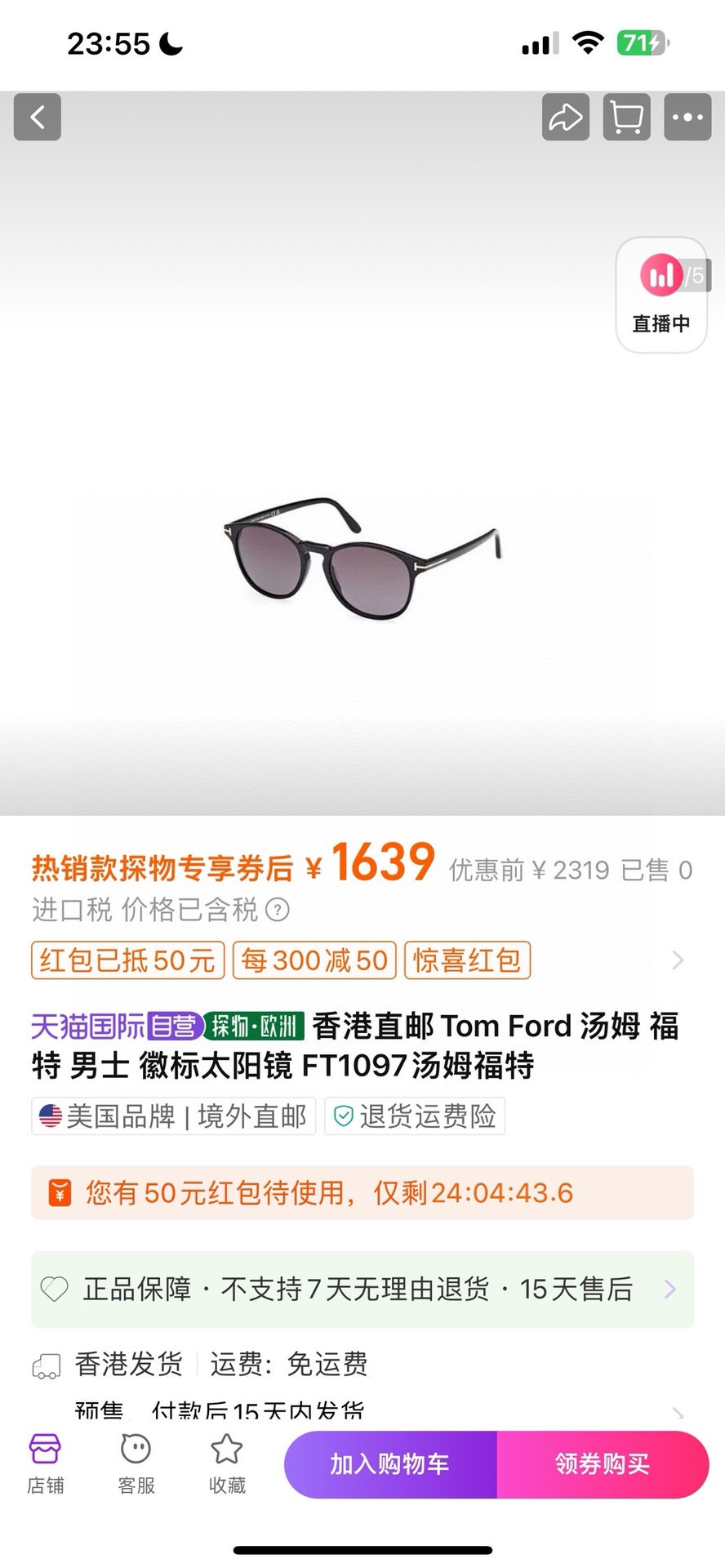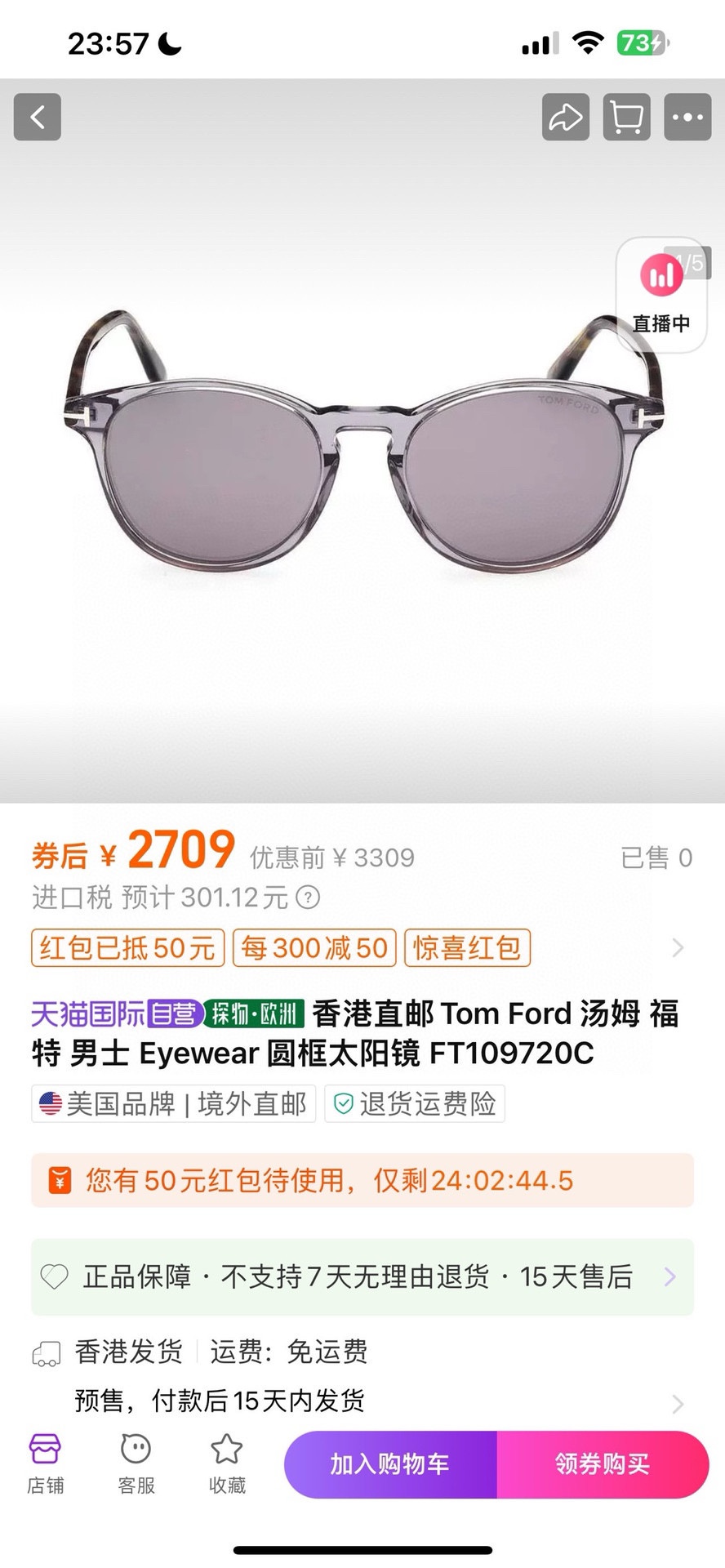 NO:1704049. The sunglasses is from Tom Ford designer.