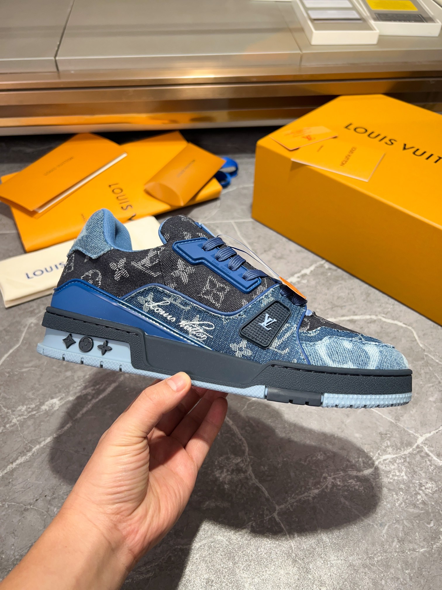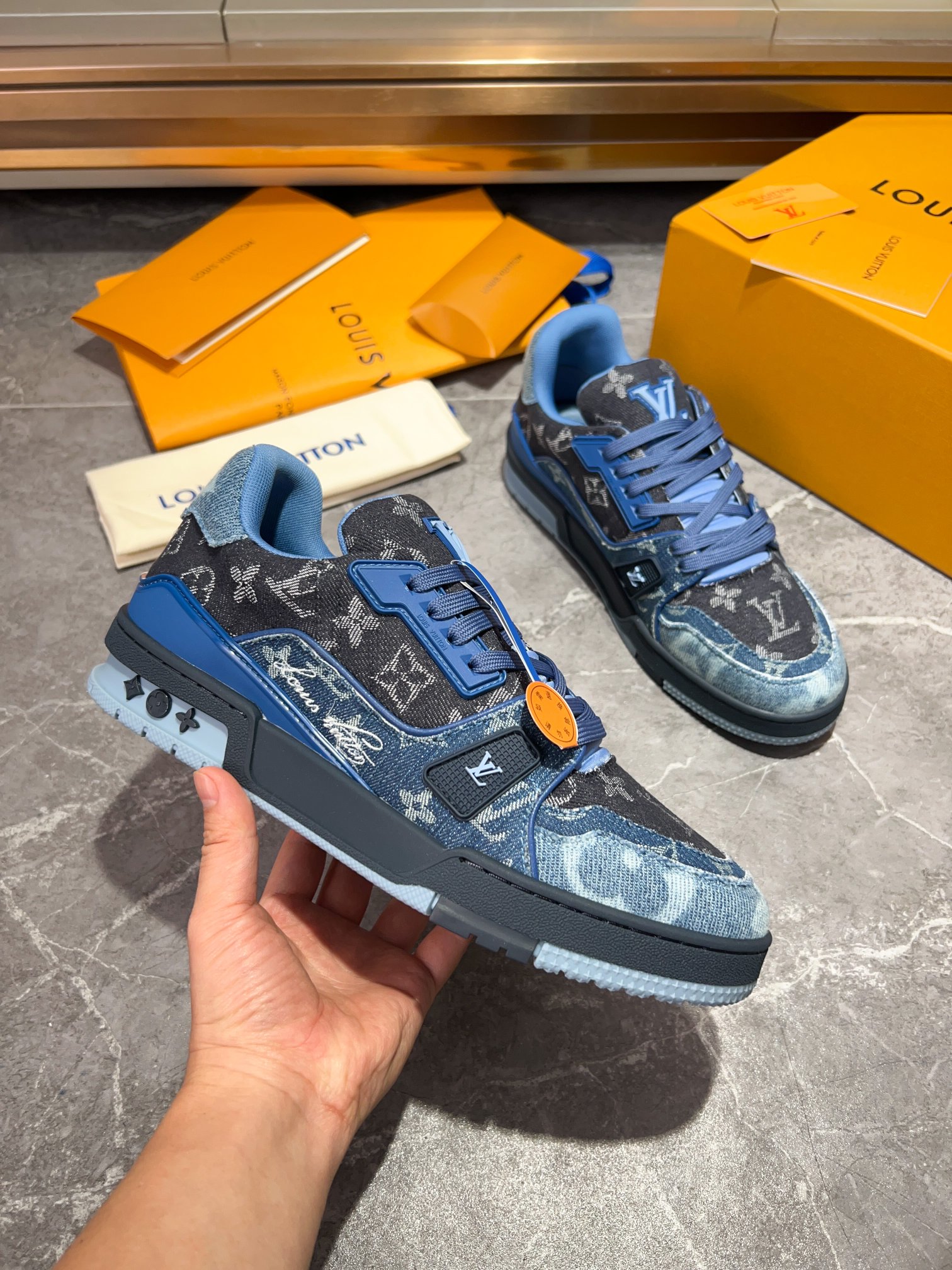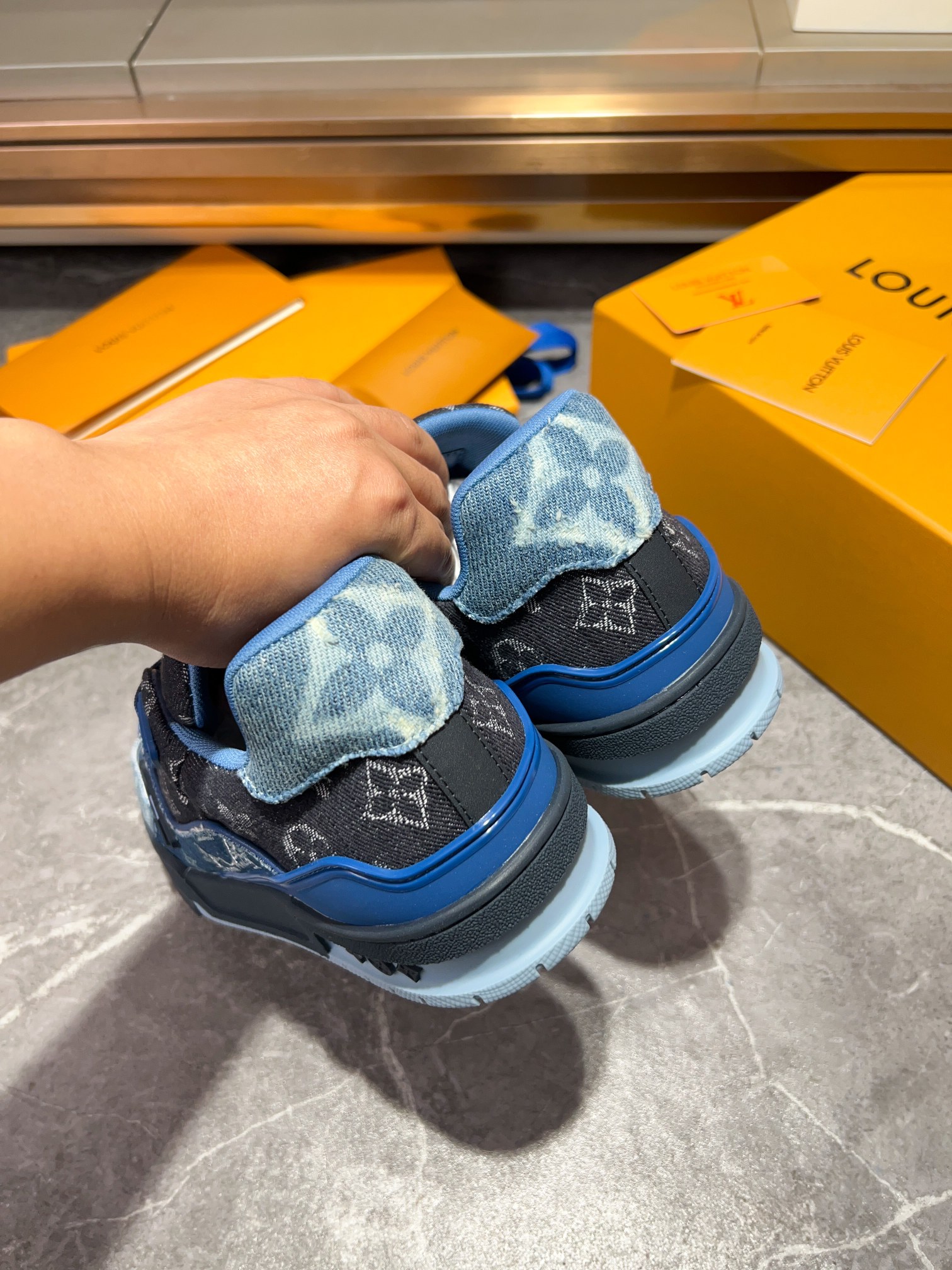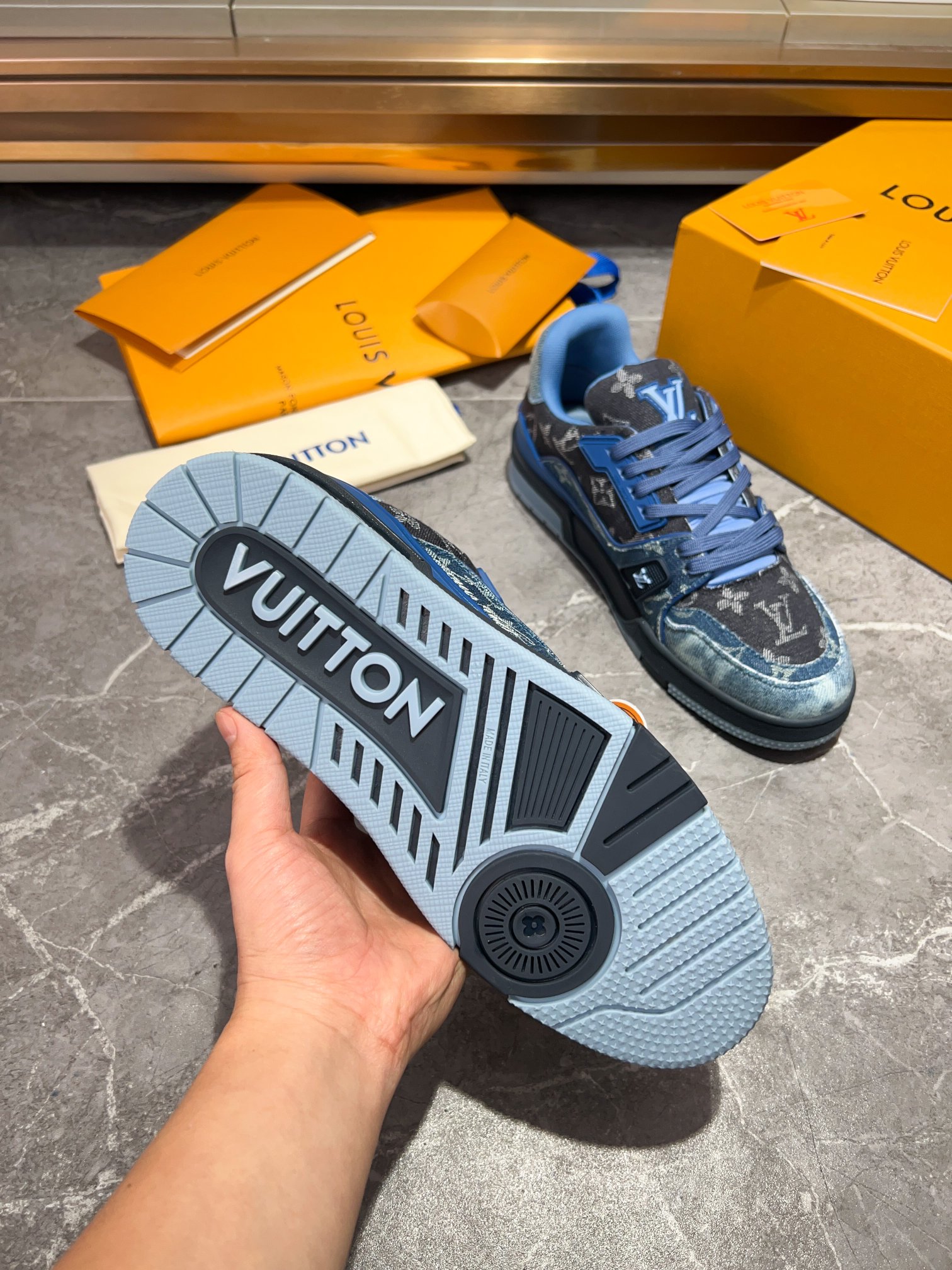 This shoes is AAAAA 1:1 quality (superb). Materials used are identical to the original ones. Louis Vuitton trademark marks are indistinguishable to the authentic. Photos take by actual shoes, what you receive will be 100% same with our photos.