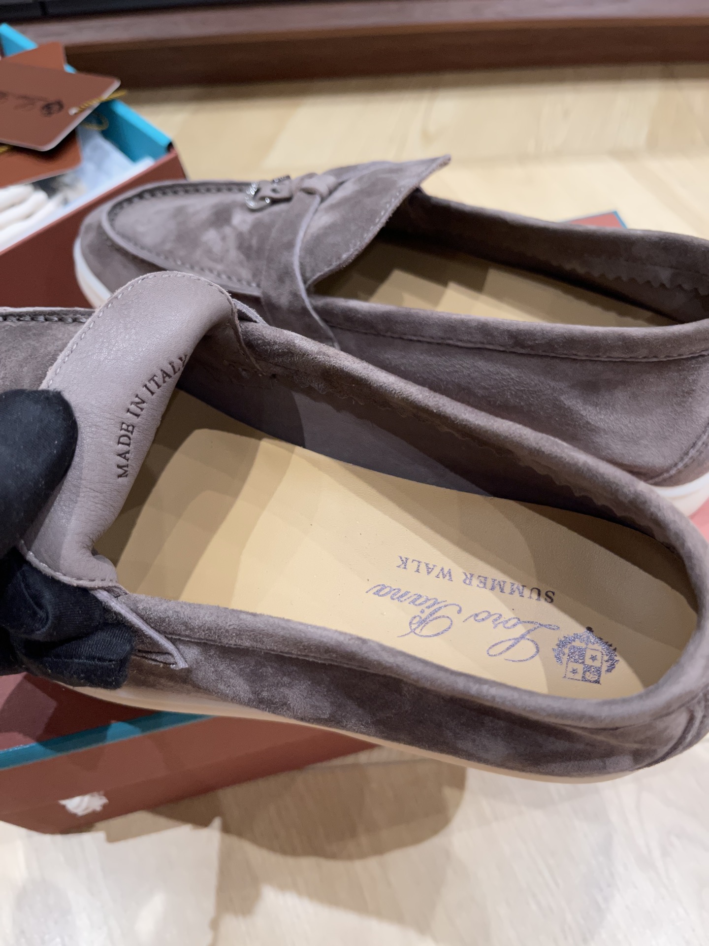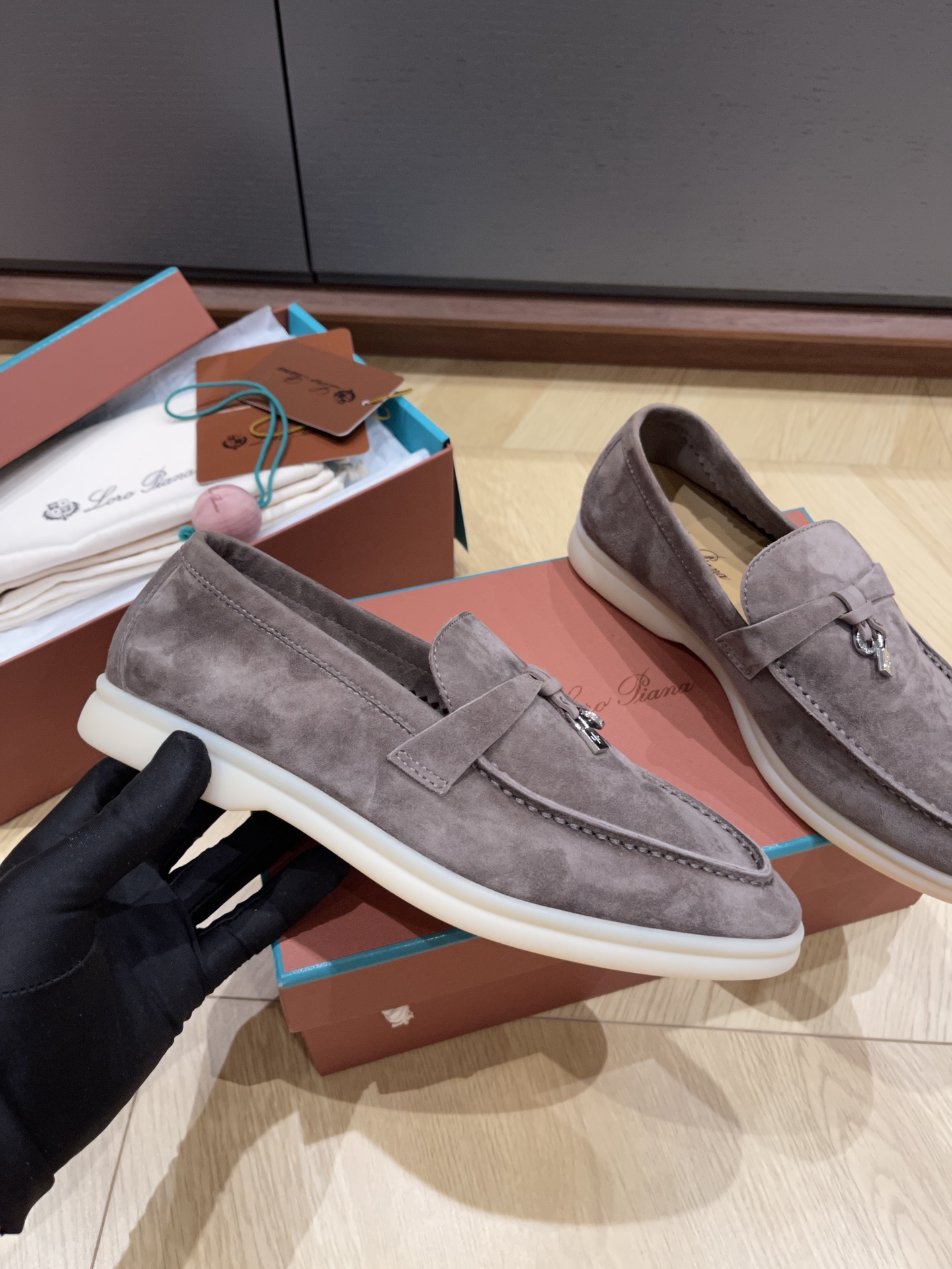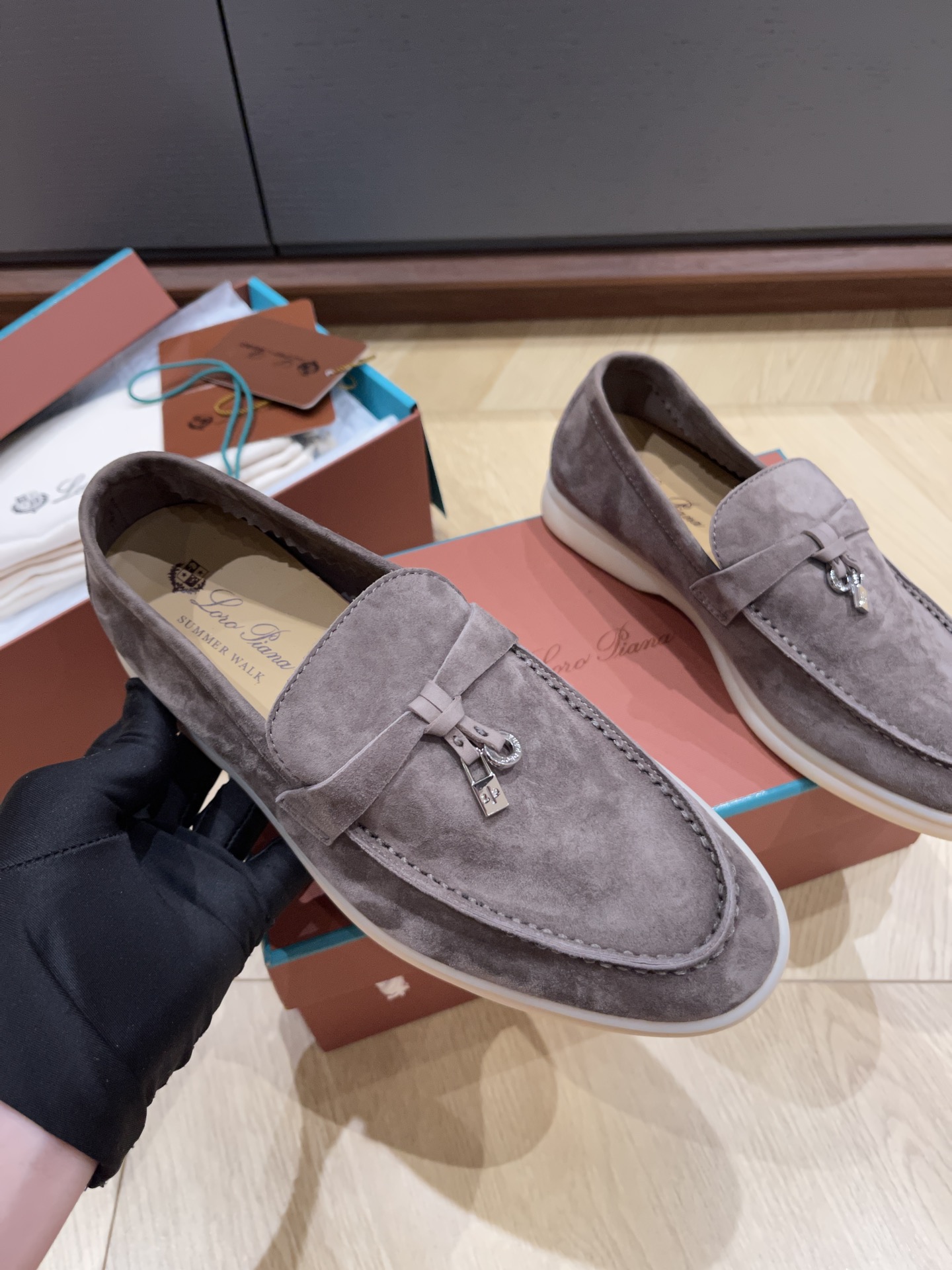This shoes is AAAAA 1:1 quality (superb). Materials used are identical to the original ones. Loro Piana trademark marks are indistinguishable to the authentic. Photos take by actual shoes, what you receive will be 100% same with our photos.