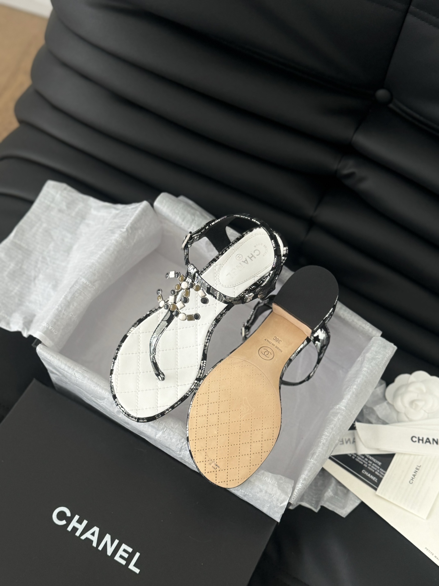 This shoes is AAAAA 1:1 quality (superb). Materials used are identical to the original ones. Chanel trademark marks are indistinguishable to the authentic. Photos take by actual shoes, what you receive will be 100% same with our photos.
