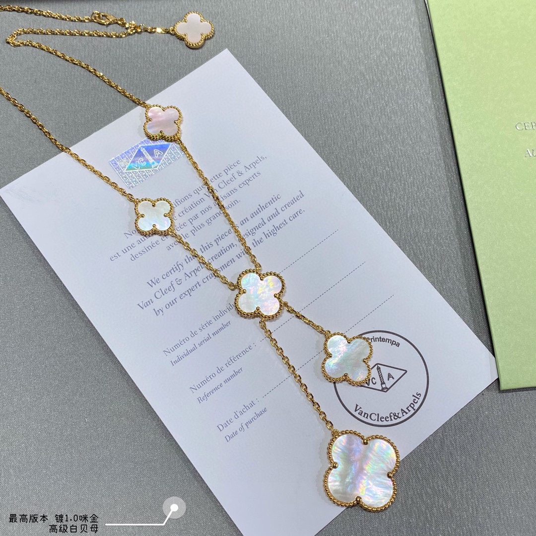 This jewelry is AAAAA 1:1 quality (superb). Materials used are identical to the original ones. Van Cleef & Arpels trademark marks are indistinguishable to the authentic. Photos take by actual jewelry, what you receive will be 100% same with our photos.