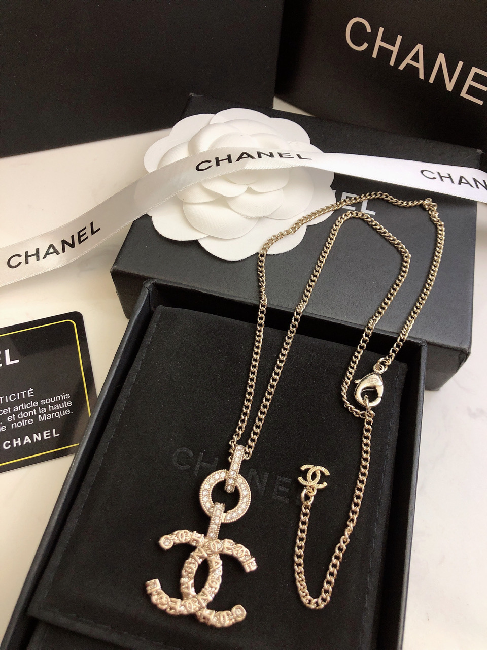 This jewelry is AAAAA 1:1 quality (superb). Materials used are identical to the original ones. Chanel trademark marks are indistinguishable to the authentic. Photos take by actual jewelry, what you receive will be 100% same with our photos.