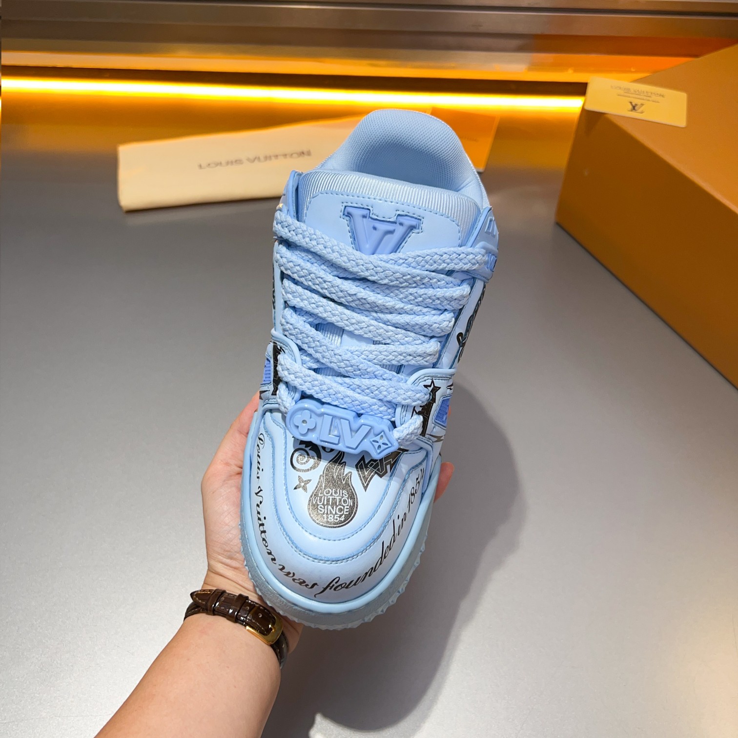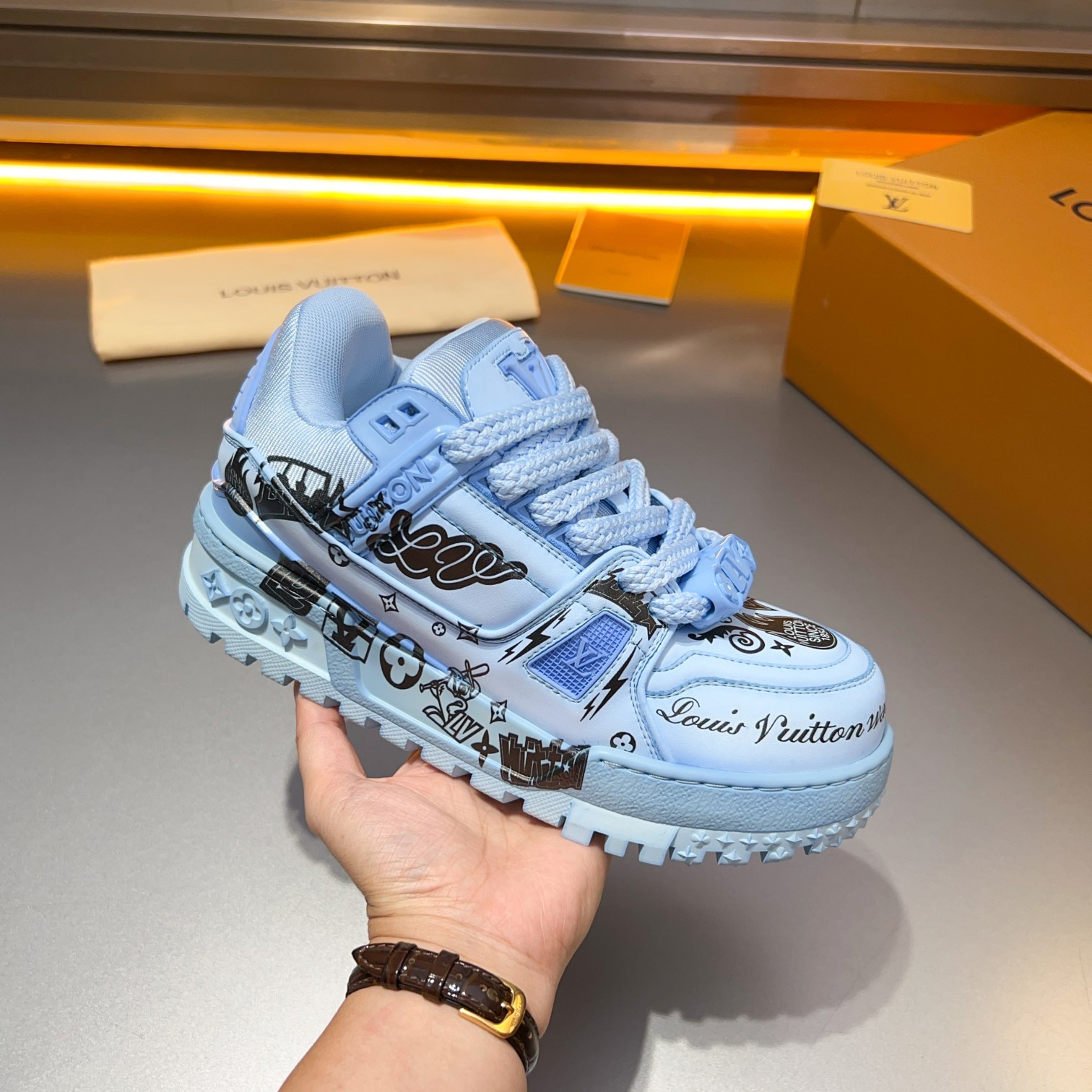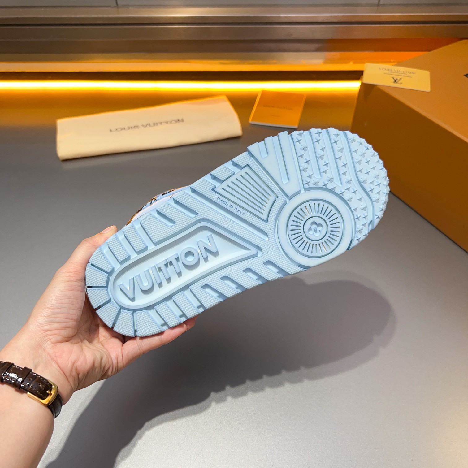 This shoes is AAAAA 1:1 quality (superb). Materials used are identical to the original ones. Louis Vuitton trademark marks are indistinguishable to the authentic. Photos take by actual shoes, what you receive will be 100% same with our photos.
