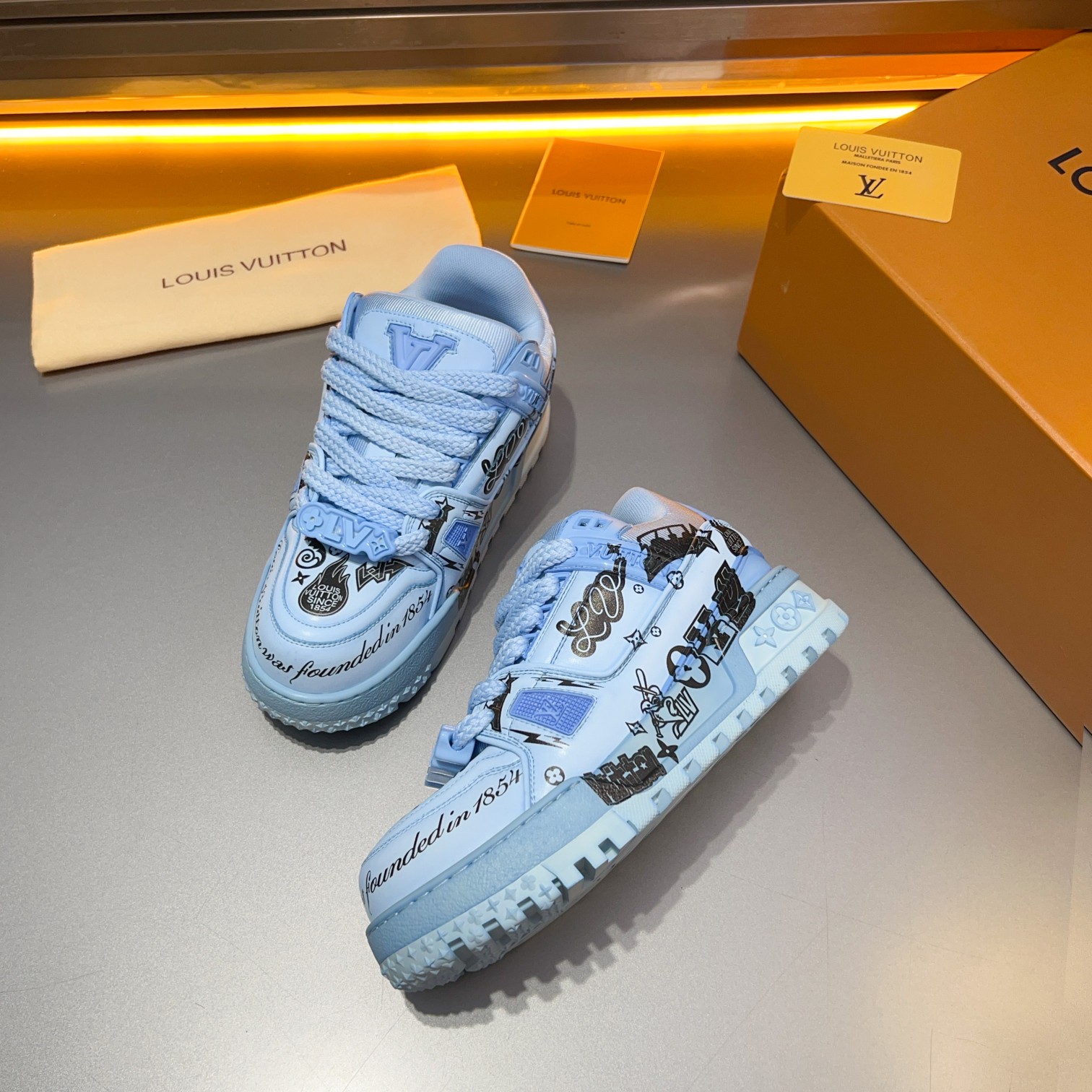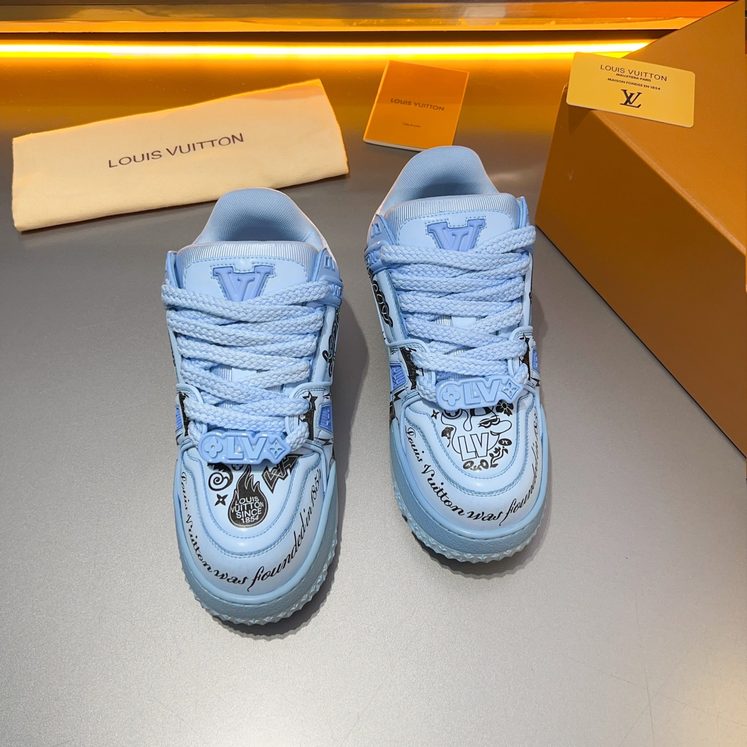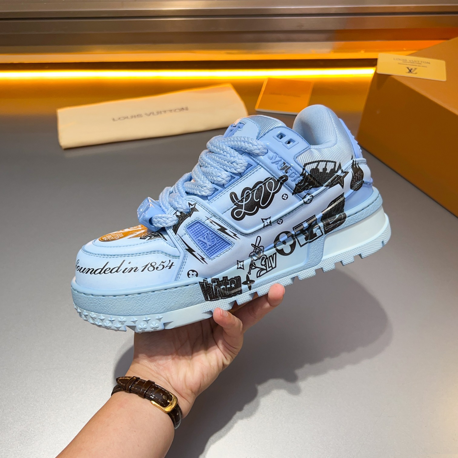 This shoes is AAAAA 1:1 quality (superb). Materials used are identical to the original ones. Louis Vuitton trademark marks are indistinguishable to the authentic. Photos take by actual shoes, what you receive will be 100% same with our photos.