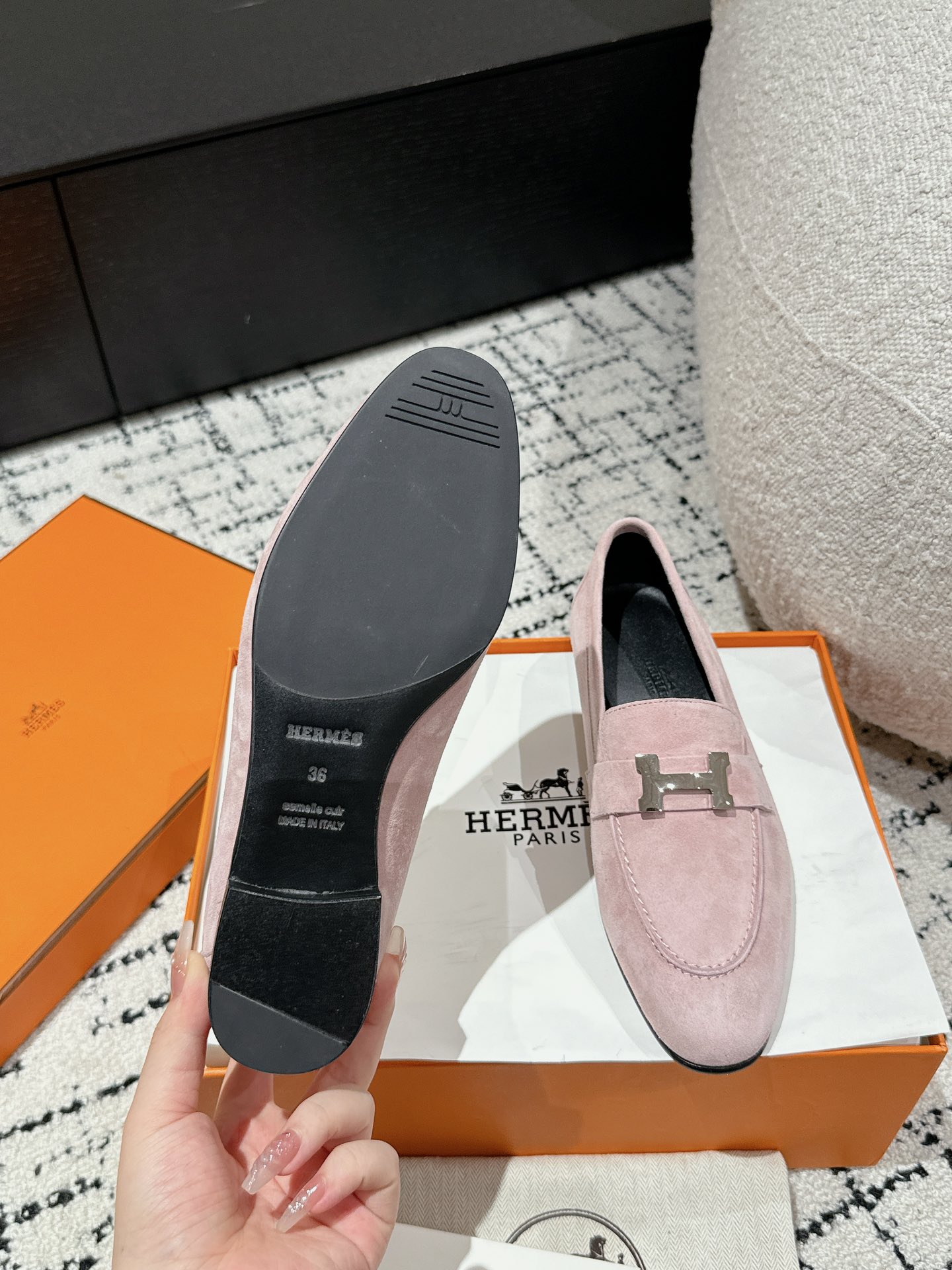 This shoes is AAAAA 1:1 quality (superb). Materials used are identical to the original ones. Hermes trademark marks are indistinguishable to the authentic. Photos take by actual shoes, what you receive will be 100% same with our photos.
