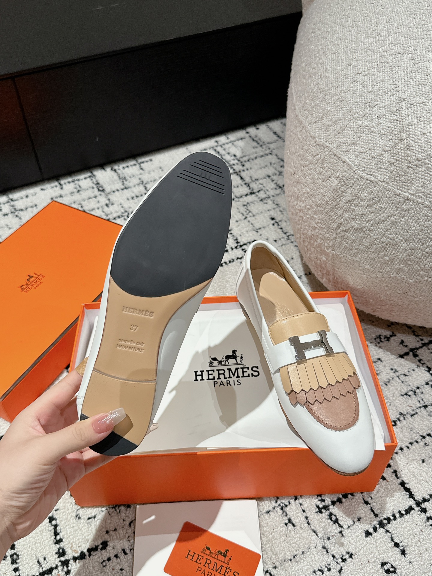 This shoes is AAAAA 1:1 quality (superb). Materials used are identical to the original ones. Hermes trademark marks are indistinguishable to the authentic. Photos take by actual shoes, what you receive will be 100% same with our photos.