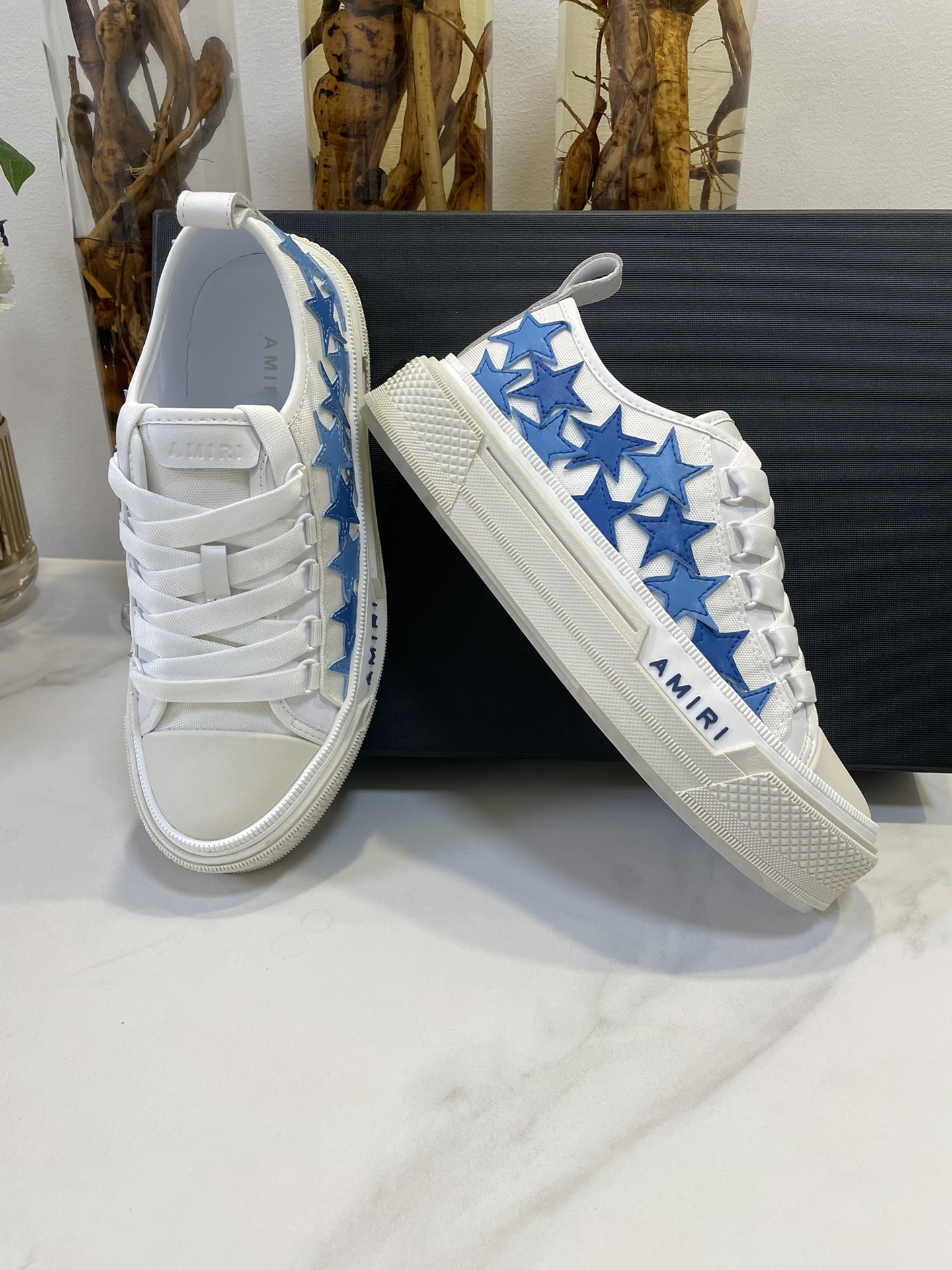 This shoes is AAAAA 1:1 quality (superb). Materials used are identical to the original ones. AMIRI trademark marks are indistinguishable to the authentic. Photos take by actual shoes, what you receive will be 100% same with our photos.