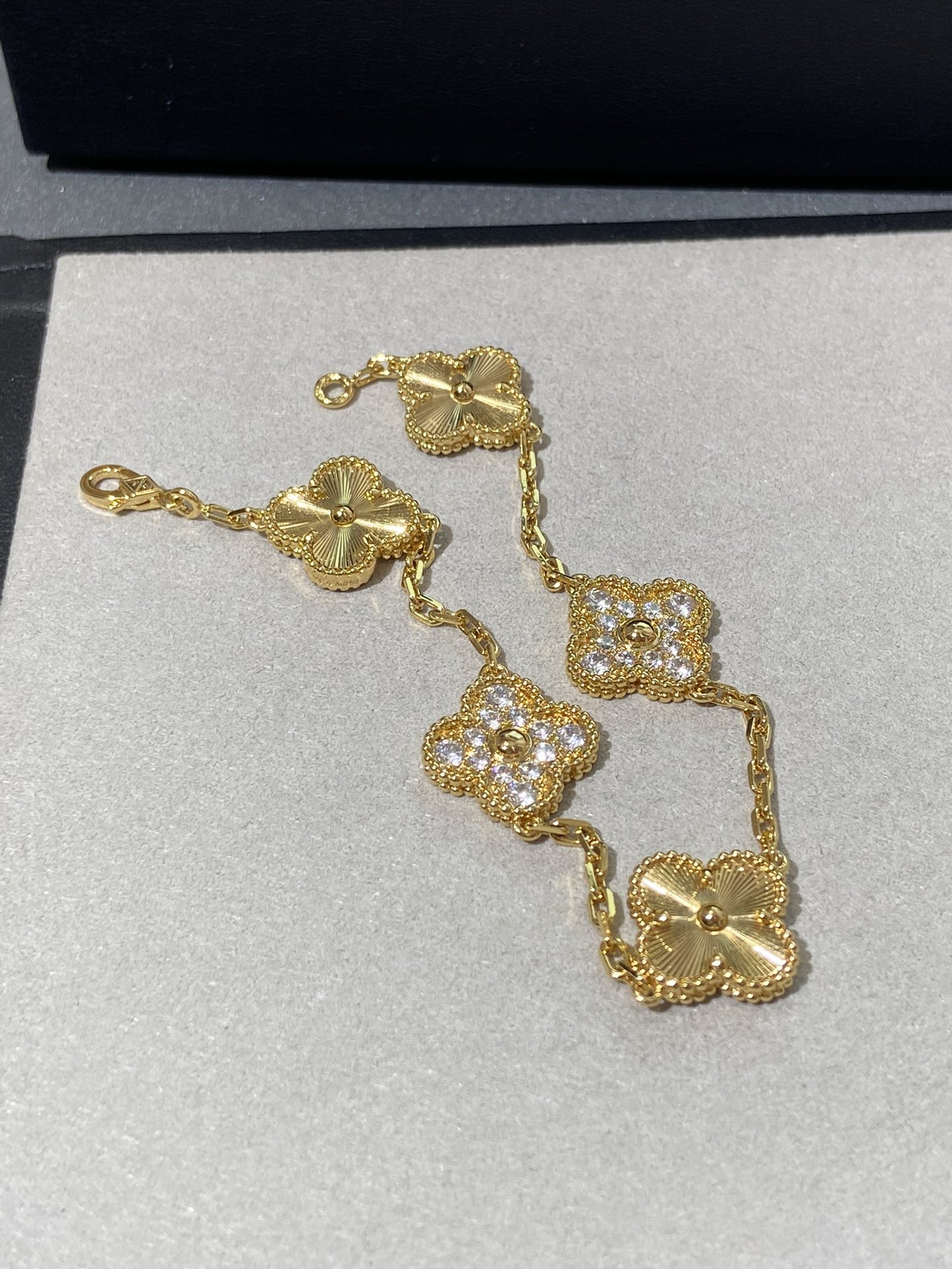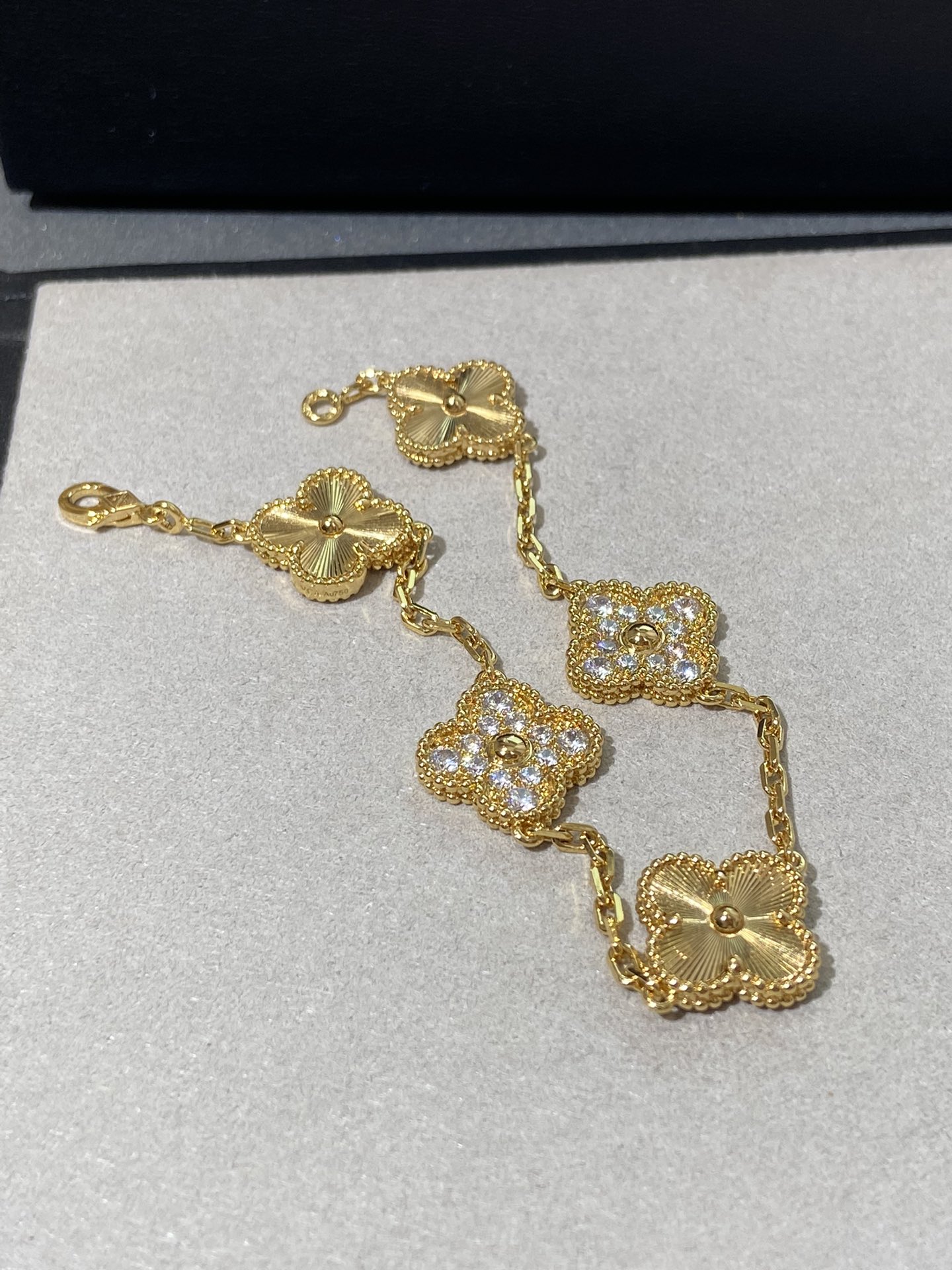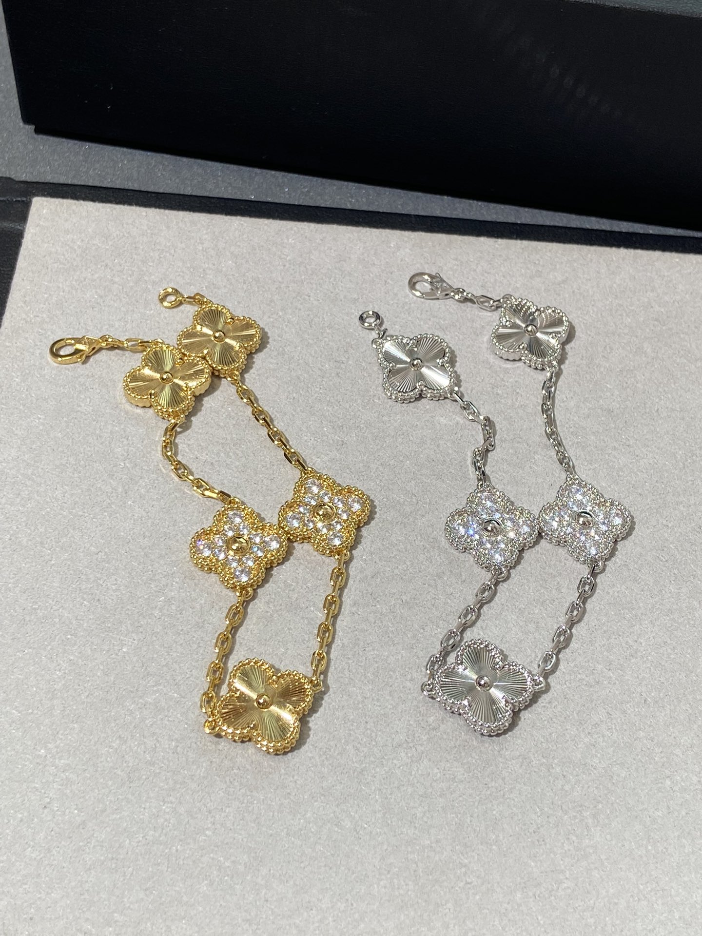 This jewelry is AAAAA 1:1 quality (superb). Materials used are identical to the original ones. Van Cleef & Arpels trademark marks are indistinguishable to the authentic. Photos take by actual jewelry, what you receive will be 100% same with our photos.