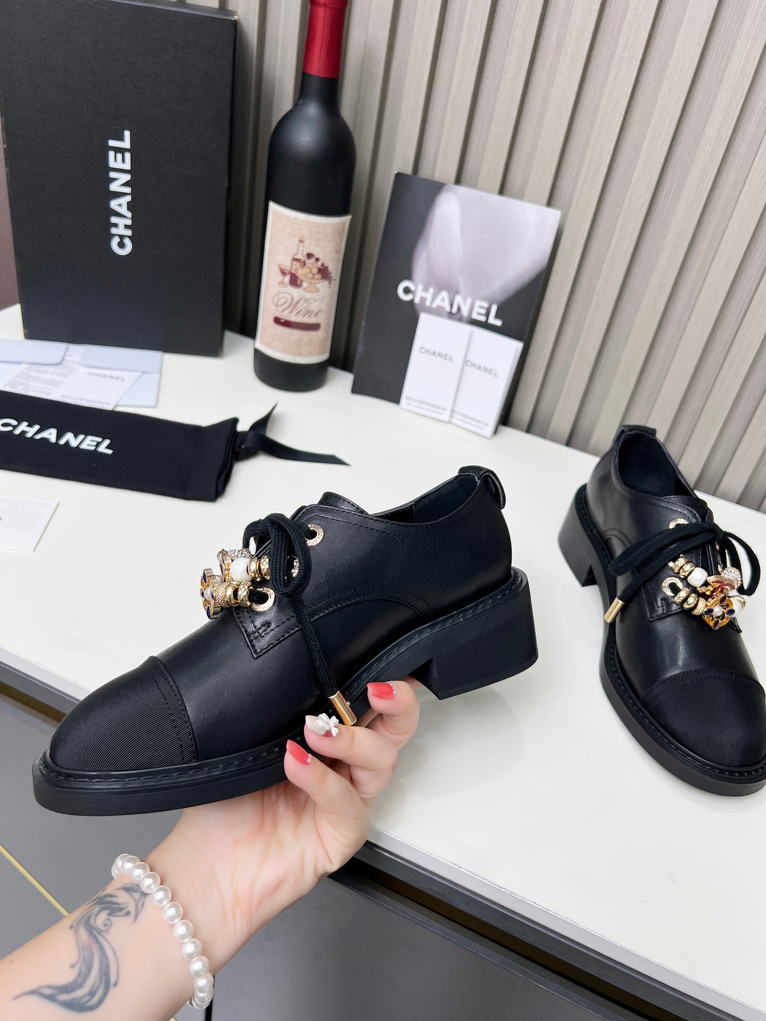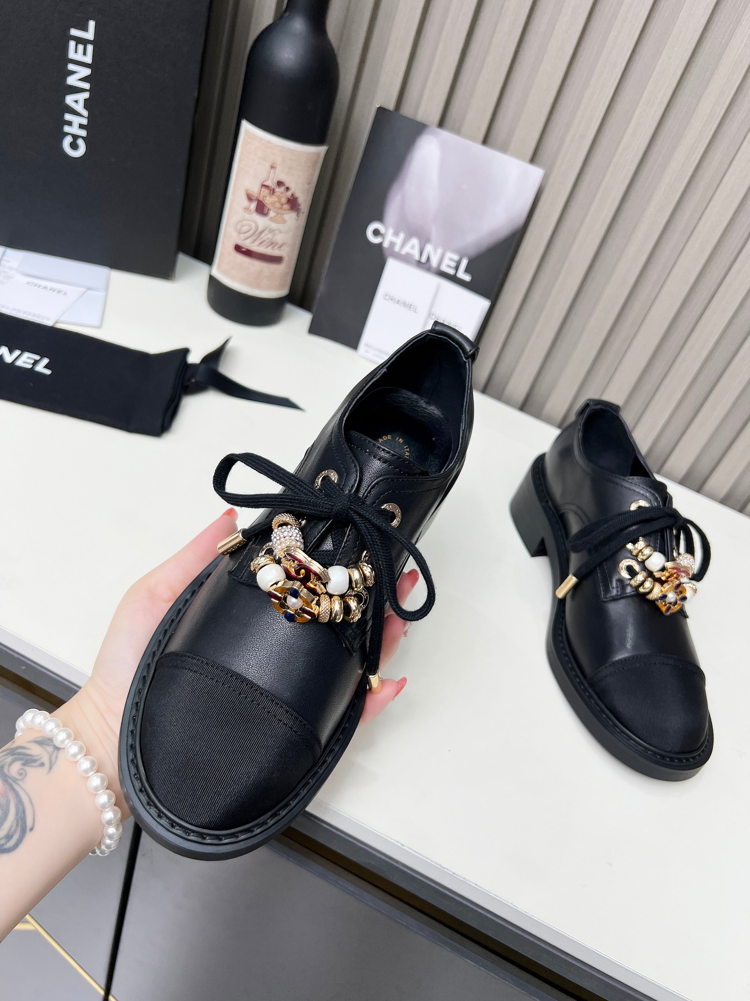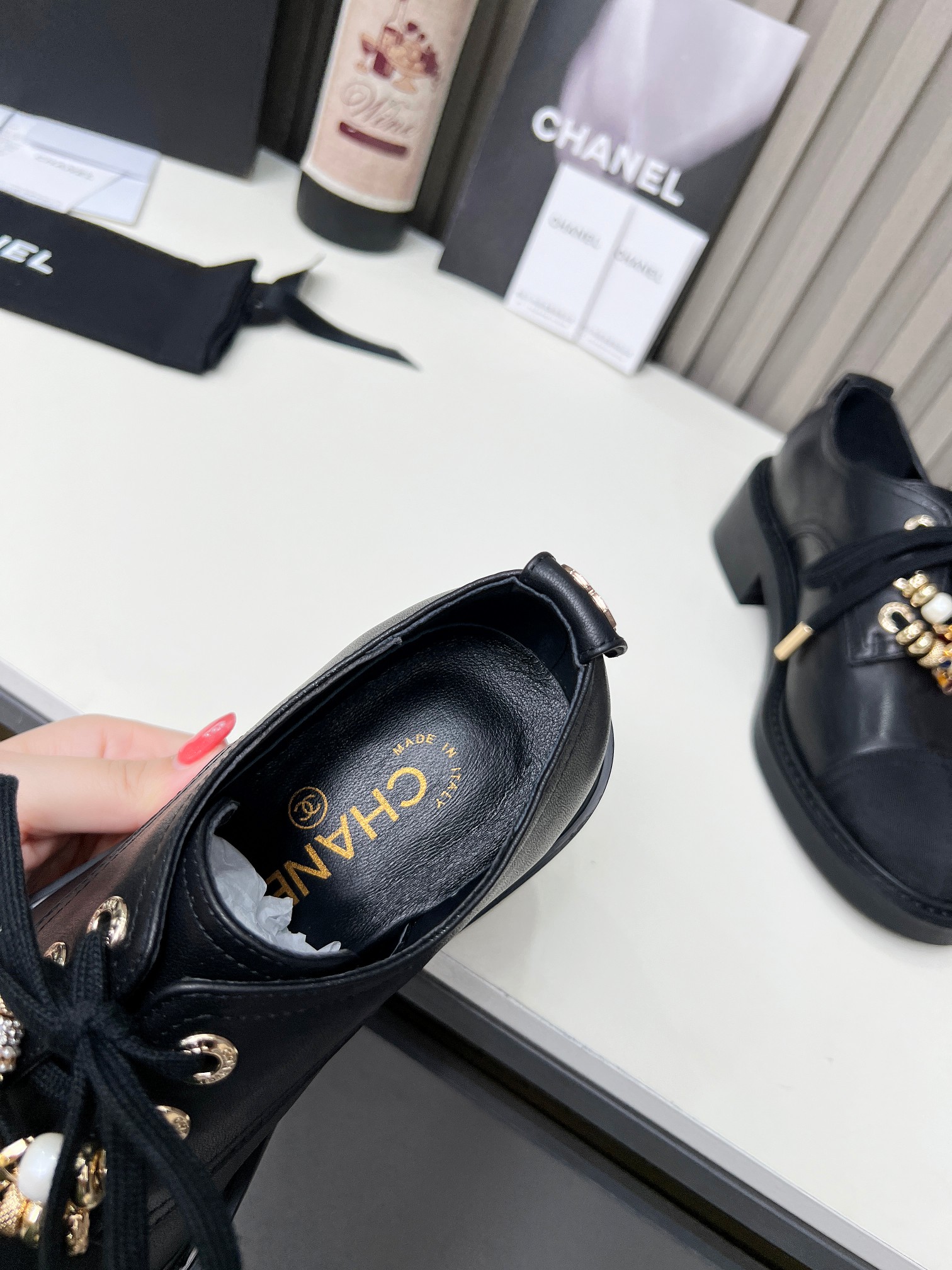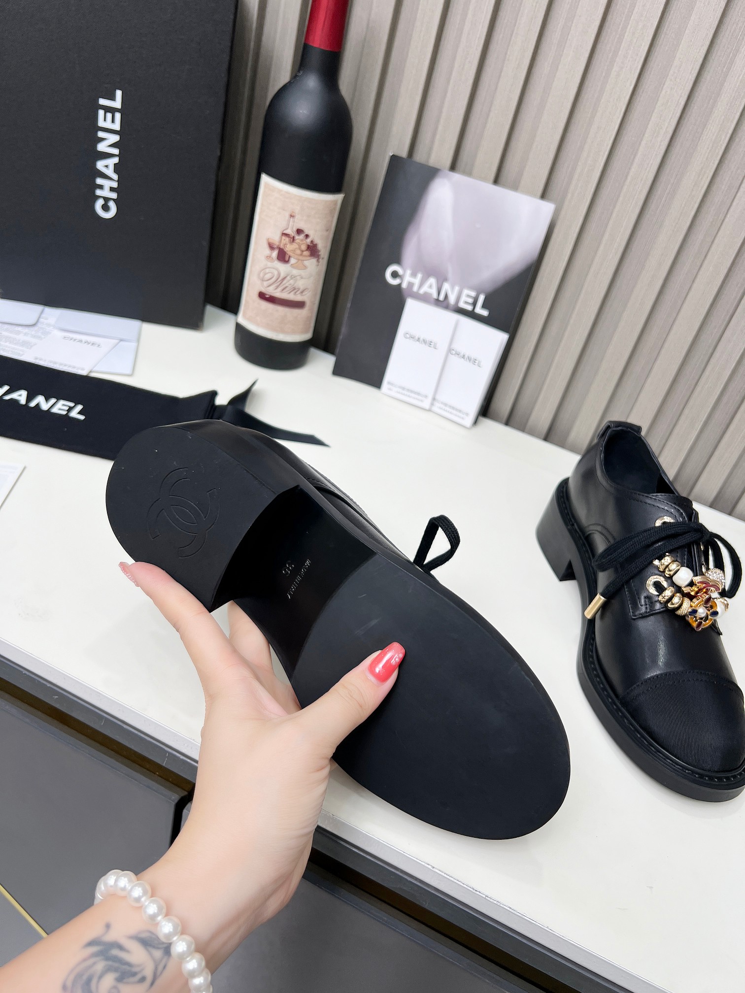 This shoes is AAAAA 1:1 quality (superb). Materials used are identical to the original ones. Chanel trademark marks are indistinguishable to the authentic. Photos take by actual shoes, what you receive will be 100% same with our photos.
