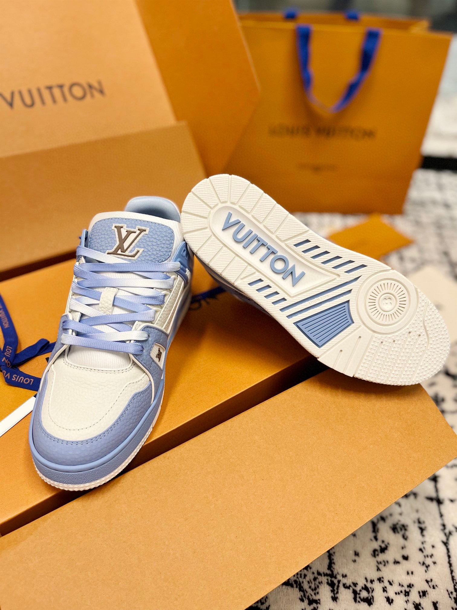 This shoes is AAAAA 1:1 quality (superb). Materials used are identical to the original ones. Louis Vuitton trademark marks are indistinguishable to the authentic. Photos take by actual shoes, what you receive will be 100% same with our photos.
