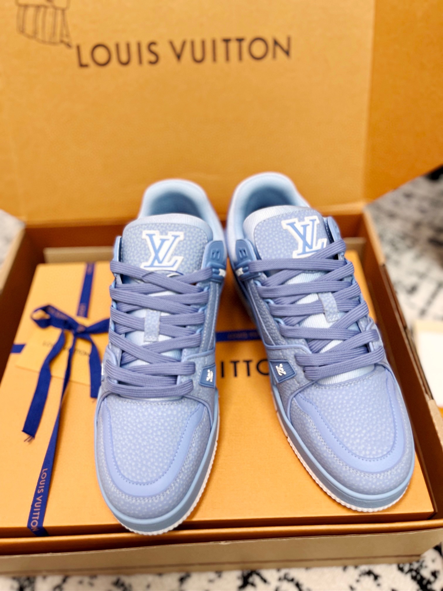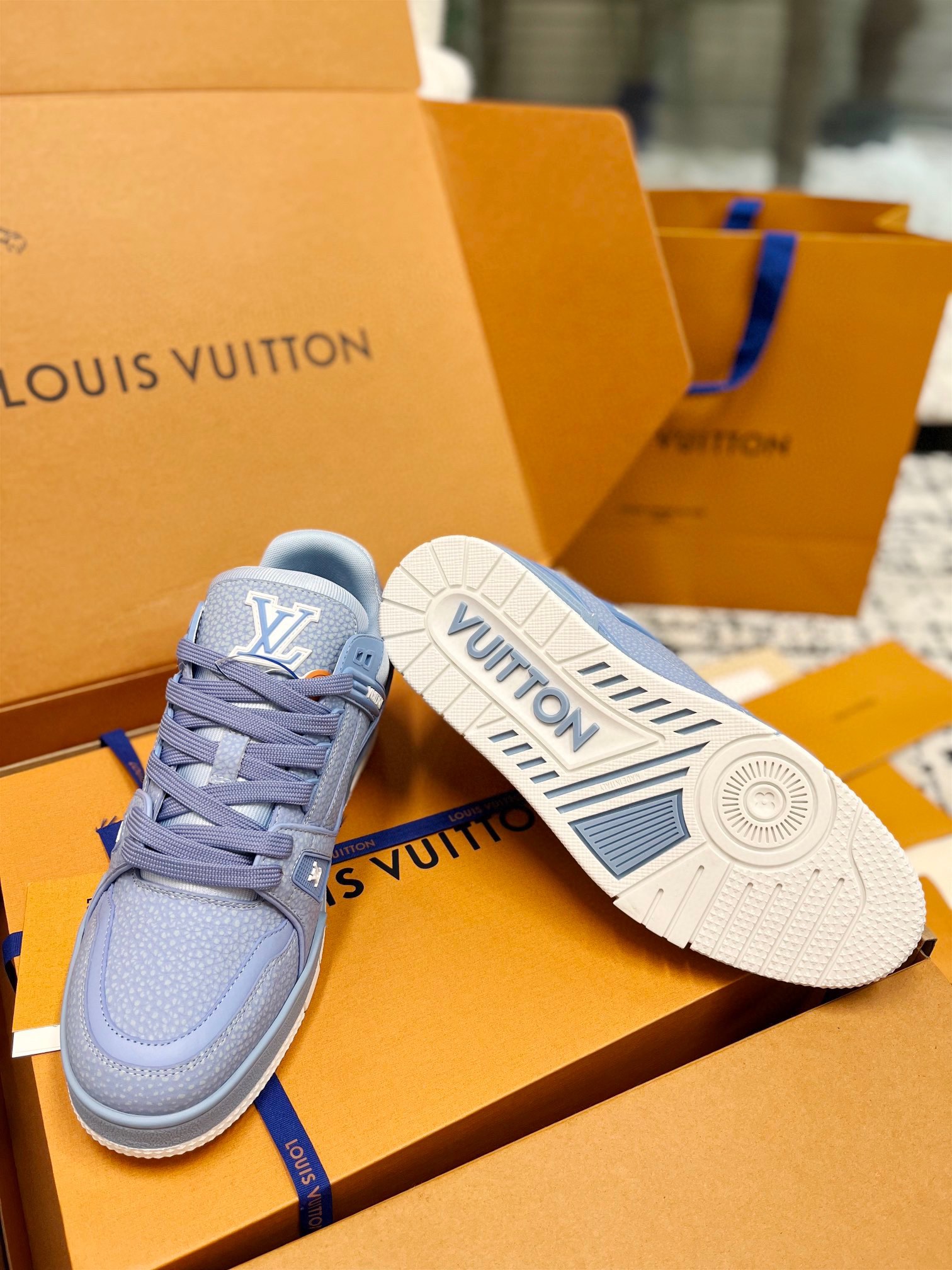This shoes is AAAAA 1:1 quality (superb). Materials used are identical to the original ones. Louis Vuitton trademark marks are indistinguishable to the authentic. Photos take by actual shoes, what you receive will be 100% same with our photos.