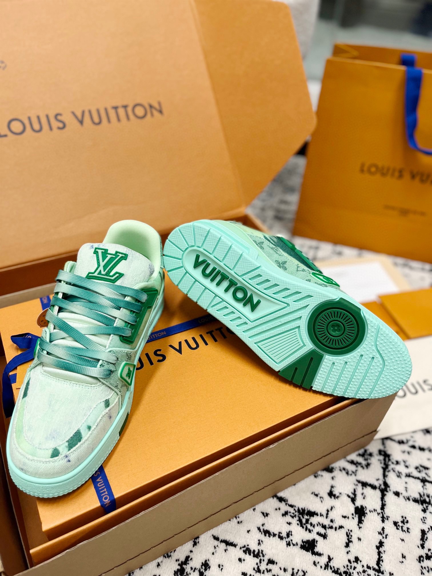 This shoes is AAAAA 1:1 quality (superb). Materials used are identical to the original ones. Louis Vuitton trademark marks are indistinguishable to the authentic. Photos take by actual shoes, what you receive will be 100% same with our photos.