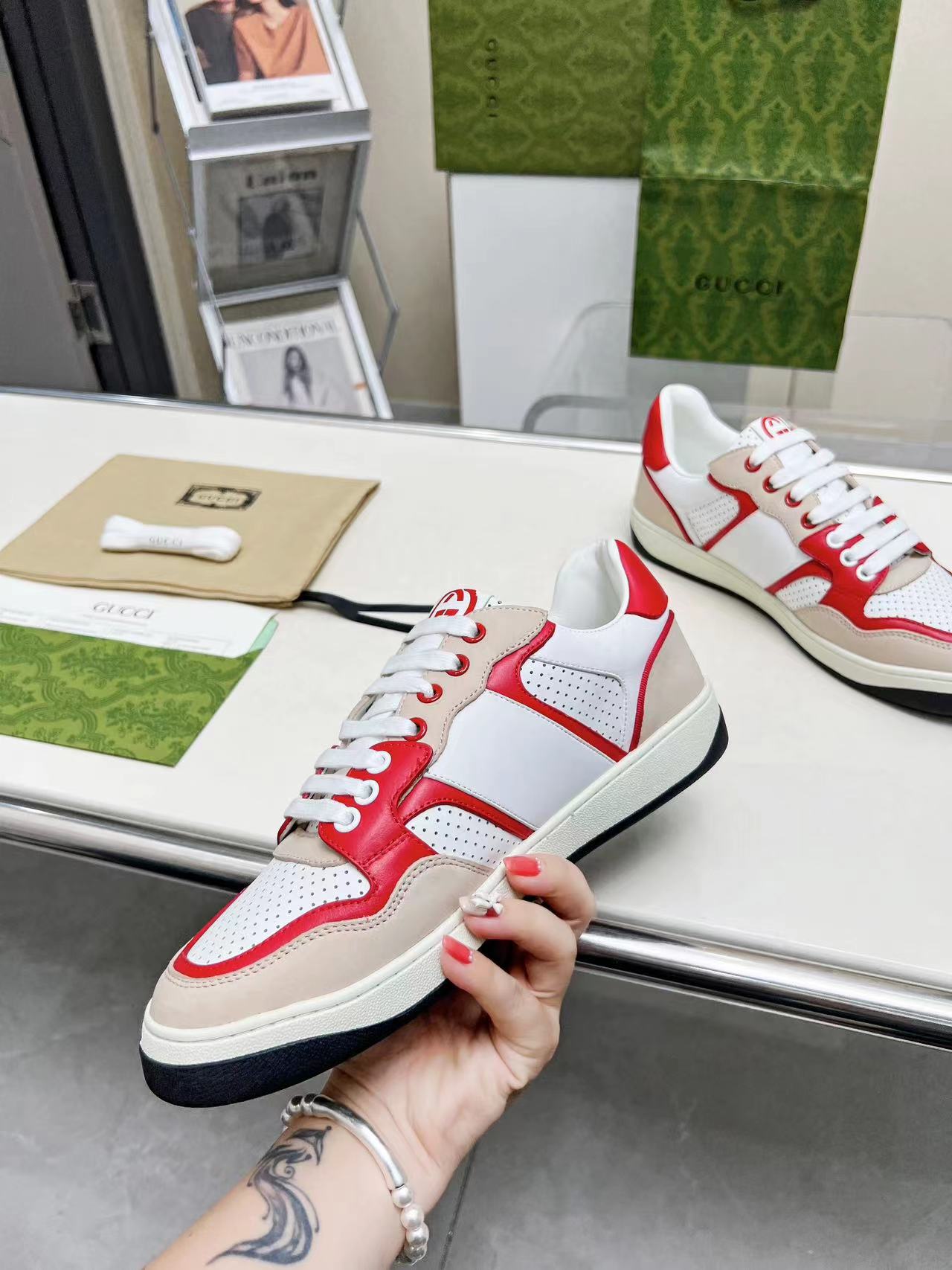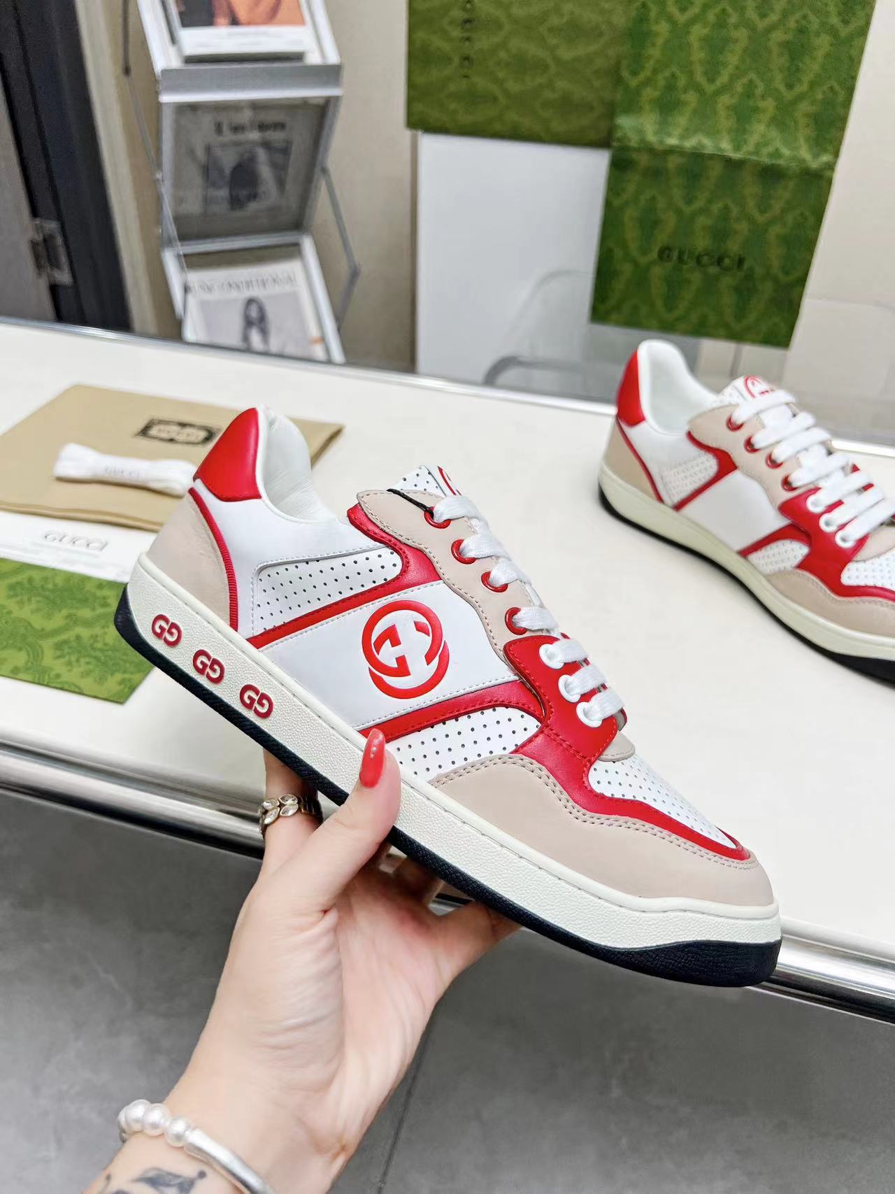 This shoes is AAAAA 1:1 quality (superb). Materials used are identical to the original ones. Gucci trademark marks are indistinguishable to the authentic. Photos take by actual shoes, what you receive will be 100% same with our photos.
