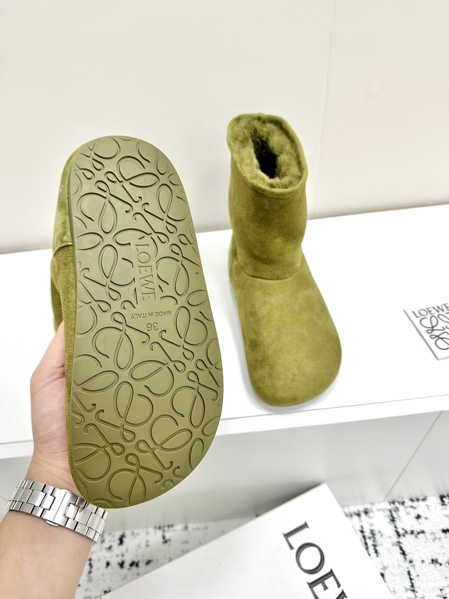 This shoes is AAAAA 1:1 quality (superb). Materials used are identical to the original ones. Loewe trademark marks are indistinguishable to the authentic. Photos take by actual shoes, what you receive will be 100% same with our photos.