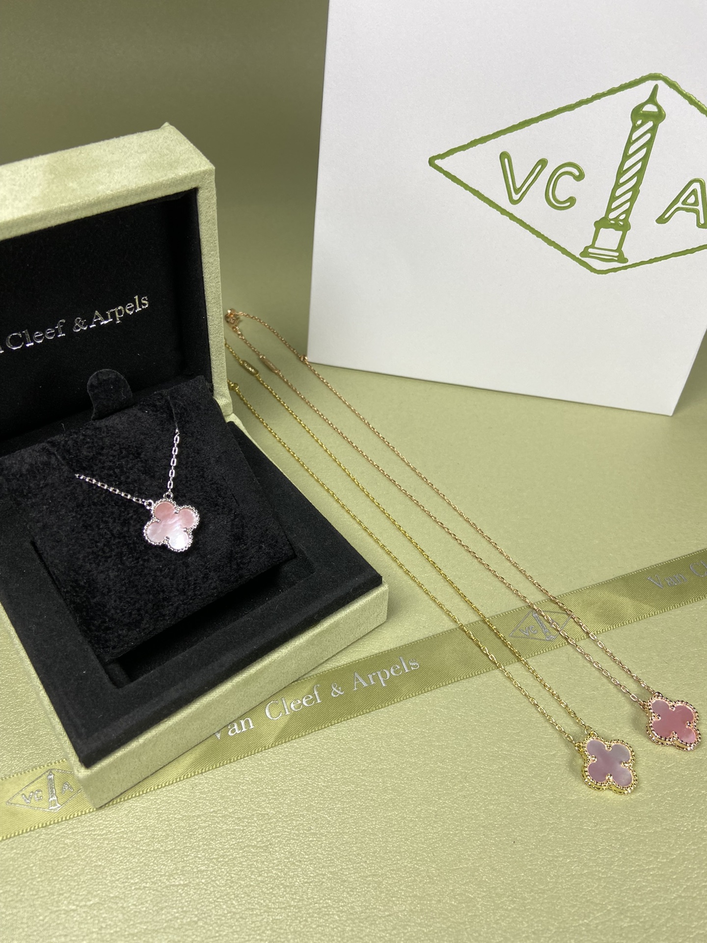 This jewelry is AAAAA 1:1 quality (superb). Materials used are identical to the original ones. Van Cleef & Arpels trademark marks are indistinguishable to the authentic. Photos take by actual jewelry, what you receive will be 100% same with our photos.