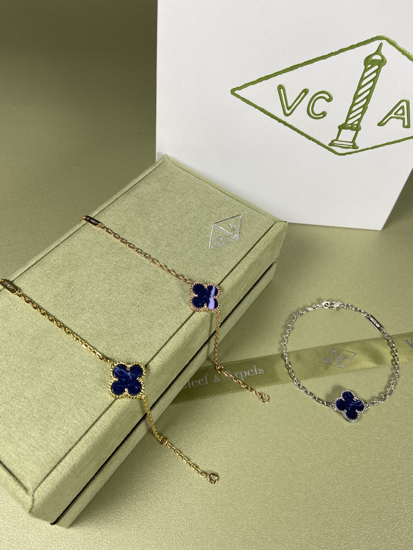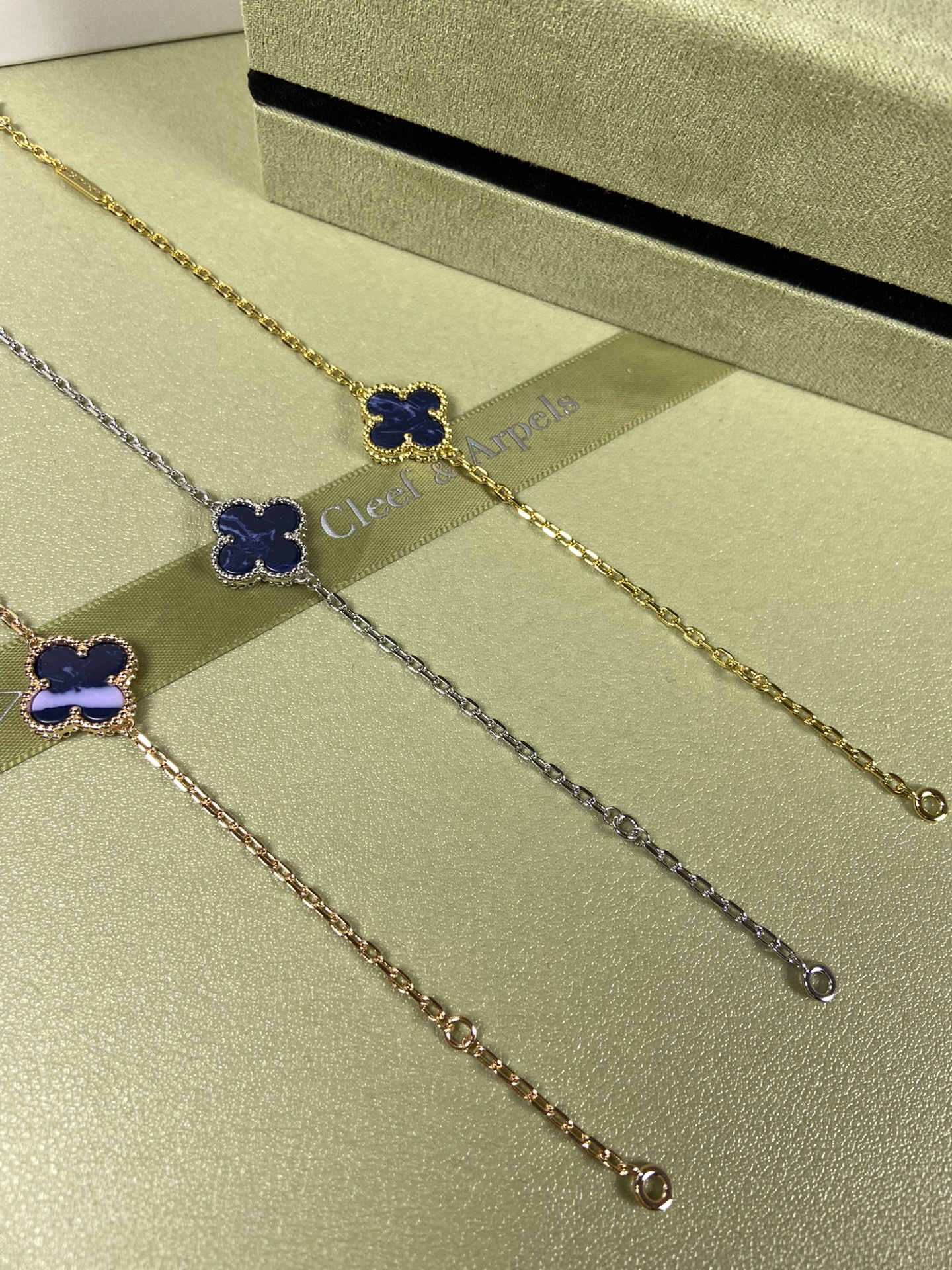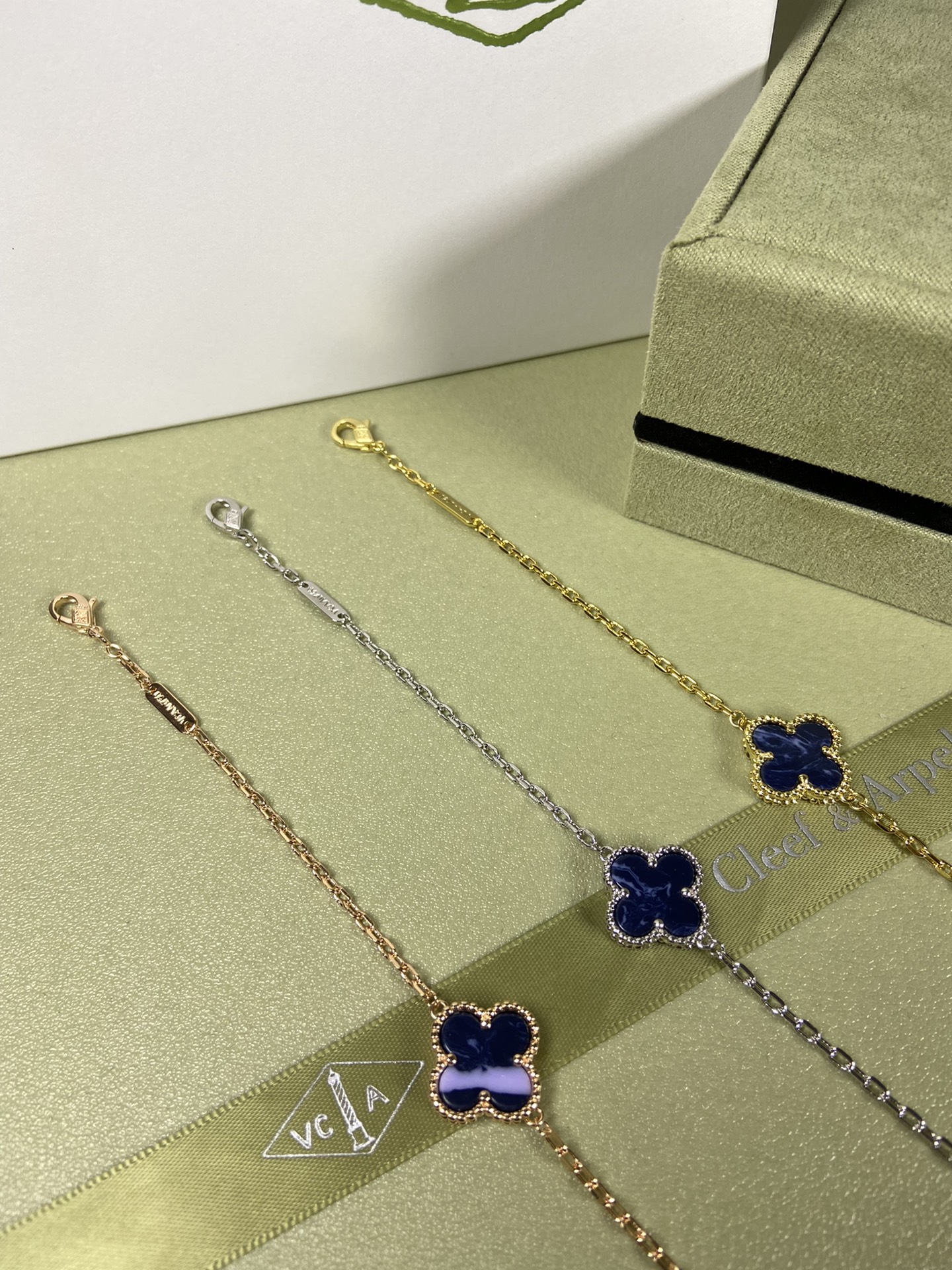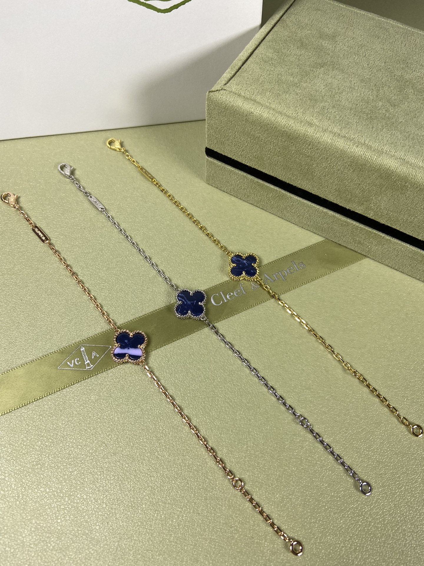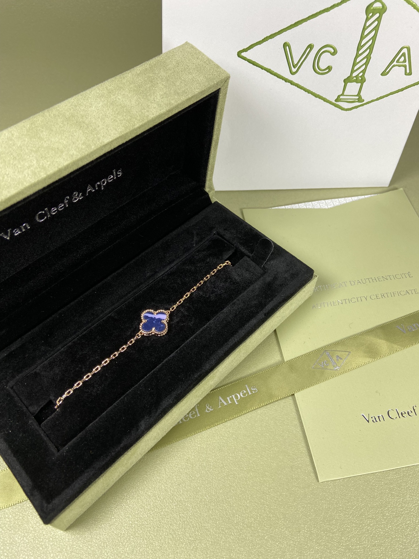 This jewelry is AAAAA 1:1 quality (superb). Materials used are identical to the original ones. Van Cleef & Arpels trademark marks are indistinguishable to the authentic. Photos take by actual jewelry, what you receive will be 100% same with our photos.