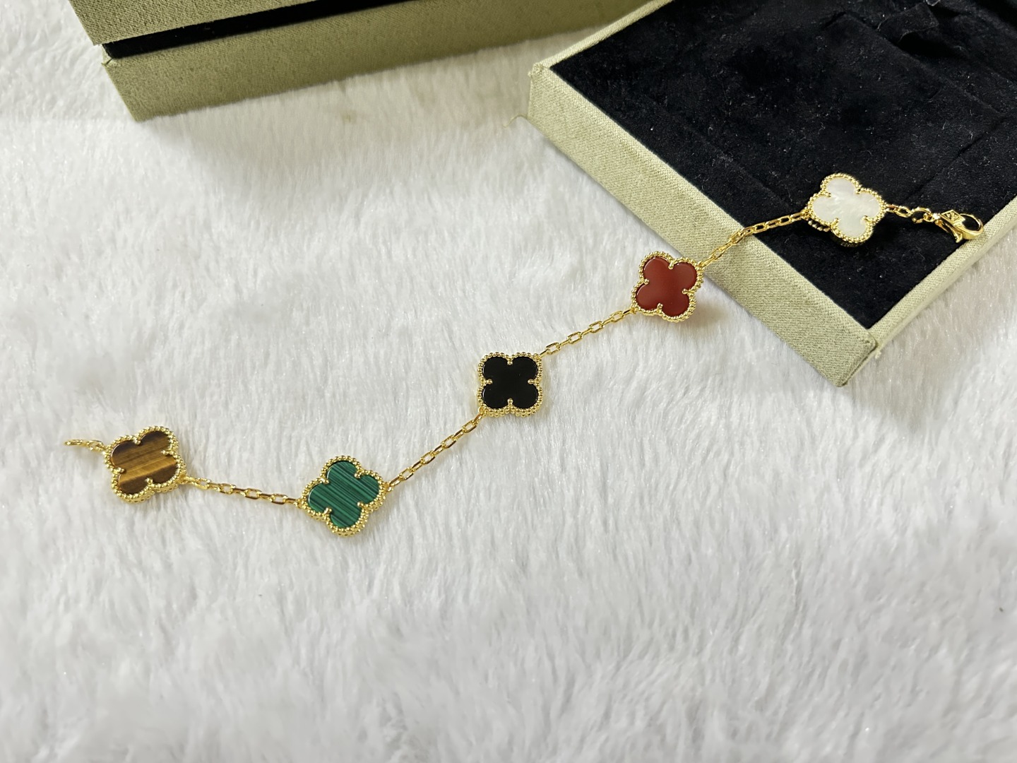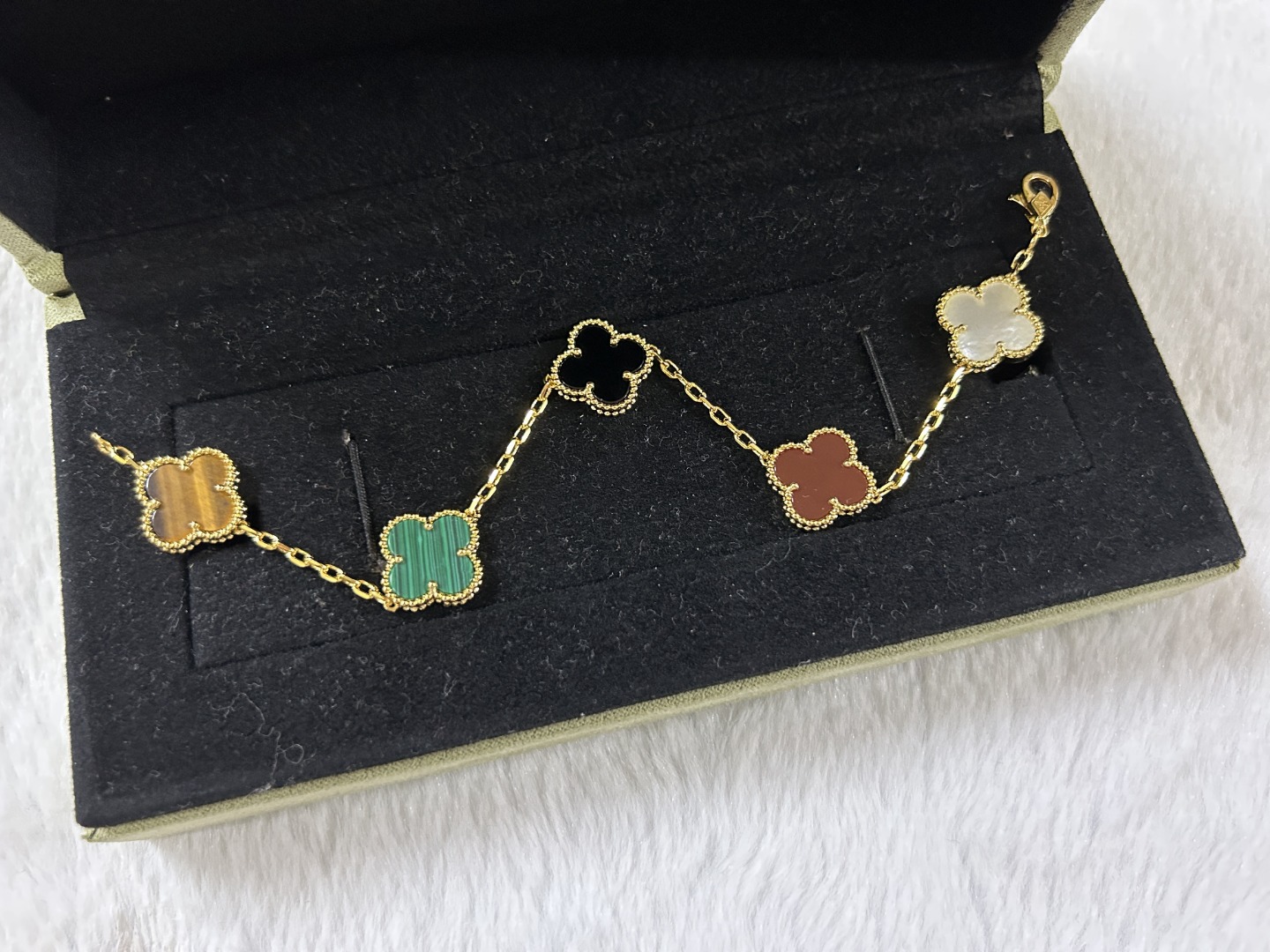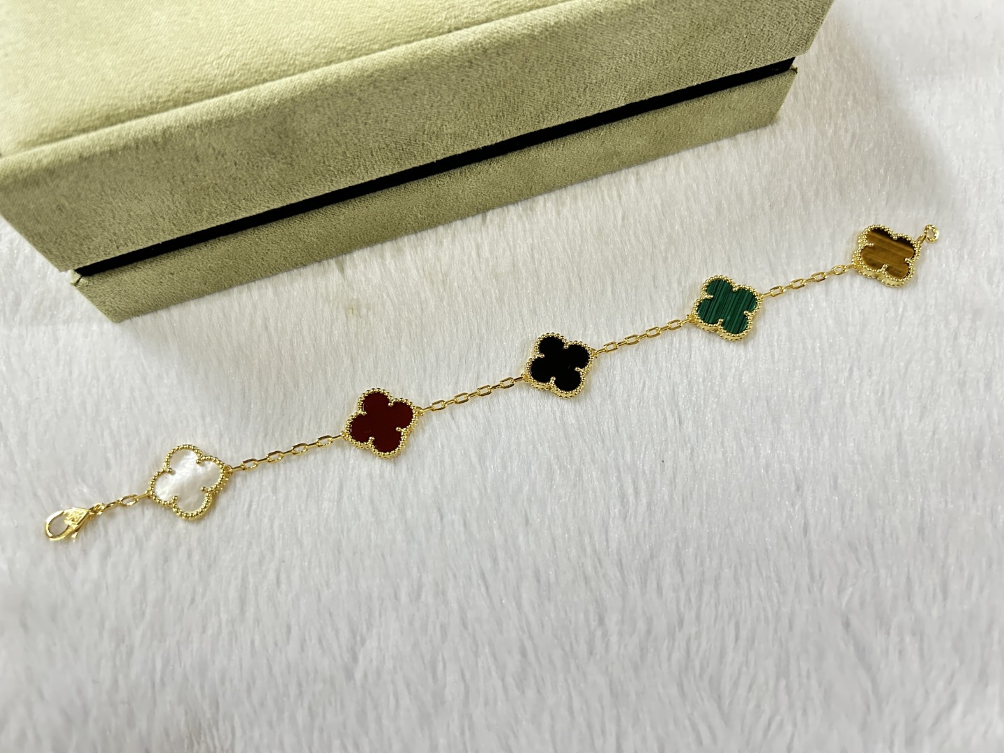 This jewelry is AAAAA 1:1 quality (superb). Materials used are identical to the original ones. Van Cleef & Arpels trademark marks are indistinguishable to the authentic. Photos take by actual jewelry, what you receive will be 100% same with our photos.