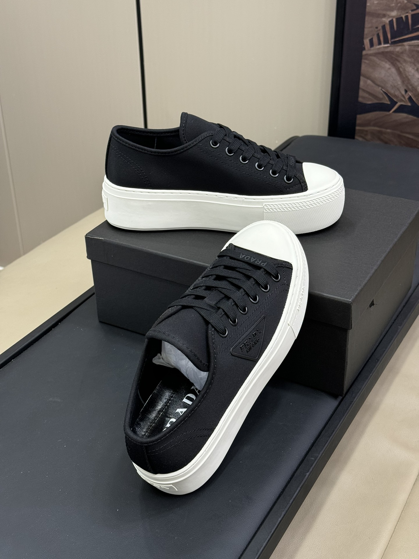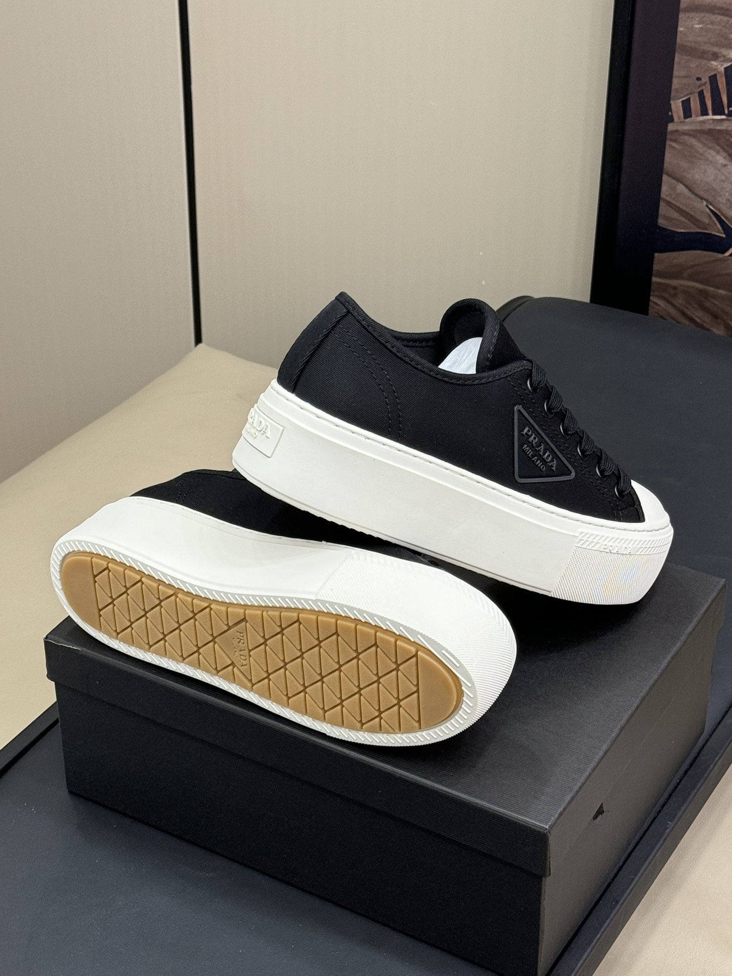 This shoes is AAAAA 1:1 quality (superb). Materials used are identical to the original ones. Prada trademark marks are indistinguishable to the authentic. Photos take by actual shoes, what you receive will be 100% same with our photos.