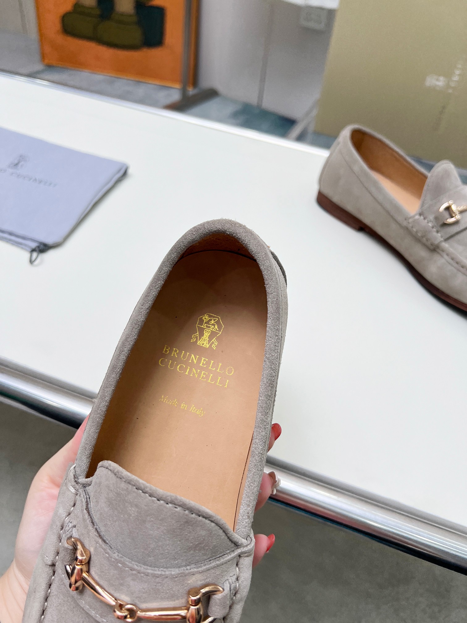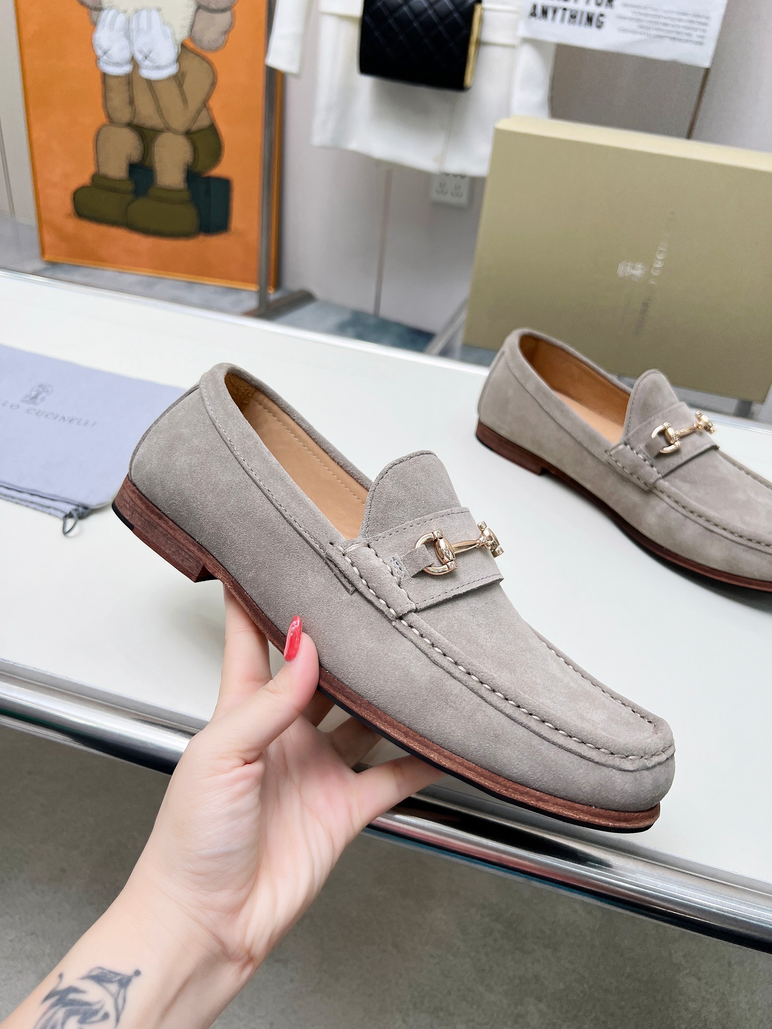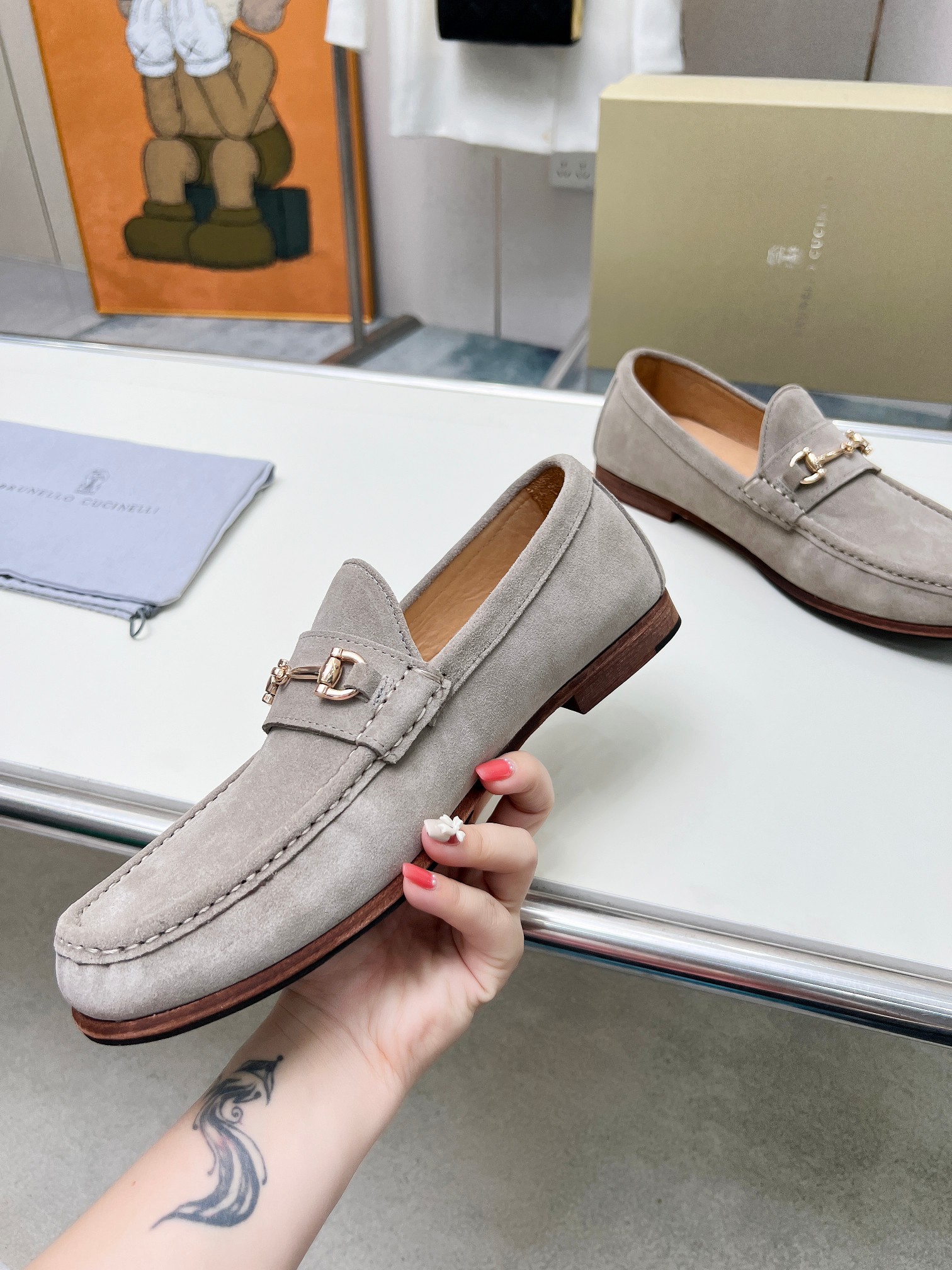 This shoes is AAAAA 1:1 quality (superb). Materials used are identical to the original ones. Brunello Cucinelli trademark marks are indistinguishable to the authentic. Photos take by actual shoes, what you receive will be 100% same with our photos.