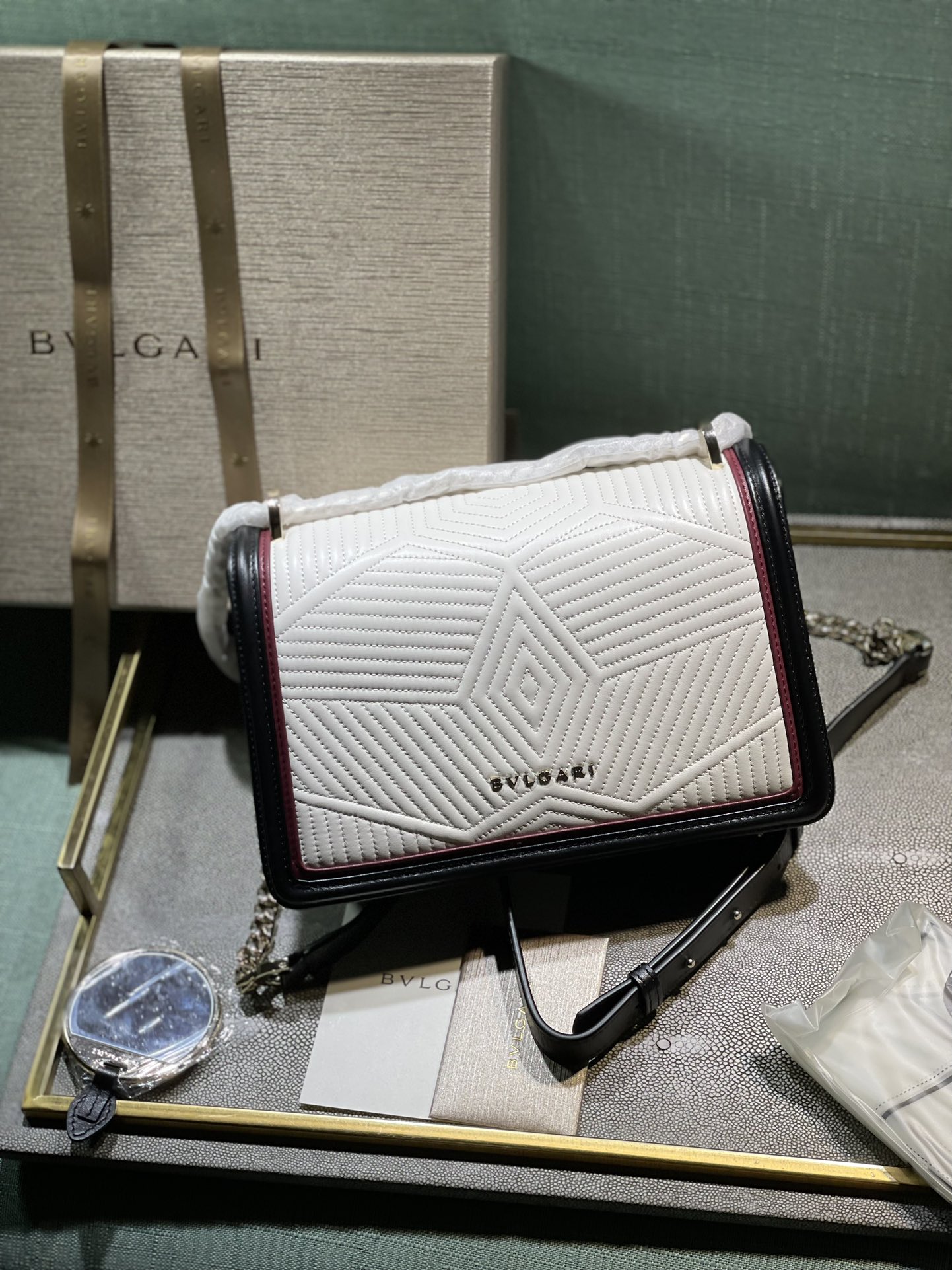 This bags is AAAAA 1:1 quality (superb). Materials used are identical to the original ones. Bulgari trademark marks are indistinguishable to the authentic. Photos take by actual bags, what you receive will be 100% same with our photos.