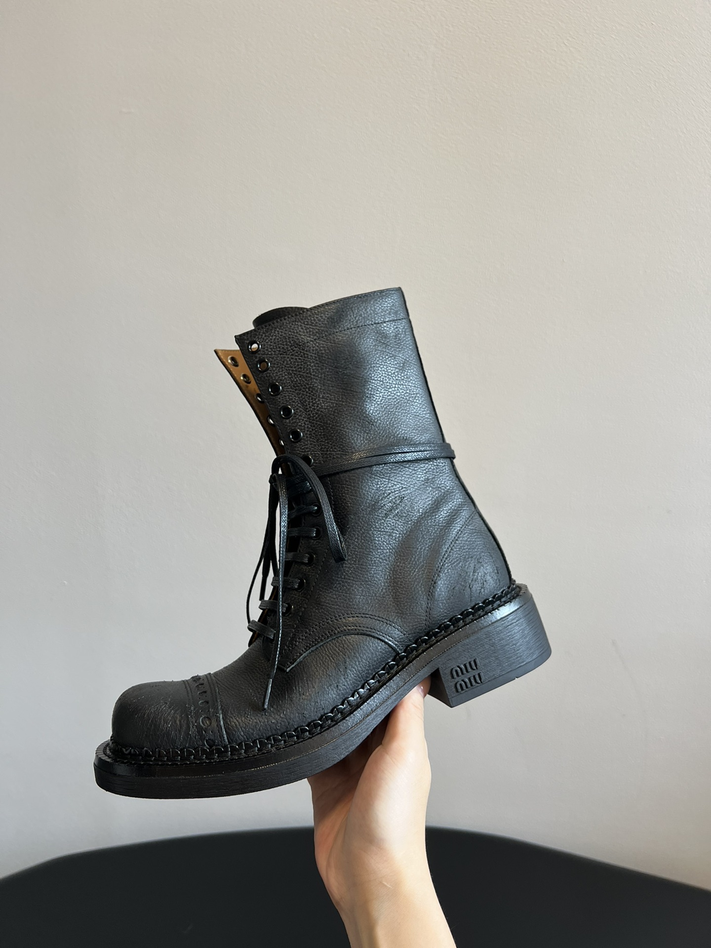 This shoes is AAAAA 1:1 quality (superb). Materials used are identical to the original ones. Miu Miu trademark marks are indistinguishable to the authentic. Photos take by actual shoes, what you receive will be 100% same with our photos.