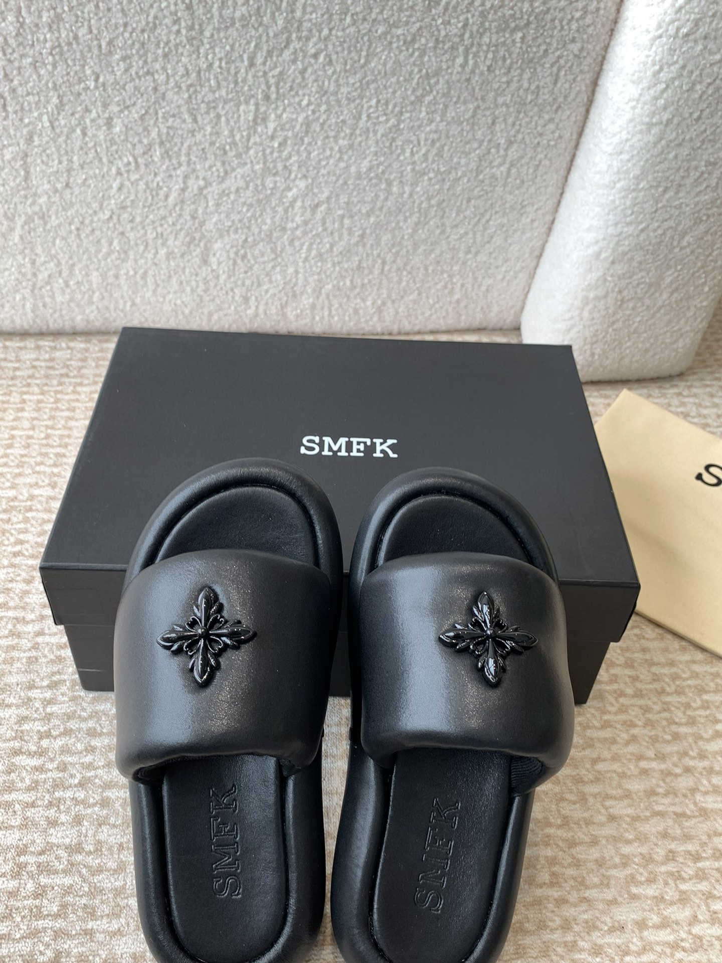 This shoes is AAAAA 1:1 quality (superb). Materials used are identical to the original ones. SMFK trademark marks are indistinguishable to the authentic. Photos take by actual shoes, what you receive will be 100% same with our photos.