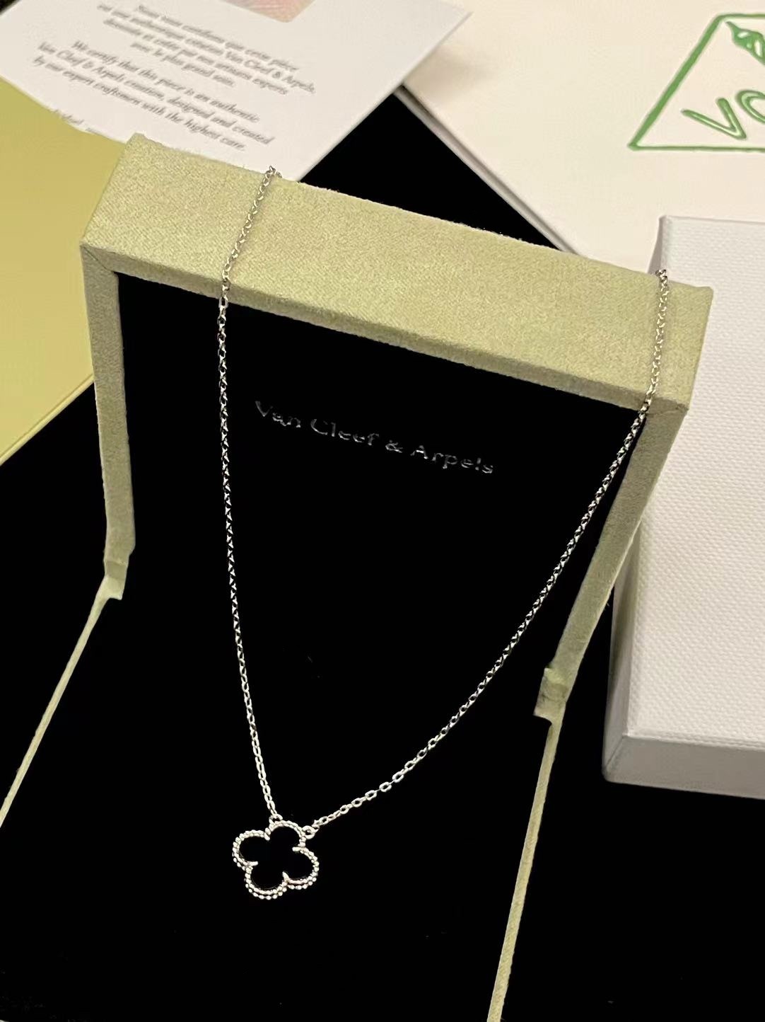 This jewelry is AAAAA 1:1 quality (superb). Materials used are identical to the original ones. Van Cleef & Arpels trademark marks are indistinguishable to the authentic. Photos take by actual jewelry, what you receive will be 100% same with our photos.